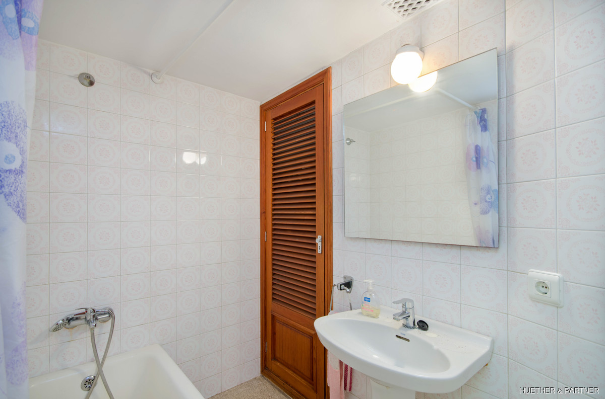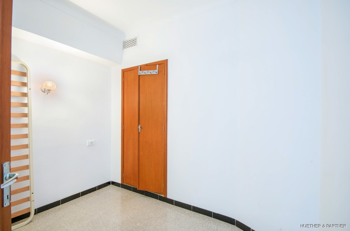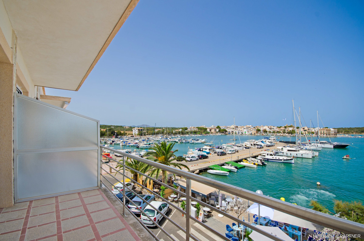 This 110 sqm apartment, located on the first sea line in Portocolom, offers a remarkable opportunity for renovation. The living and dining area features a balcony with views of the harbor, Sa Punta peninsula, and the old town. The apartment includes three bedrooms, a bathroom, a separate WC, and a kitchen with a sea view. A charming old fireplace adds character, and theres a spacious storage room. The communal rooftop terrace has a utility room and space for a washing machine. Although the apartment requires renovation, plans for remodeling are available, allowing for potential layout changes.