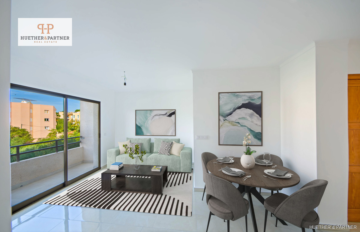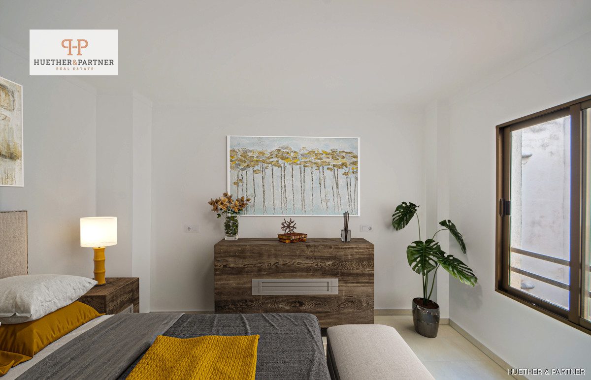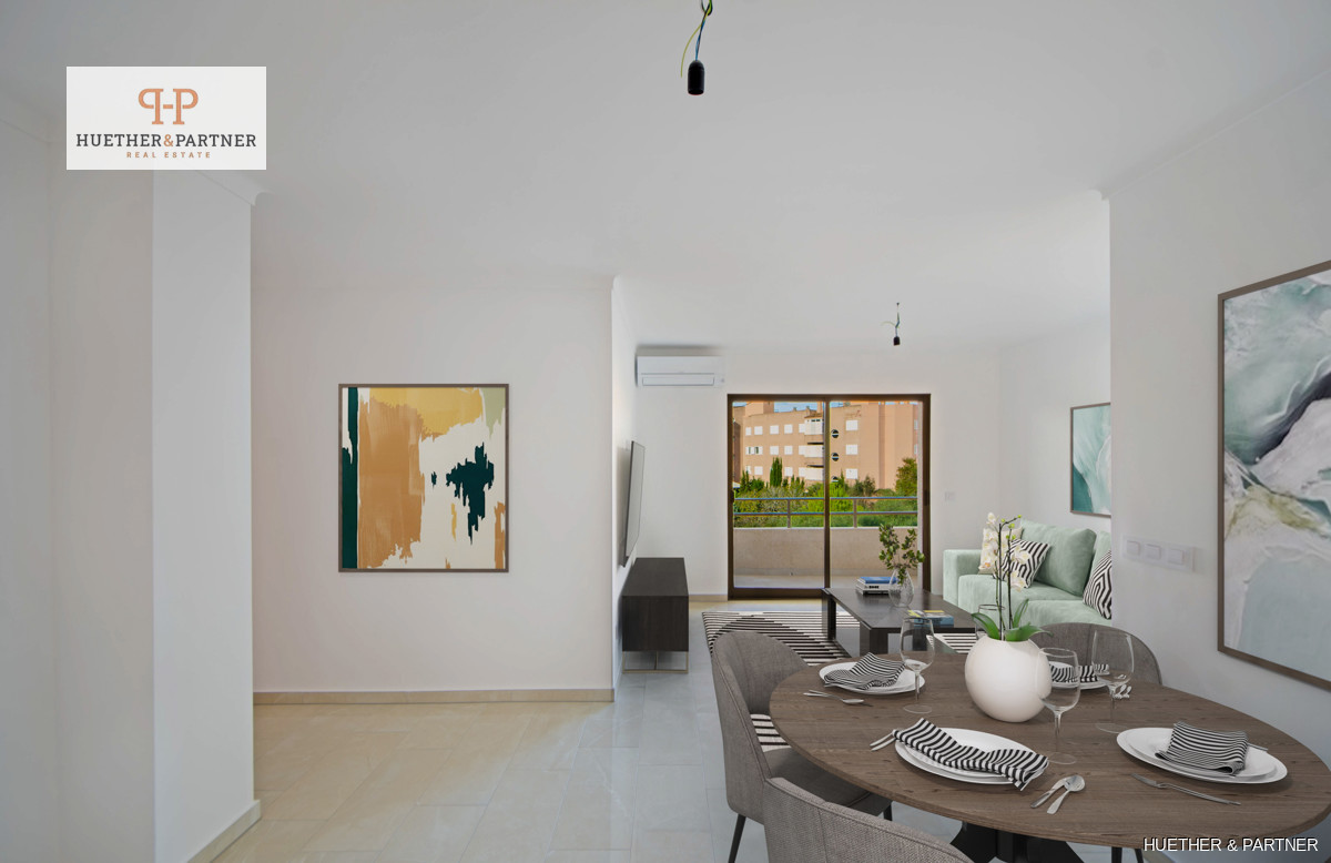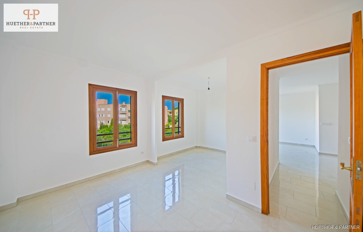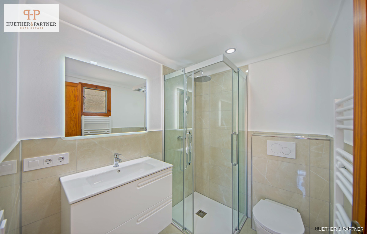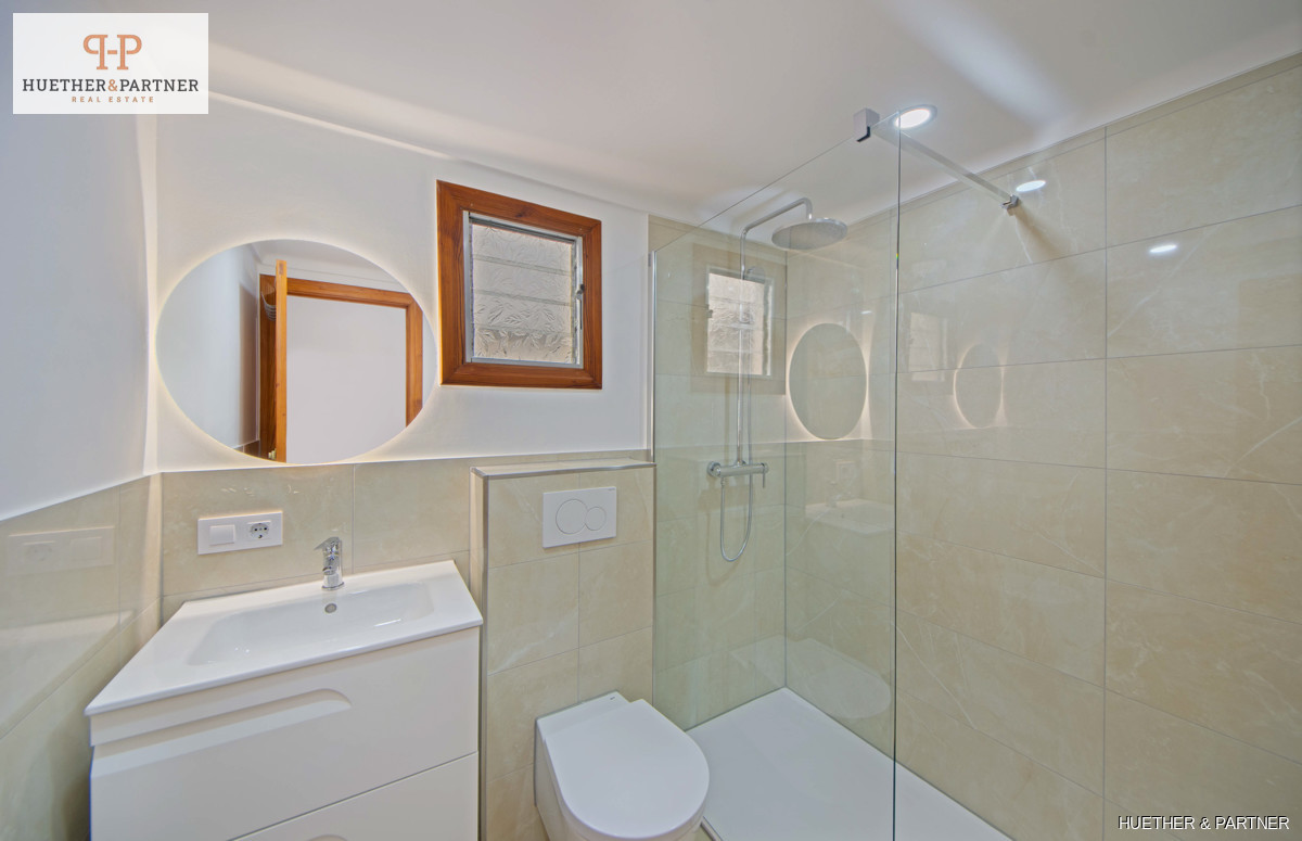 This fully renovated apartment in Cala Ratjada offers a modern and spacious living experience just minutes from Son Moll Beach. The 106 m² space includes an open-plan living and dining area with balcony access, perfect for enjoying the surrounding greenery. The main bedroom features an en suite bathroom, while another flexible space can be used as a dressing area or cozy nook. On the opposite side of the hallway, youll find a second bedroom and guest bathroom, both equipped with walk-in showers.
