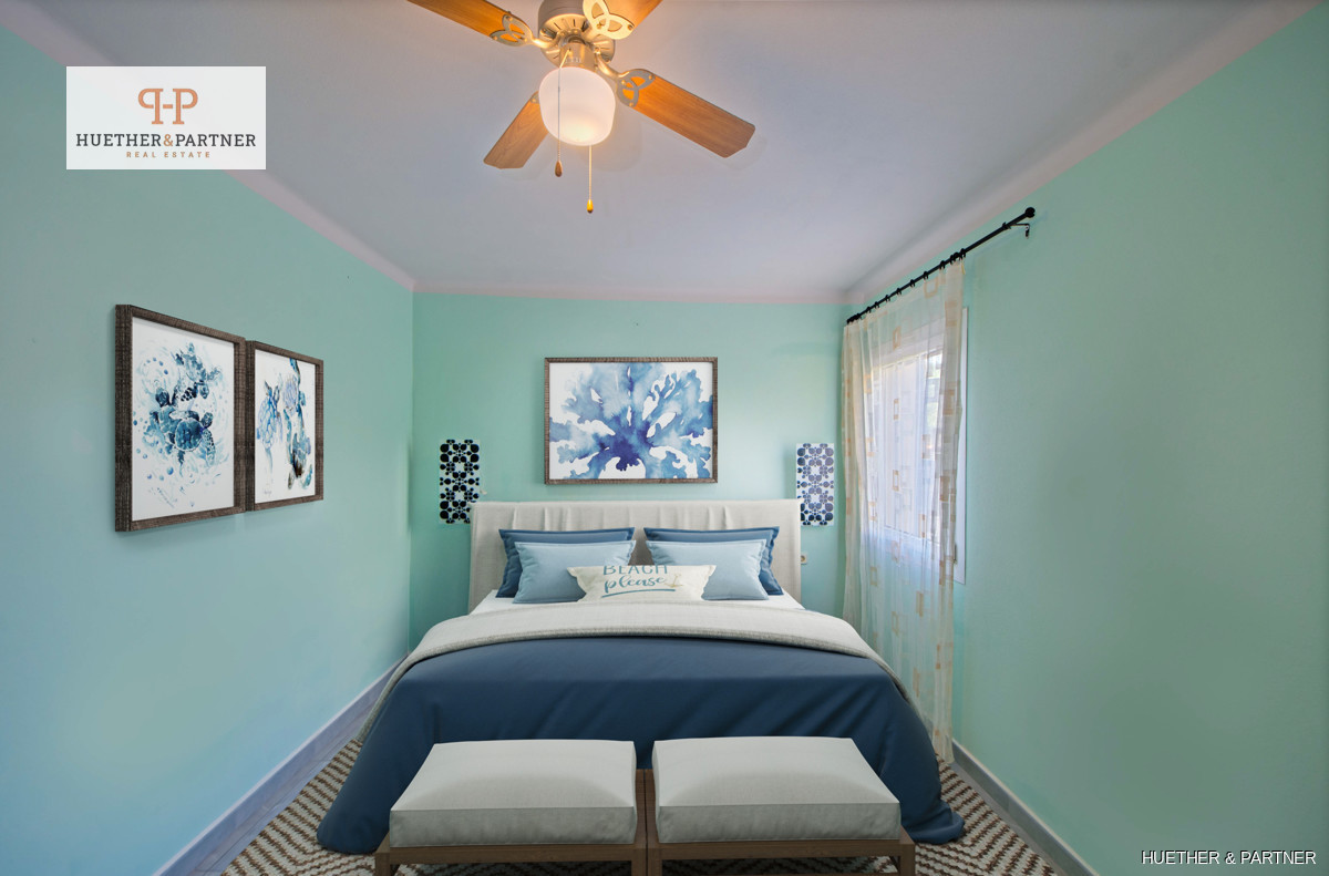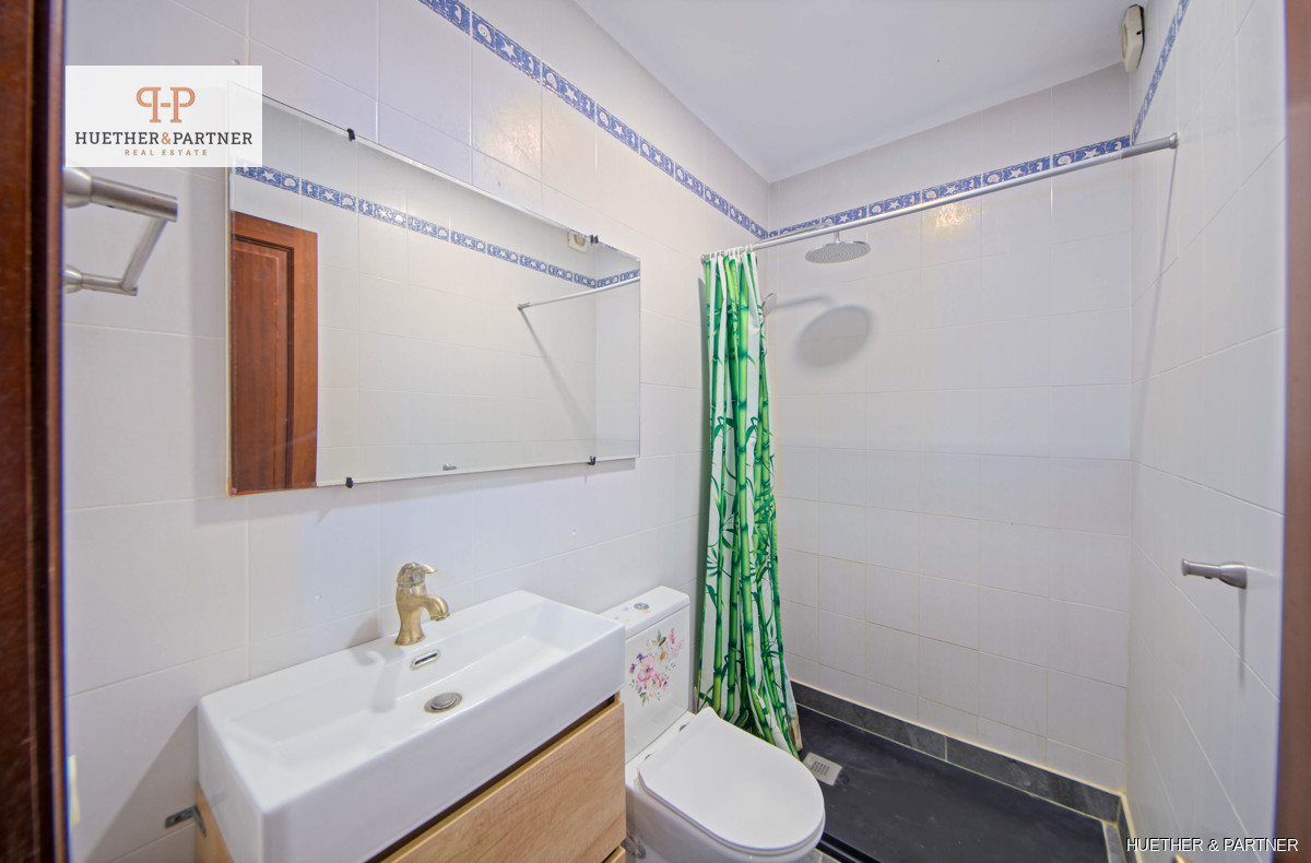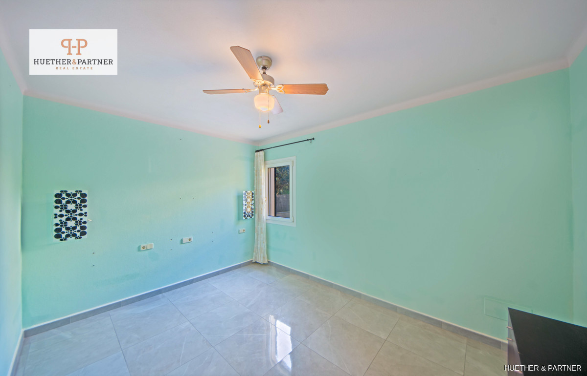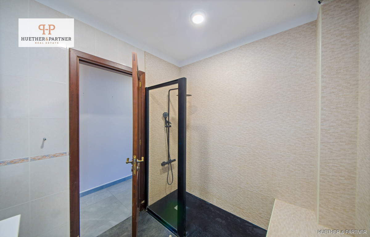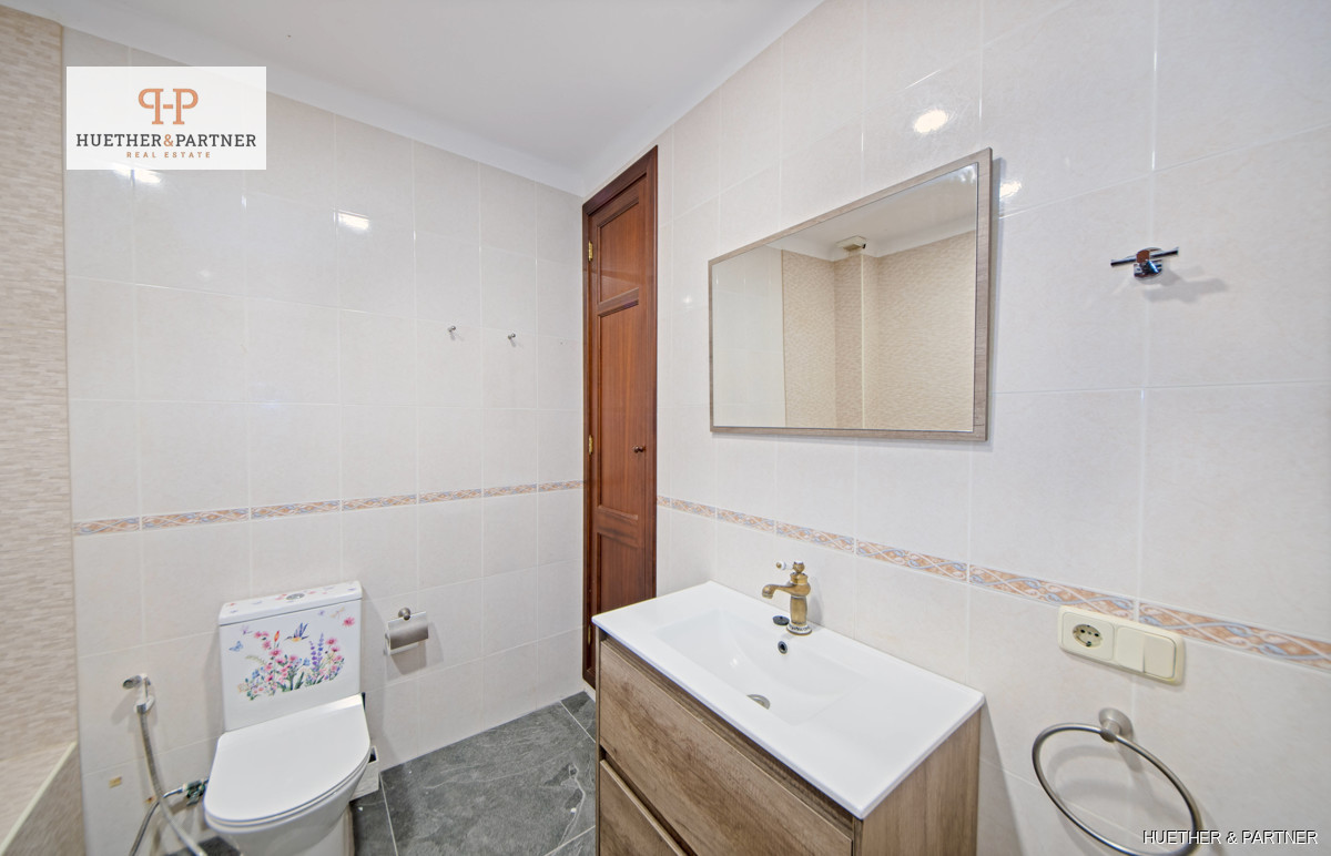 This spacious ground floor apartment in Portocolom offers 132 square meters of living space, ideal for creating a unique home. It features two bedrooms, two renovated bathrooms, and a living/dining area that is visually separated from the entrance. A significant enhancement is the glazed rear terrace, now serving as a dining area adjacent to the kitchen. The property includes a private parking space of 54 square meters in front and a 209 square meter private area at the back, currently equipped with a pergola and outdoor kitchen. Ample room for customization remains, with recent upgrades like new tiling providing a fresh start.
