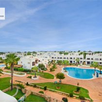 This apartment offers tremendous potential with its private rooftop terrace featuring a BBQ, and a balcony overlooking one of the seven communal pool zones. Although the current air conditioning system is non-functional, a new unit can be easily installed. The current owners have a pellet stove that they will take with them, but a replacement stove can be easily set up. The property features double-glazed windows with wooden frames and shutters, and an unfurnished interior that includes a kitchen requiring replacement, a bathroom needing renovation, and a living area that requires updating.