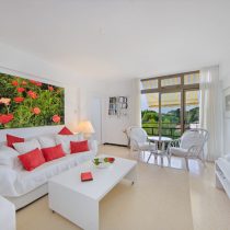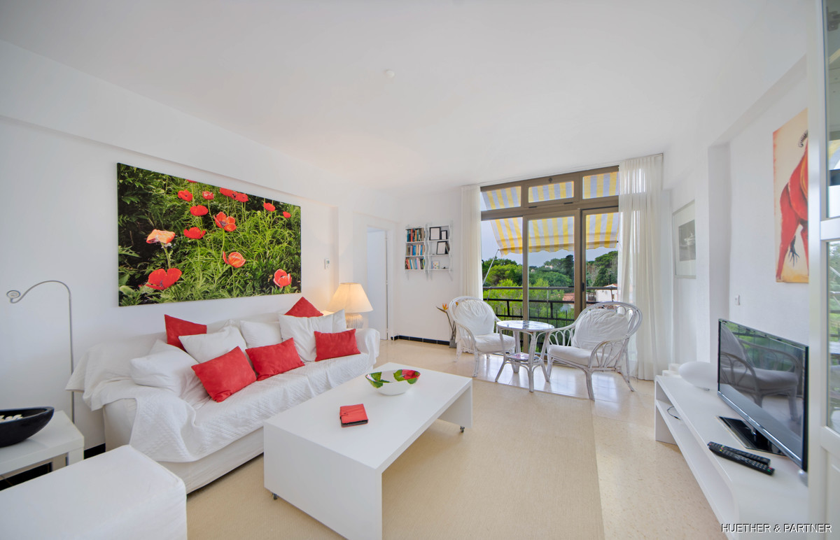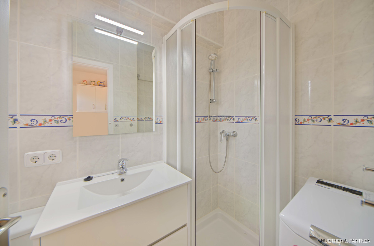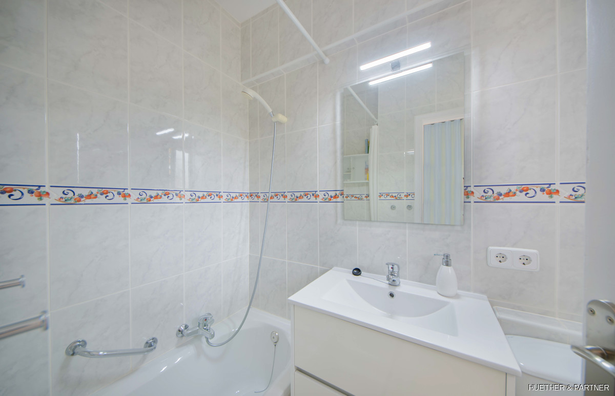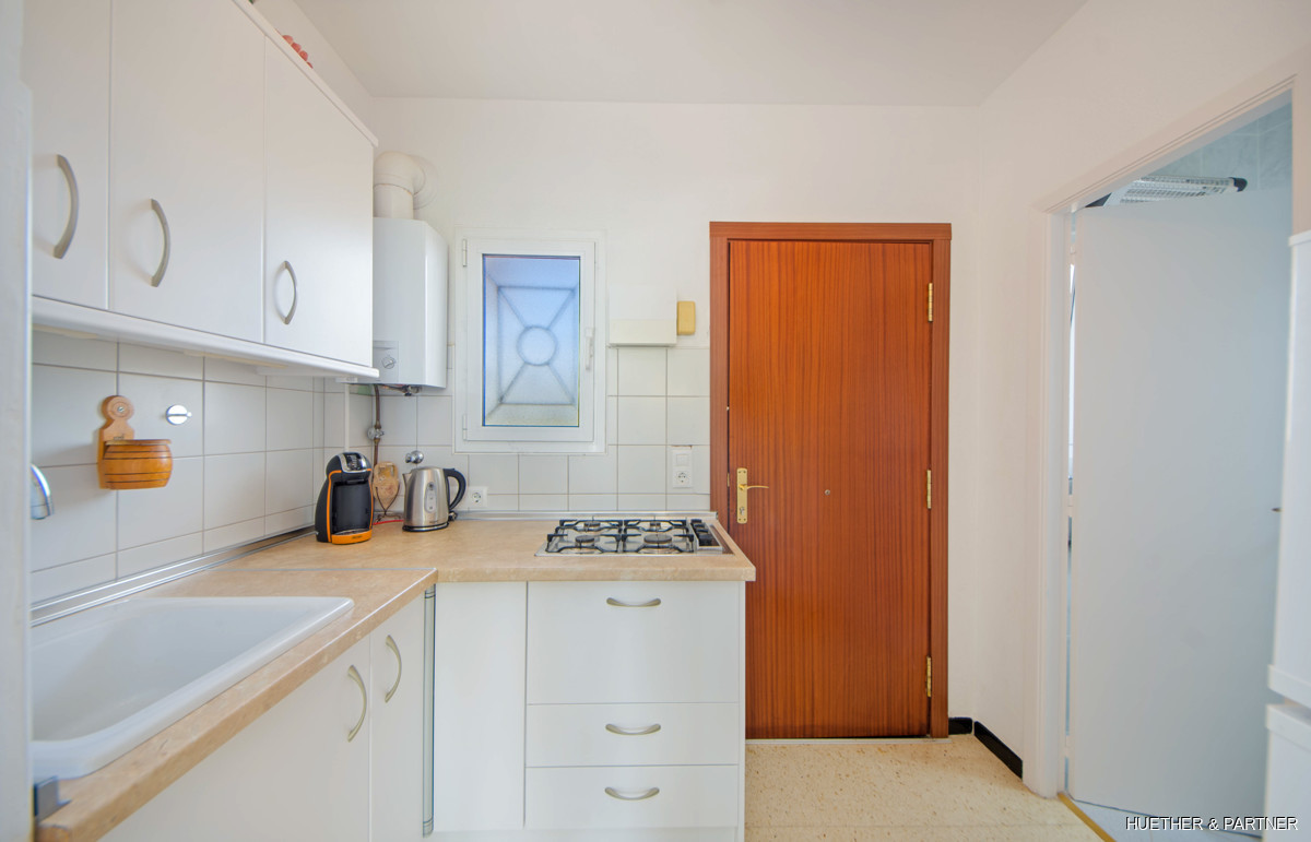This 70 m² bright apartment offers a modern living space in Cales de Mallorca with a green view. It features a living area, a separate bedroom, a small kitchen, and two bathrooms, one with a shower and another with a traditional Spanish bathtub. The former small balconies have been added to the living area, with window elements that open to allow a refreshing breeze and views over the pine-covered green zone. Equipped with double-glazed windows, infrared heating, gas and electric boilers, and modernized electrical and water systems, this apartment is ideal for first-time homeowners in Mallorca.