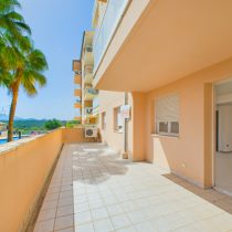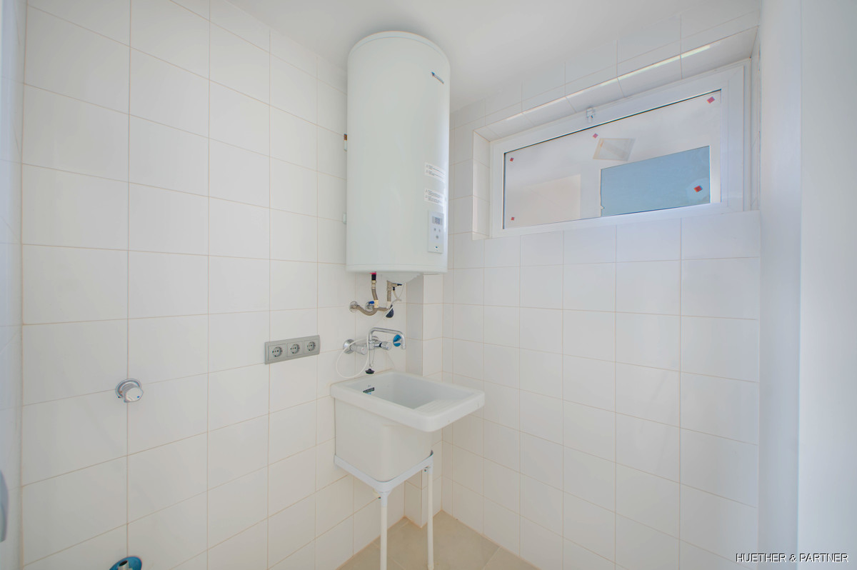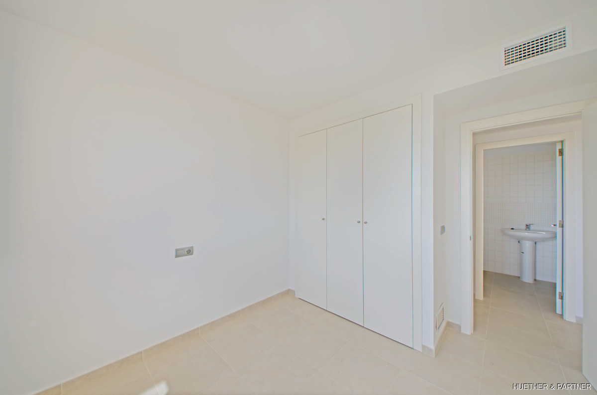 This brand-new ground floor apartment in Cales de Mallorca offers modern features with aluminum shutters and doors, an open kitchen, and a separate utility room. It includes two bedrooms with built-in wardrobes, two bathrooms—one with a shower and one with a bathtub—and a spacious terrace accessible from the living/dining area. The property comes with a parking space in the underground garage and is serviced by an elevator.