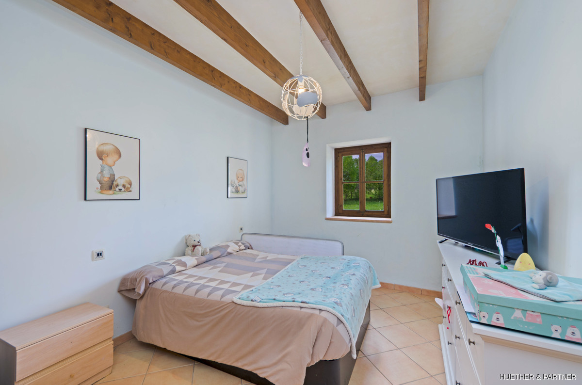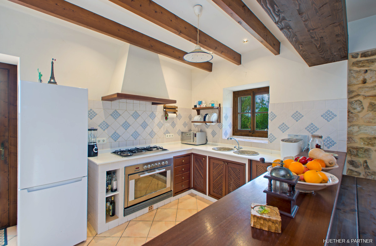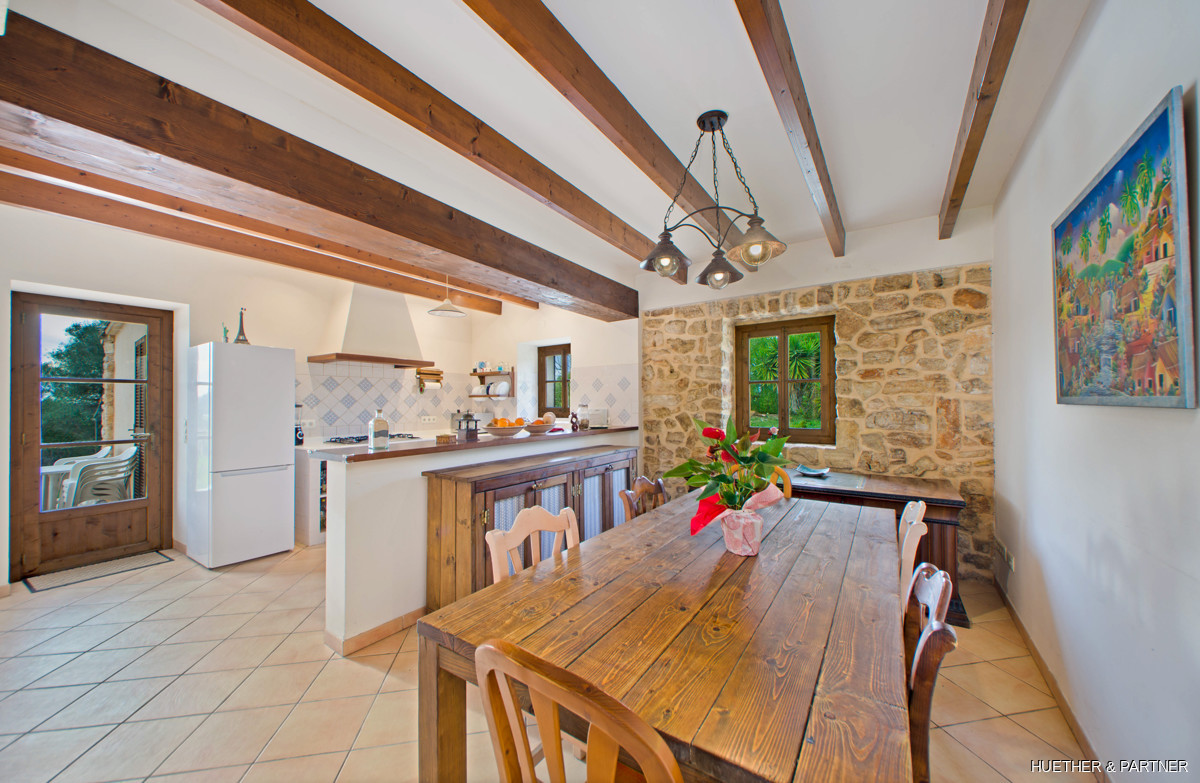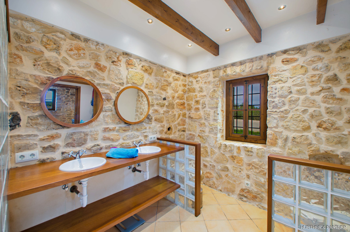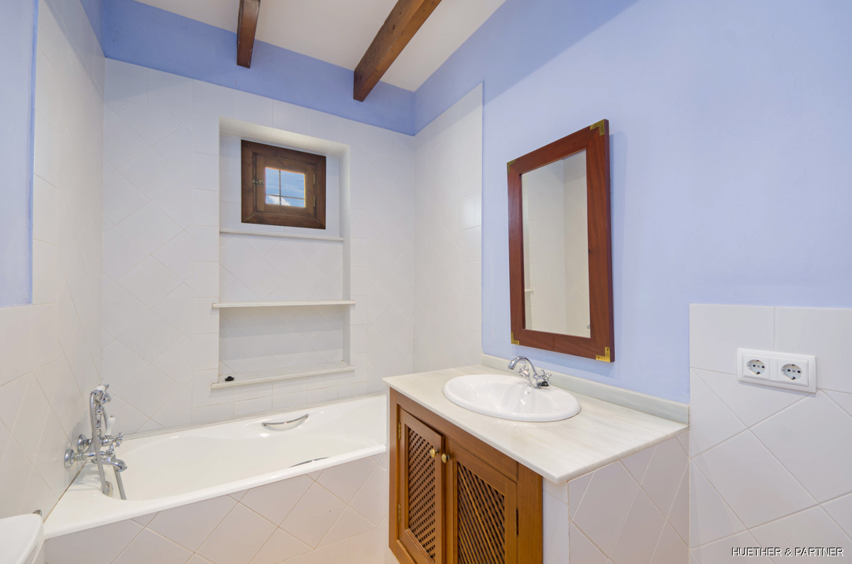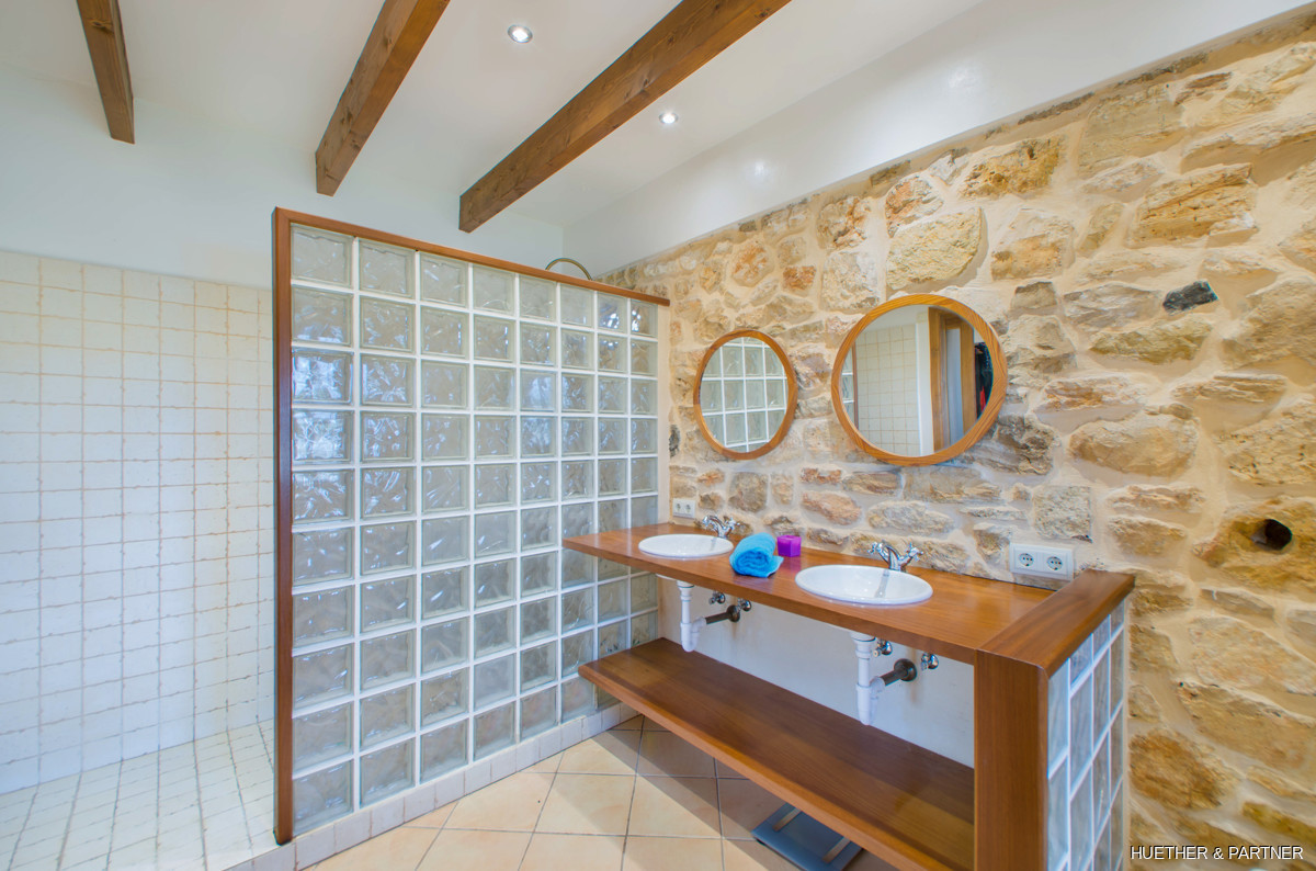This charming finca, nestled in the tranquil hills surrounding Sant Llorenç, offers a perfect blend of historic charm and modern amenities. Originally built in 1900 and lovingly renovated in 2006, the property features a stone facade and traditional Mallorcan elements such as wooden beam ceilings and tile floors. The ground floor is move-in ready, boasting a sunlit living area with panoramic views, a cozy fireplace, and an open-plan dining room and kitchen equipped with a 5-burner gas stove and a spacious oven. The master bedroom comes with an en suite bath and walk-in closet.