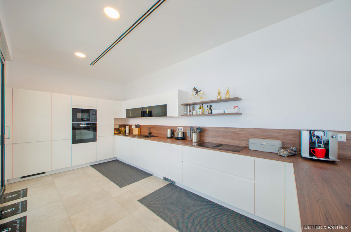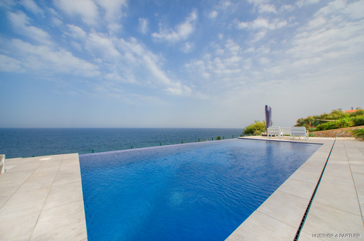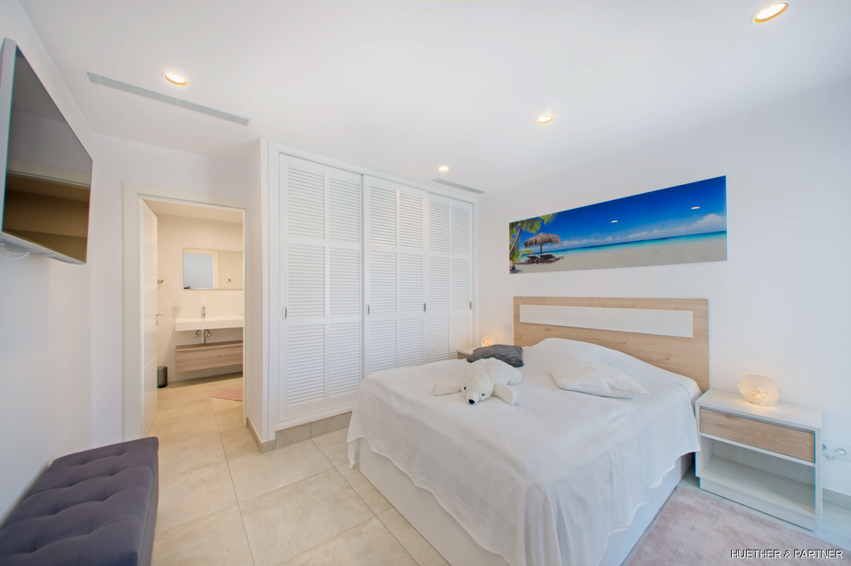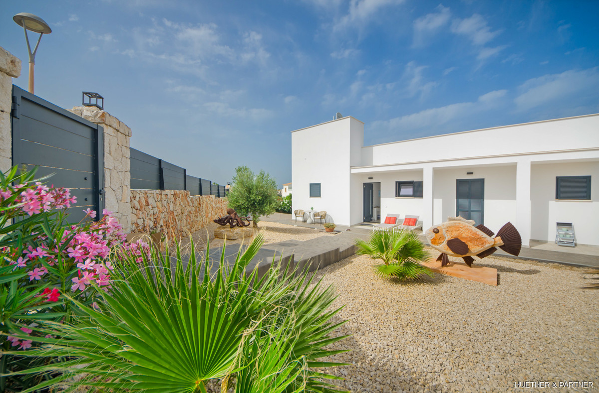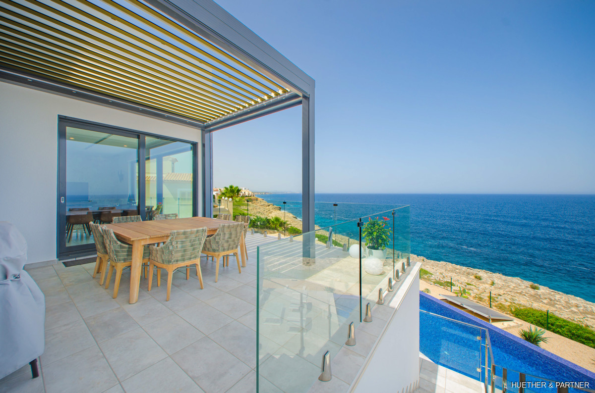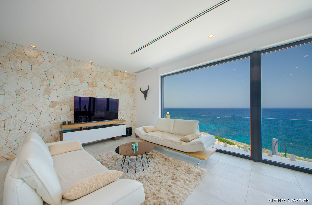 - ✓ - Modern Bauhaus-style architecture - Renovated in 2022 - 324 m² living area - Main residence and guest apartment - Open-plan living/dining area - High-end kitchen - Panoramic sea views - Master suite with workspace - Three bathrooms - Two guest WCs - Convertible laundry room - Separate guest apartment entrance - Infinity saltwater pool - Outdoor kitchen - Rooftop terrace with panoramic views - Terraced garden with stone sculptures - Two parking spaces - Solar-heated water - Heat pump heating - High-quality SCHÜCO windows - Aluminum shutters - Close to Cala Murada beach - Quiet residential area - Proximity to local amenities