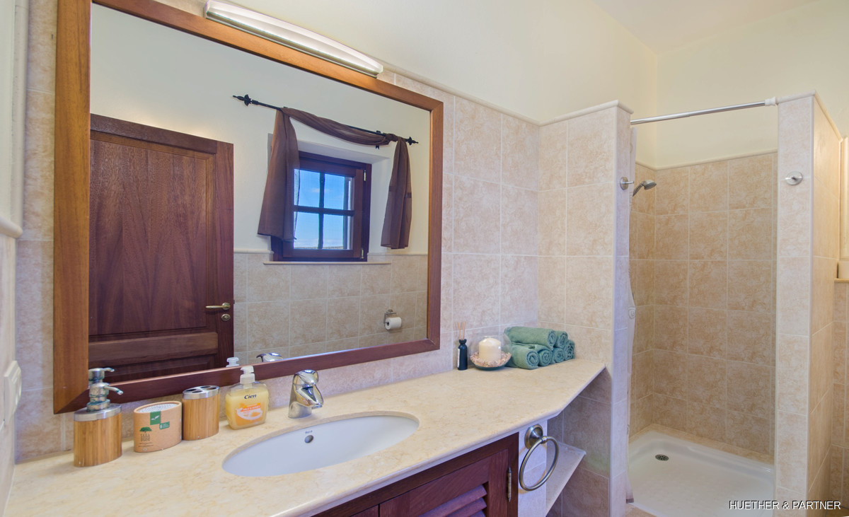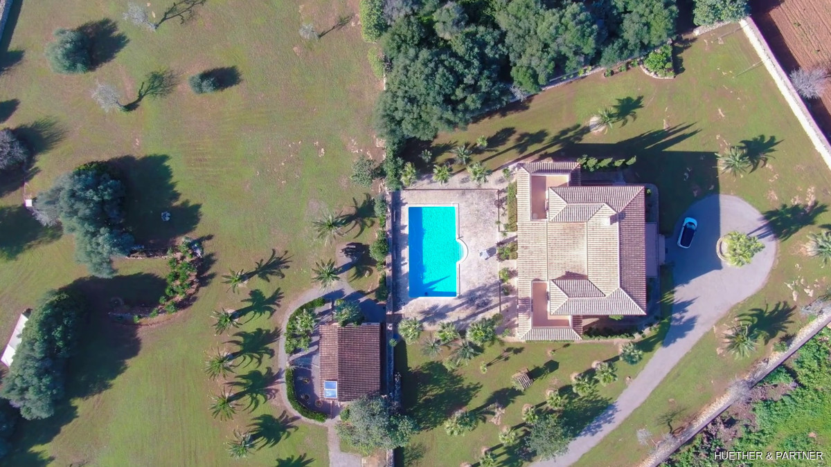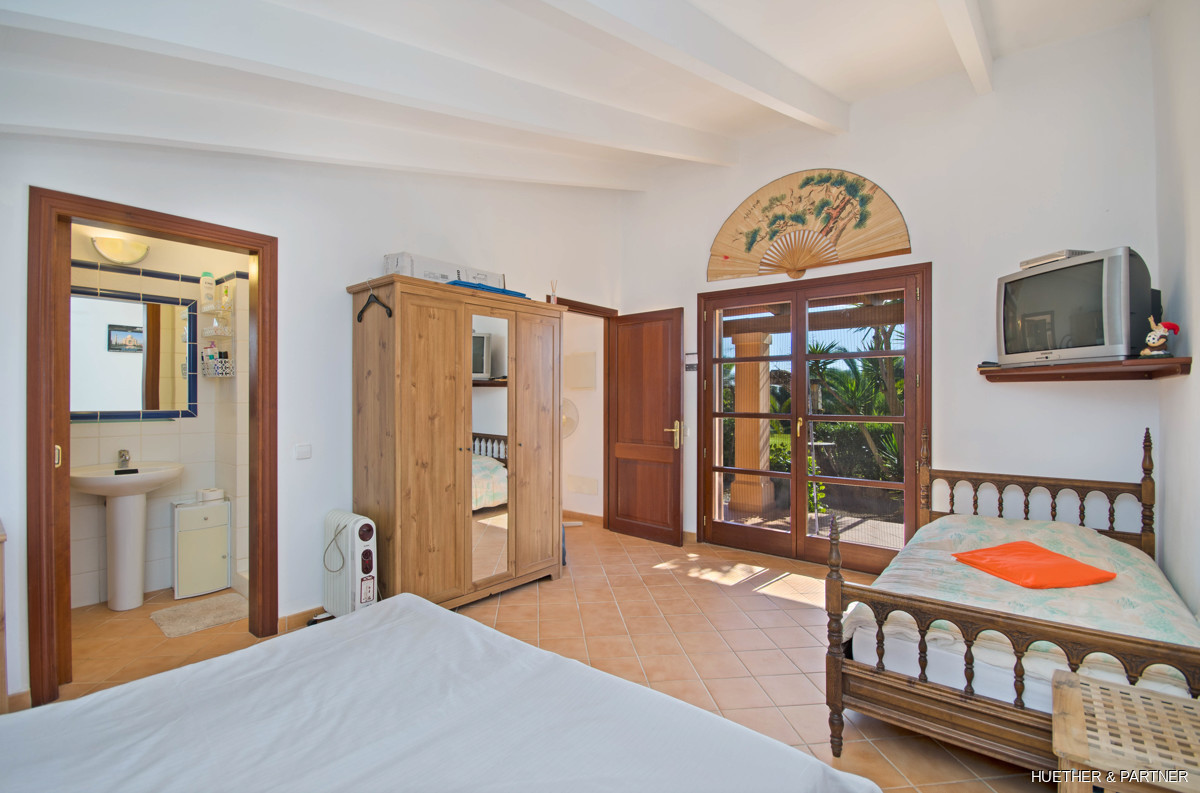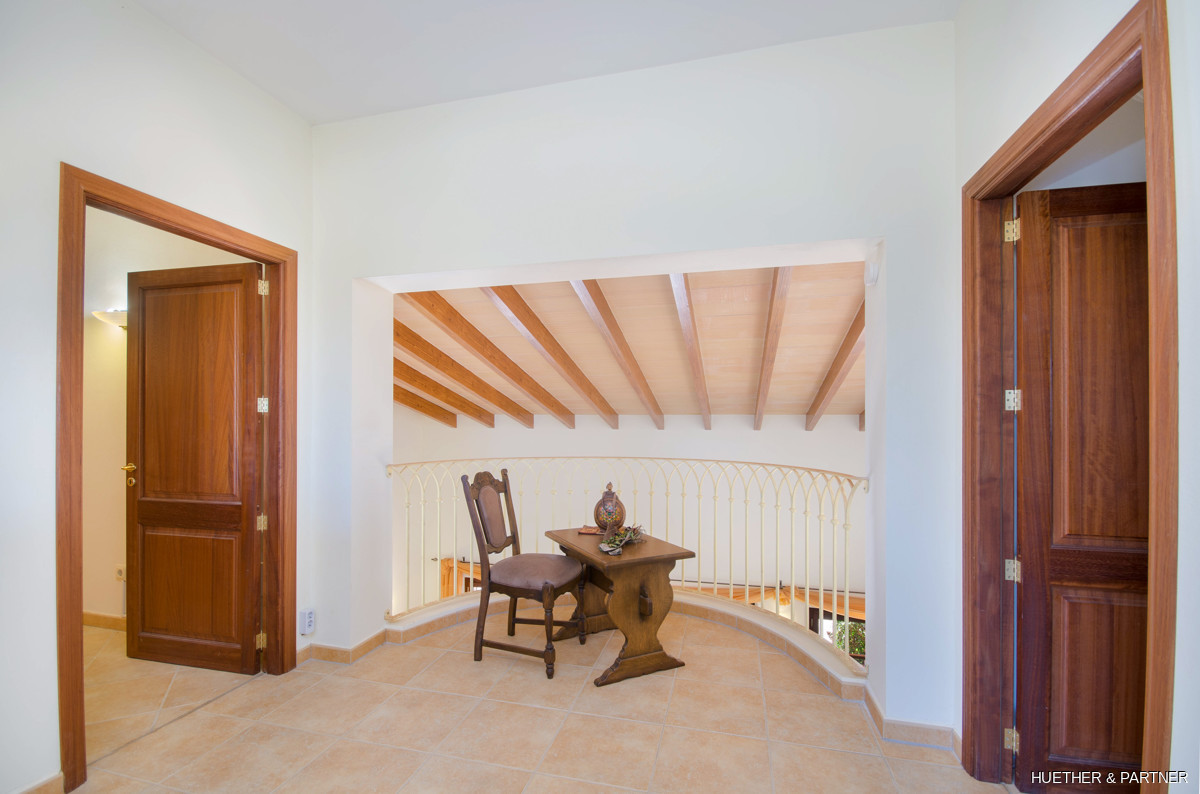 The beautifully landscaped garden includes a tasteful pool area with a sun terrace. The finca is equipped with underfloor heating, powered by an air-source heat pump and photovoltaic system, while a rainwater cistern ensures optimal garden irrigation. This charming property combines luxury with sustainability, providing ample space for family living in a serene Mediterranean setting.