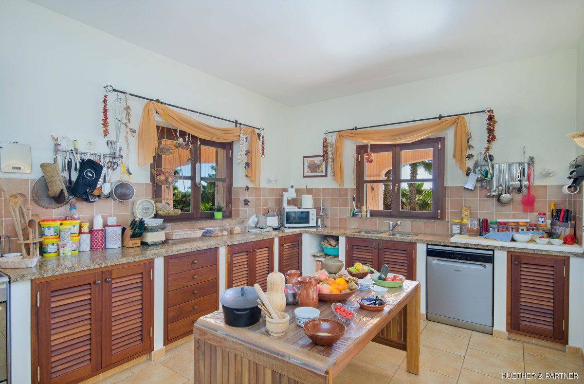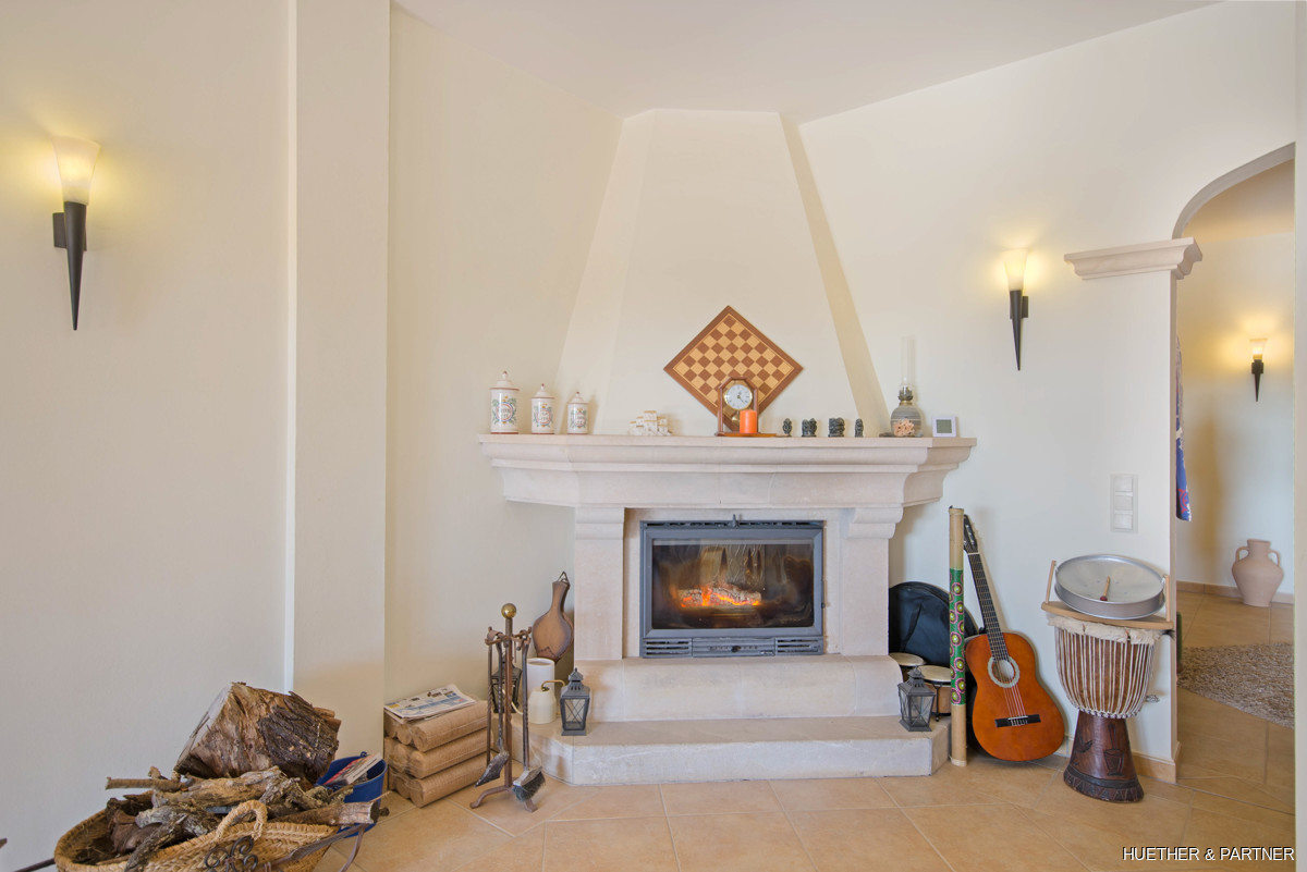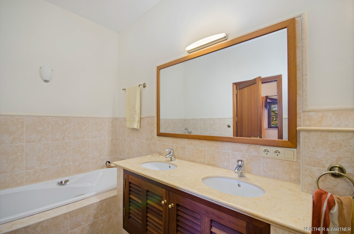 The beautifully landscaped garden includes a tasteful pool area with a sun terrace. The finca is equipped with underfloor heating, powered by an air-source heat pump and photovoltaic system, while a rainwater cistern ensures optimal garden irrigation. This charming property combines luxury with sustainability, providing ample space for family living in a serene Mediterranean setting.