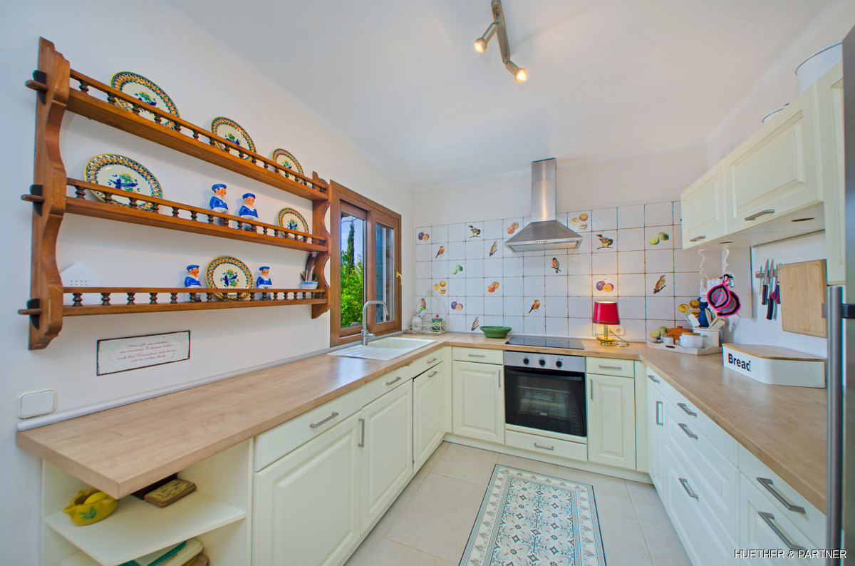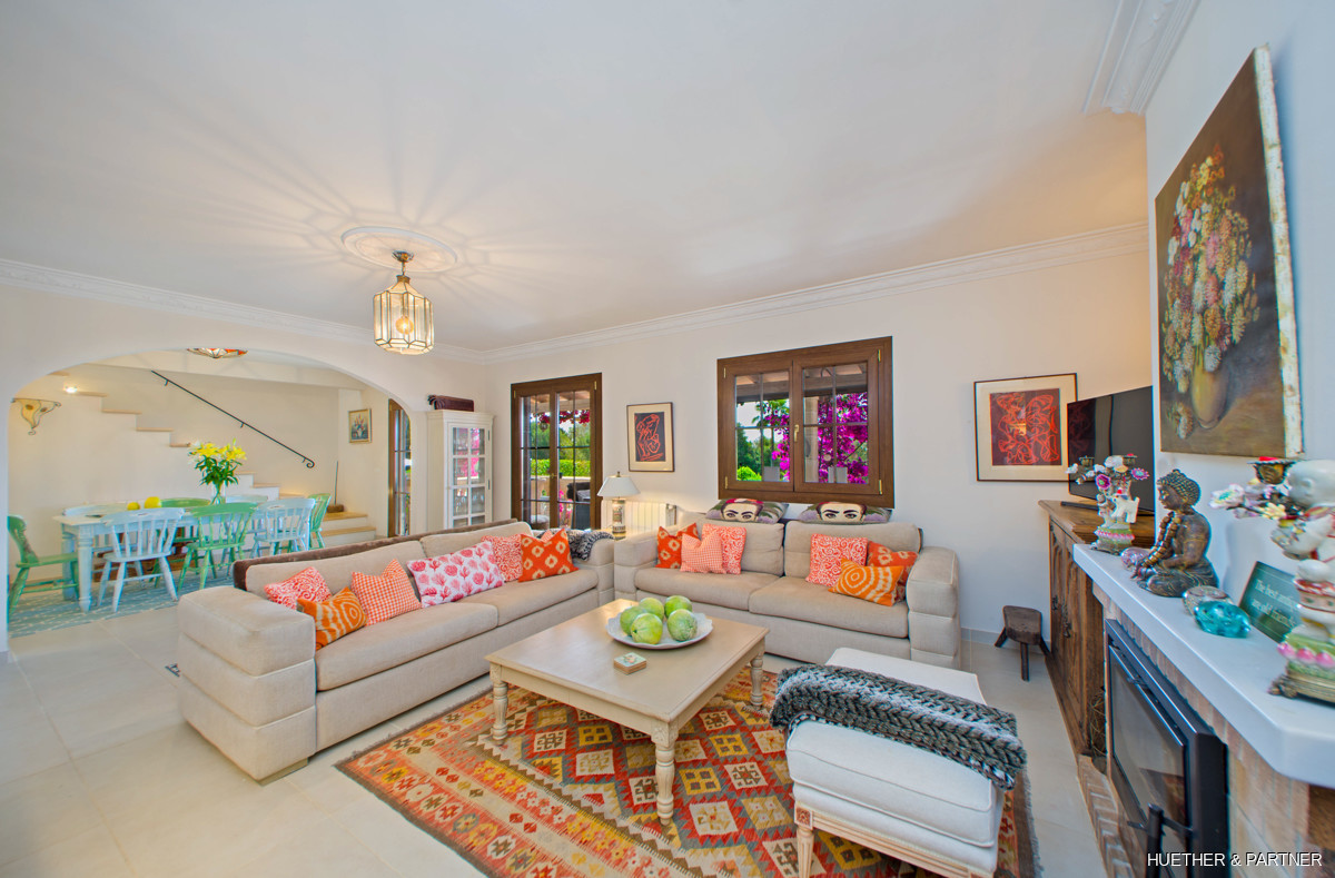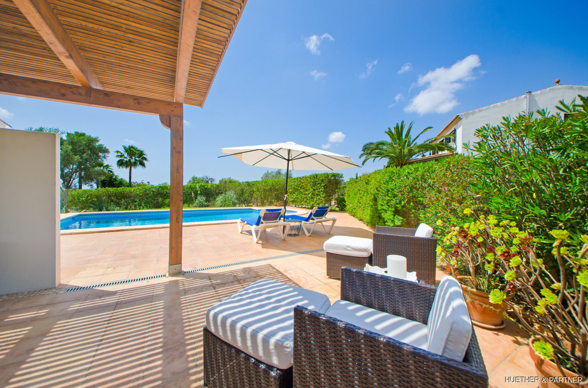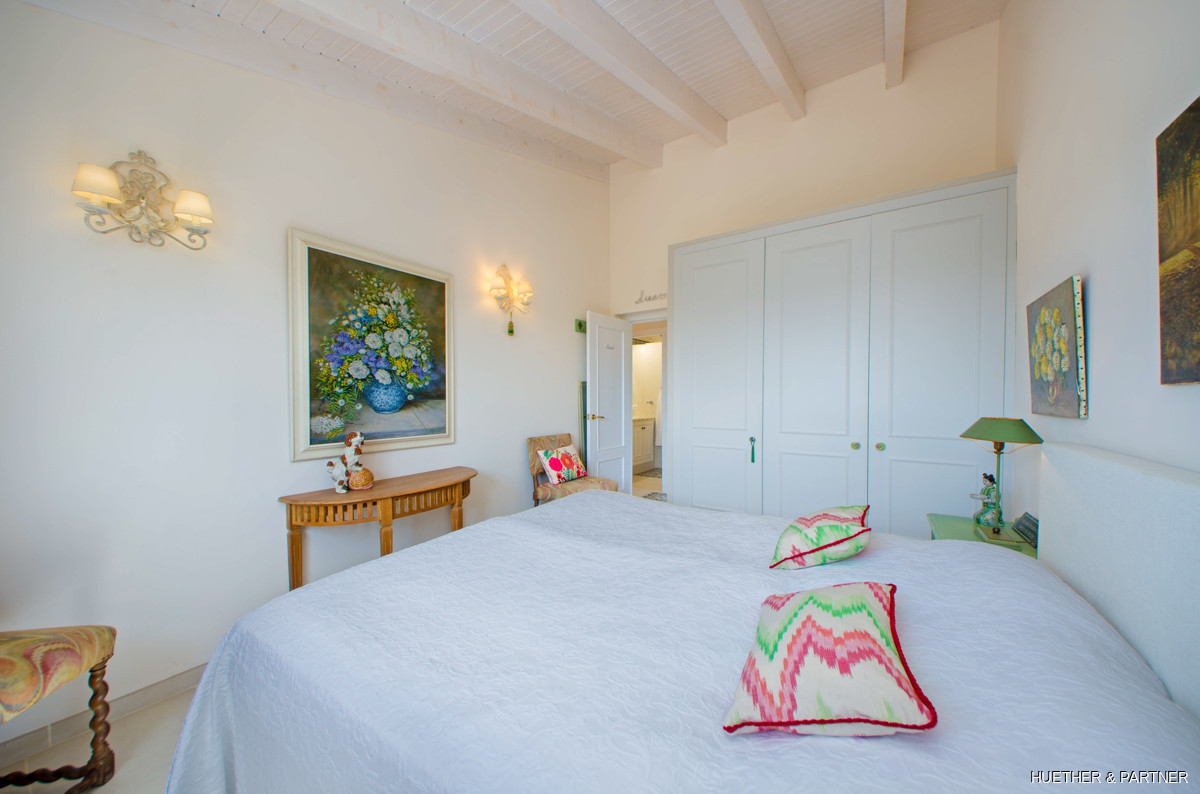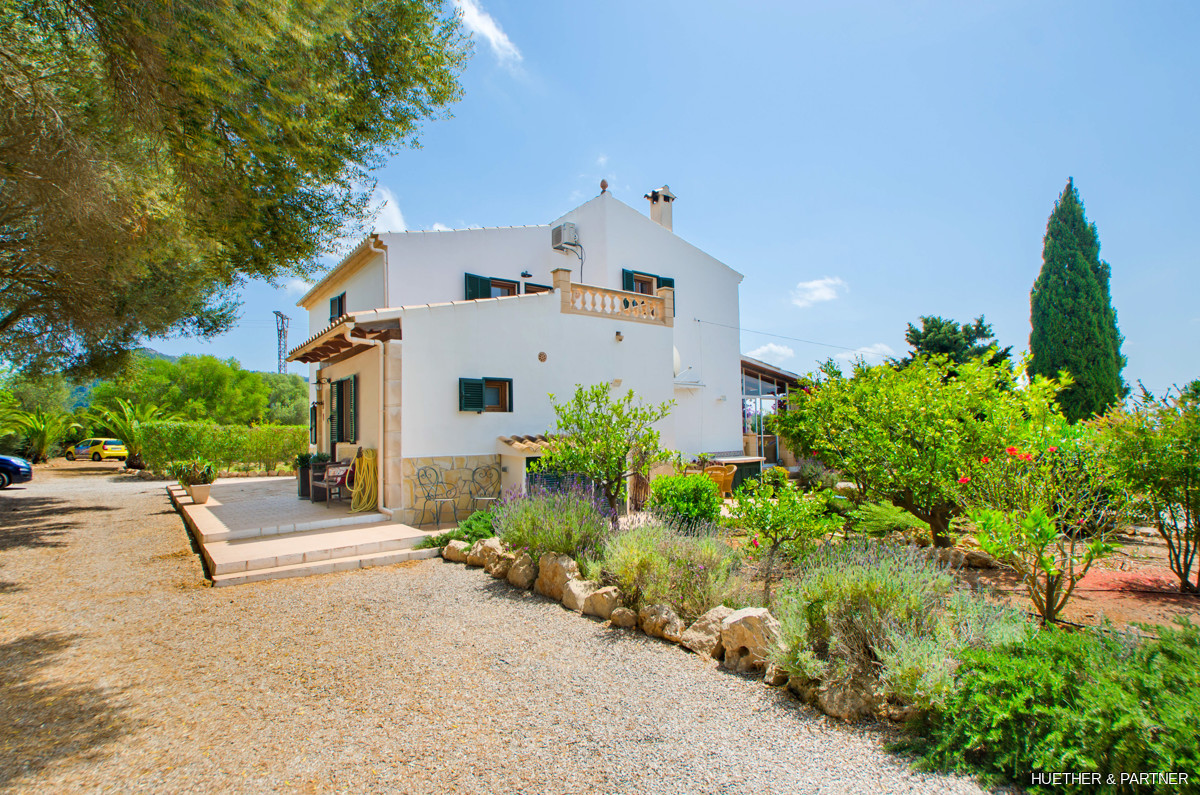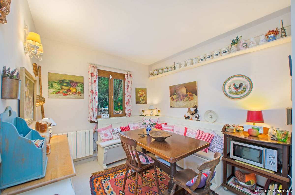 This stunning finca near Llucmajor combines Mediterranean charm with English and North German maritime influences, creating a unique atmosphere. The property features a saltwater pool, an outdoor kitchen with BBQ, and a covered veranda with glass sliding doors for wind protection. Inside, the ground floor includes a spacious living area with a fireplace, a kitchen, a tea-room with a Sylter corner bench, and a Mediterranean-style bathroom with a corner bathtub. Upstairs, three bedrooms are connected by a corridor, with one featuring a walk-in closet. Additionally, there is a cozy reading room leading to a rooftop terrace with distant sea views to Cabrera.