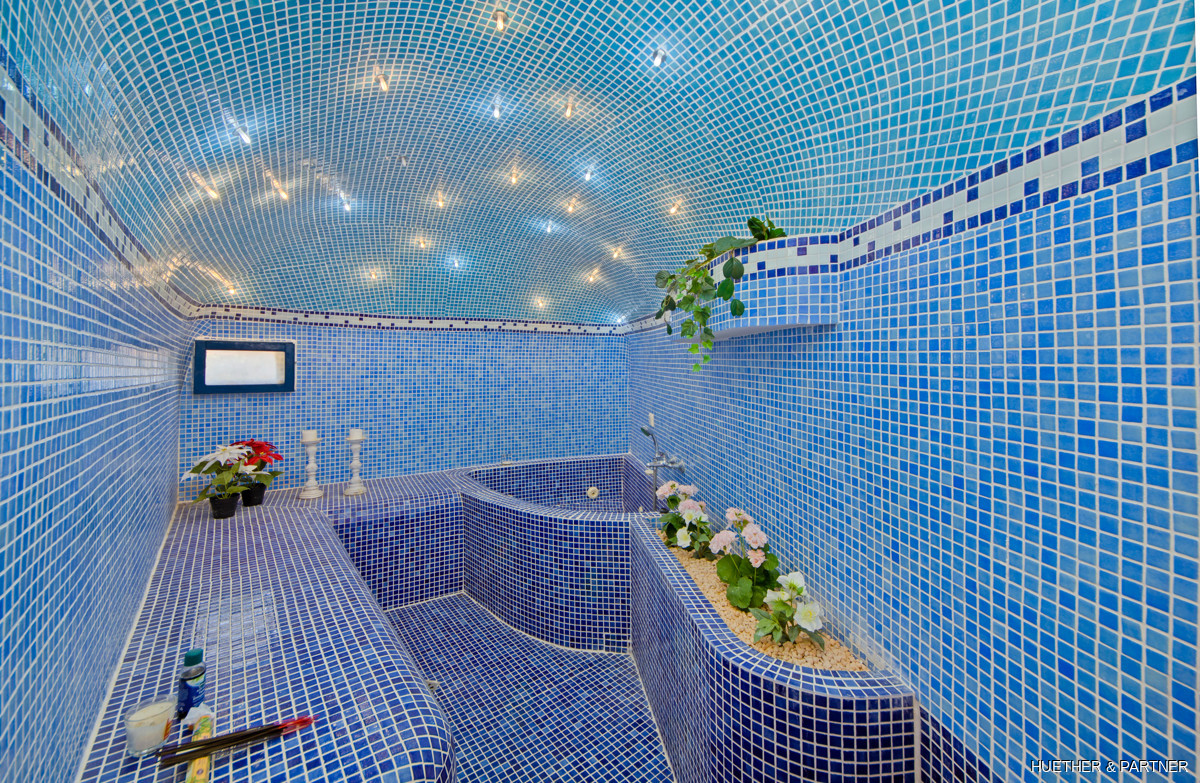 - ✓ Mosaic-tiled pool