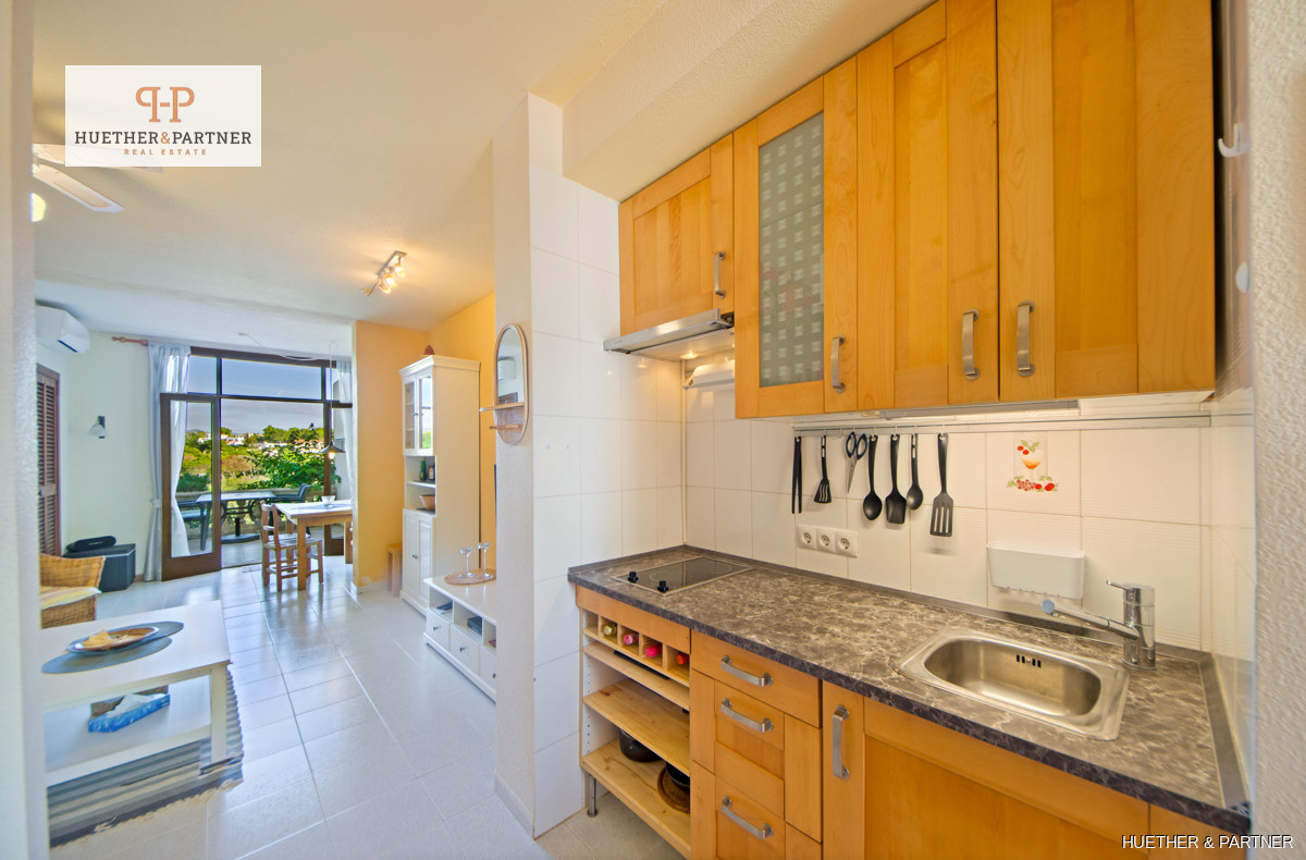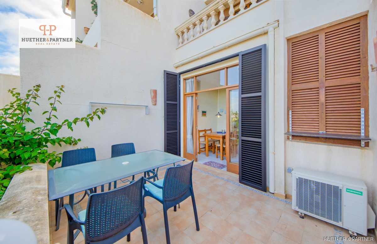 This delightful ground floor apartment in Cala Murada offers a constructed area of 61 m², featuring a bedroom, a bathroom with a bathtub, a living/dining area, an open kitchen, a utility/storage room, and a large terrace. The terrace offers stunning views of Cala Murada Bay and the sea, as well as the Sant Salvador monastery hill and the Castell Santuiri near Felanitx. Residents can enjoy direct access to the communal garden and pool area with sea views. The apartment is equipped with wooden doors, wooden windows, and aluminum shutters. It includes air conditioning for both warm and cold settings and comes fully furnished. A private parking space is conveniently located right in front of the house.