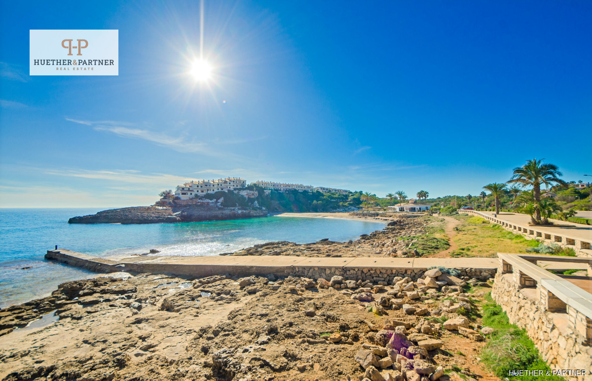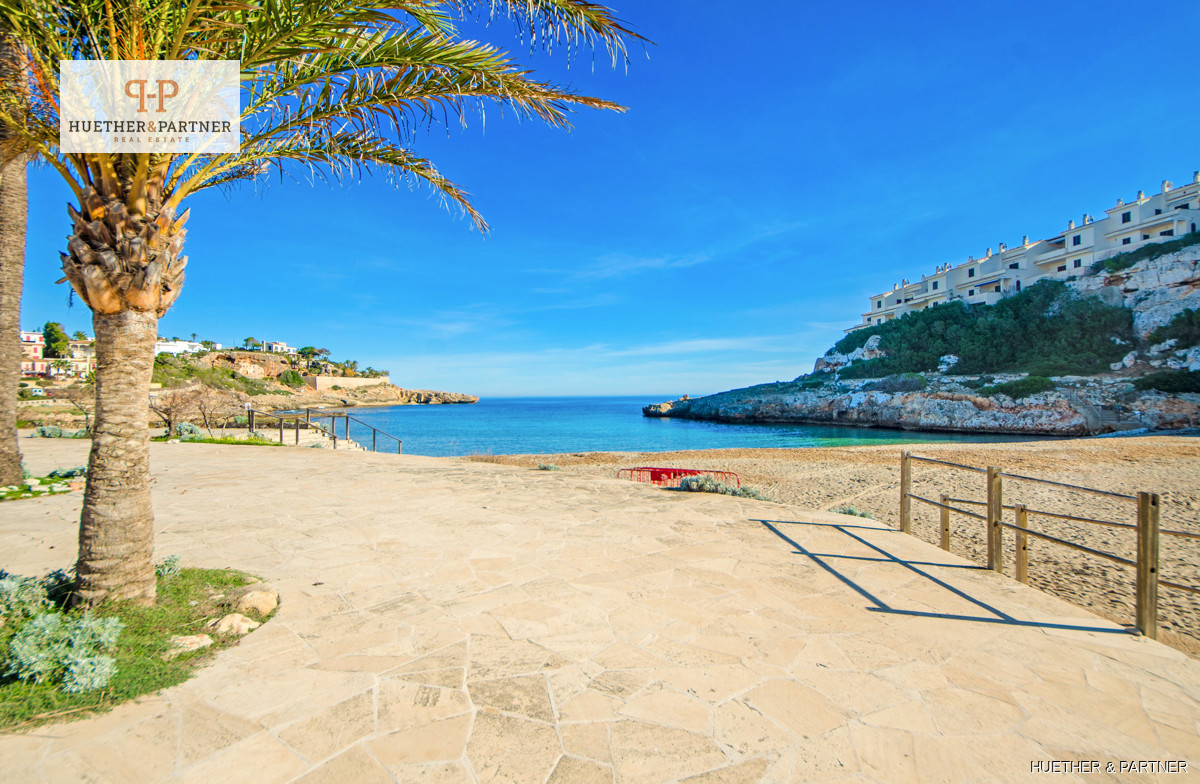 Additional amenities can be found in nearby towns like Portocolom, Felanitx, Manacor, and Porto Cristo. The Cala Murada area is surrounded by extensive pine forests and meadows with fig, carob, and almond trees. A particularly charming destination is the former fishing village of Portocolom, known for its promenade along the islands largest natural harbor and its numerous restaurants and cafés. A walking path from Cala Murada through the wild Cala S’Algar even allows foot access to the historic Portocolom between the old town and the Sa Punta peninsula. The new expressway connecting Llucmajor and Campos makes the airport reachable within 40 minutes, with Palma being around 60 kilometers away.