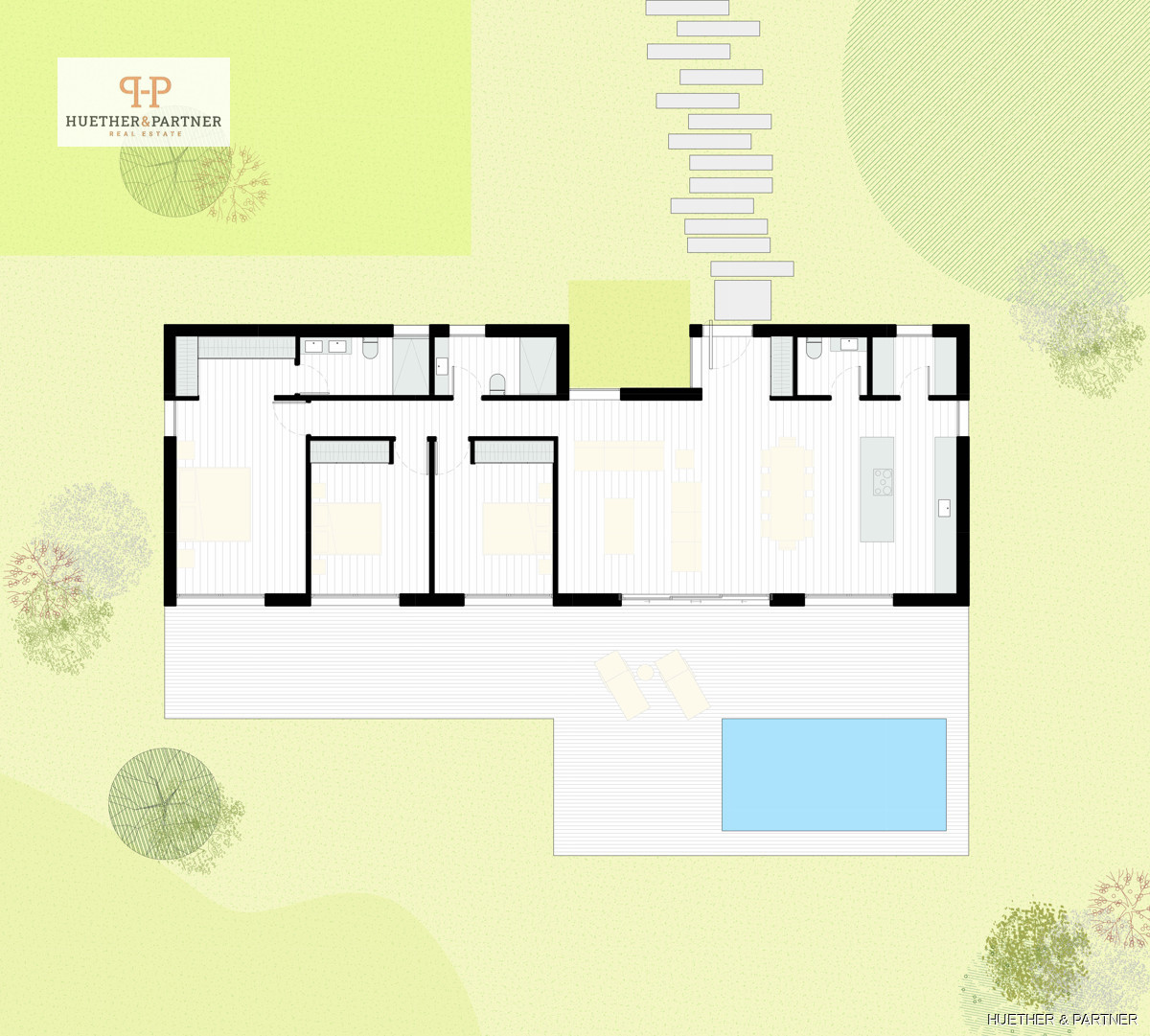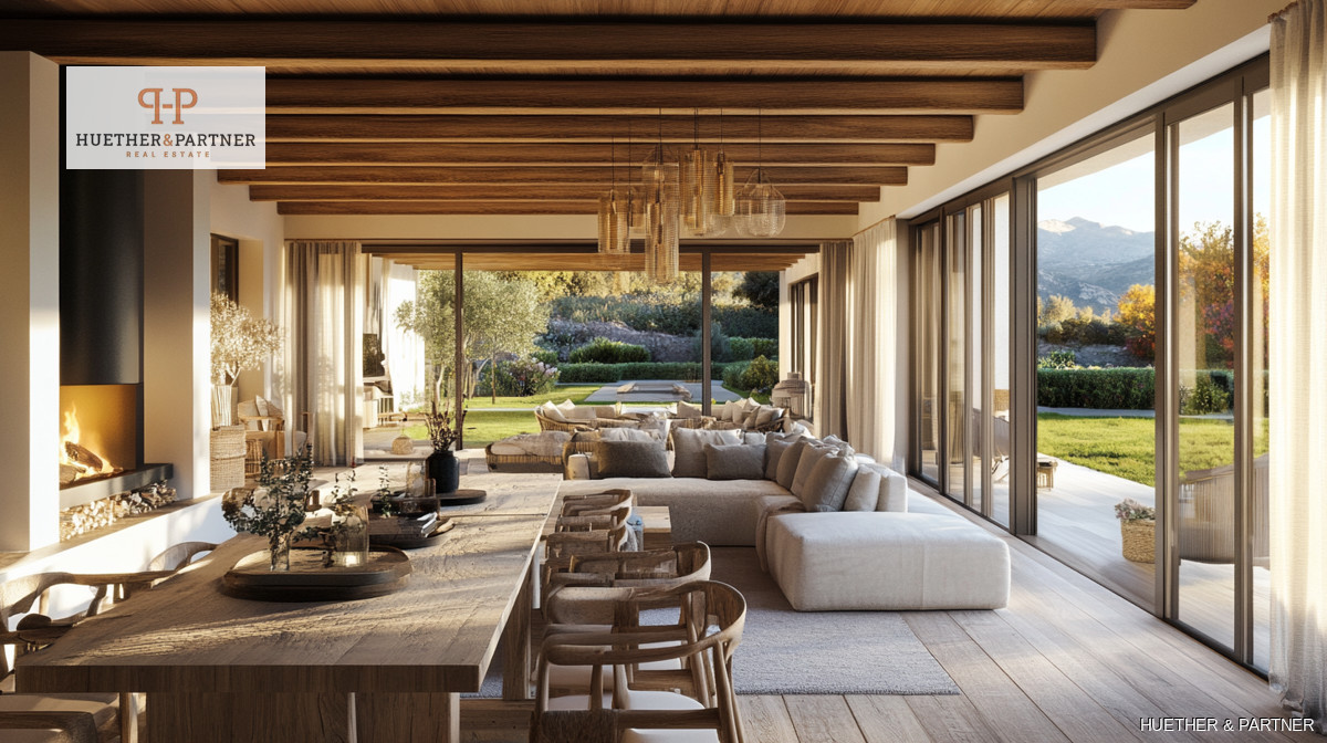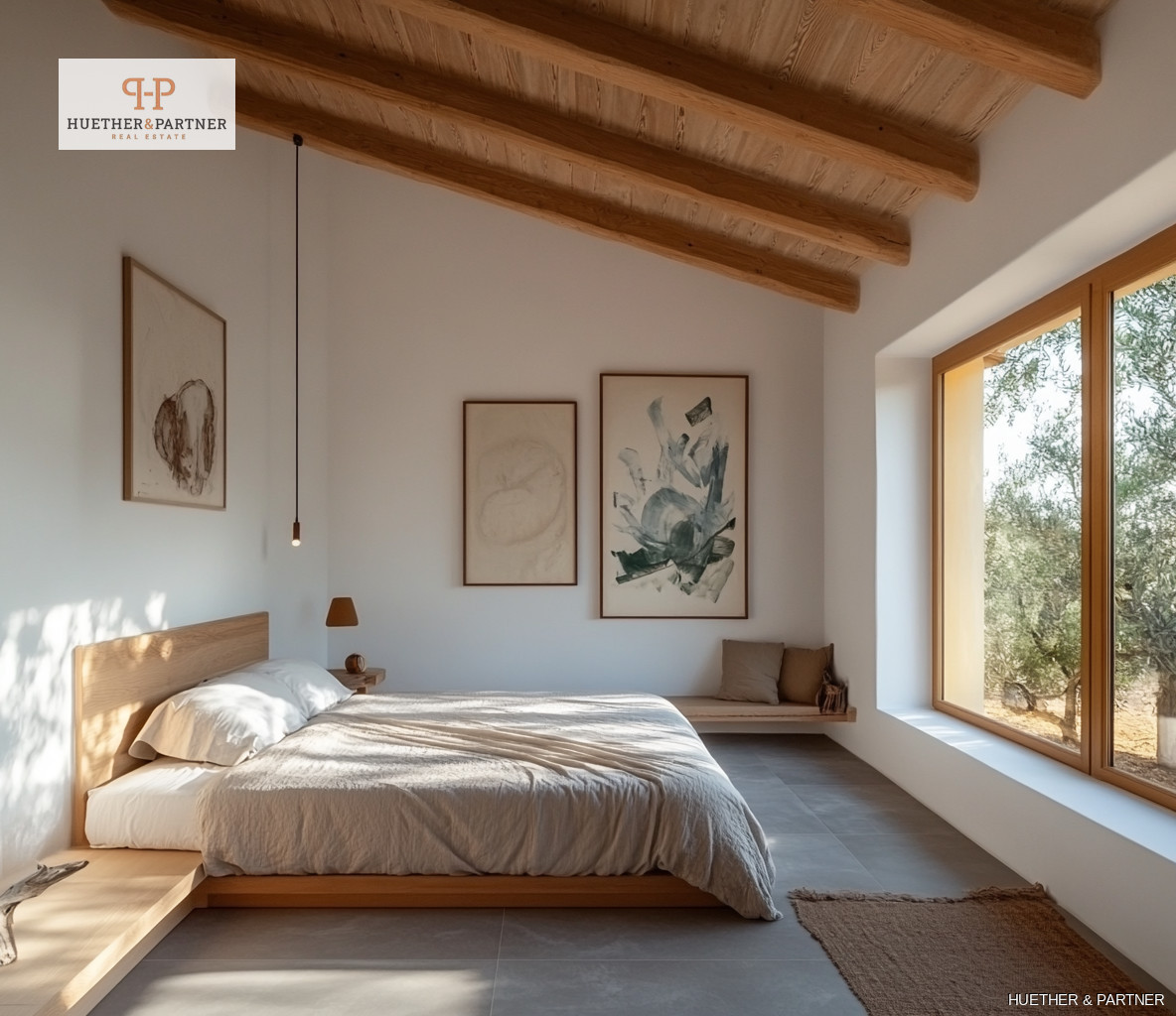 This new construction project offers a customizable villa near Sineu, allowing the buyer to personalize the design before construction begins. With a spacious built area of approximately 156 m², the villa includes a living/dining room, kitchen, three large bedrooms, a study, two bathrooms, a utility room, a guest WC, and a terrace of about 75 m². The property features modern comforts such as air conditioning, underfloor heating, triple-glazed windows, and thermal insulation.