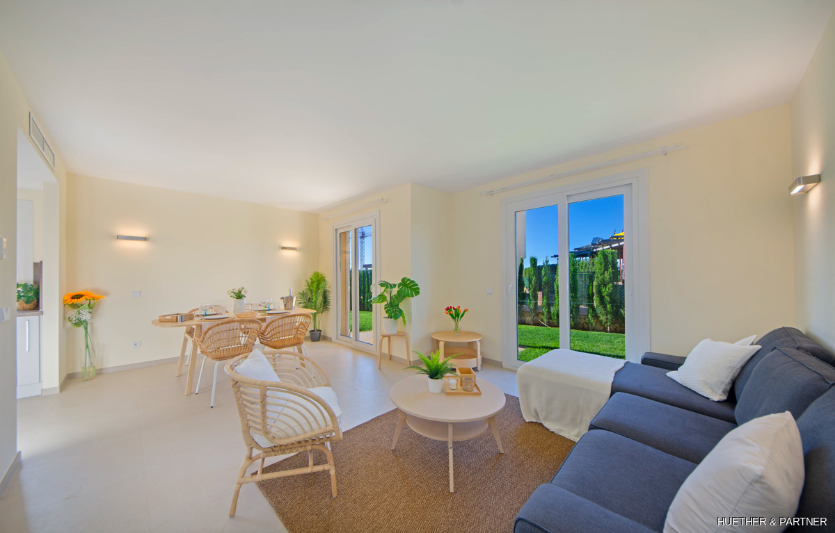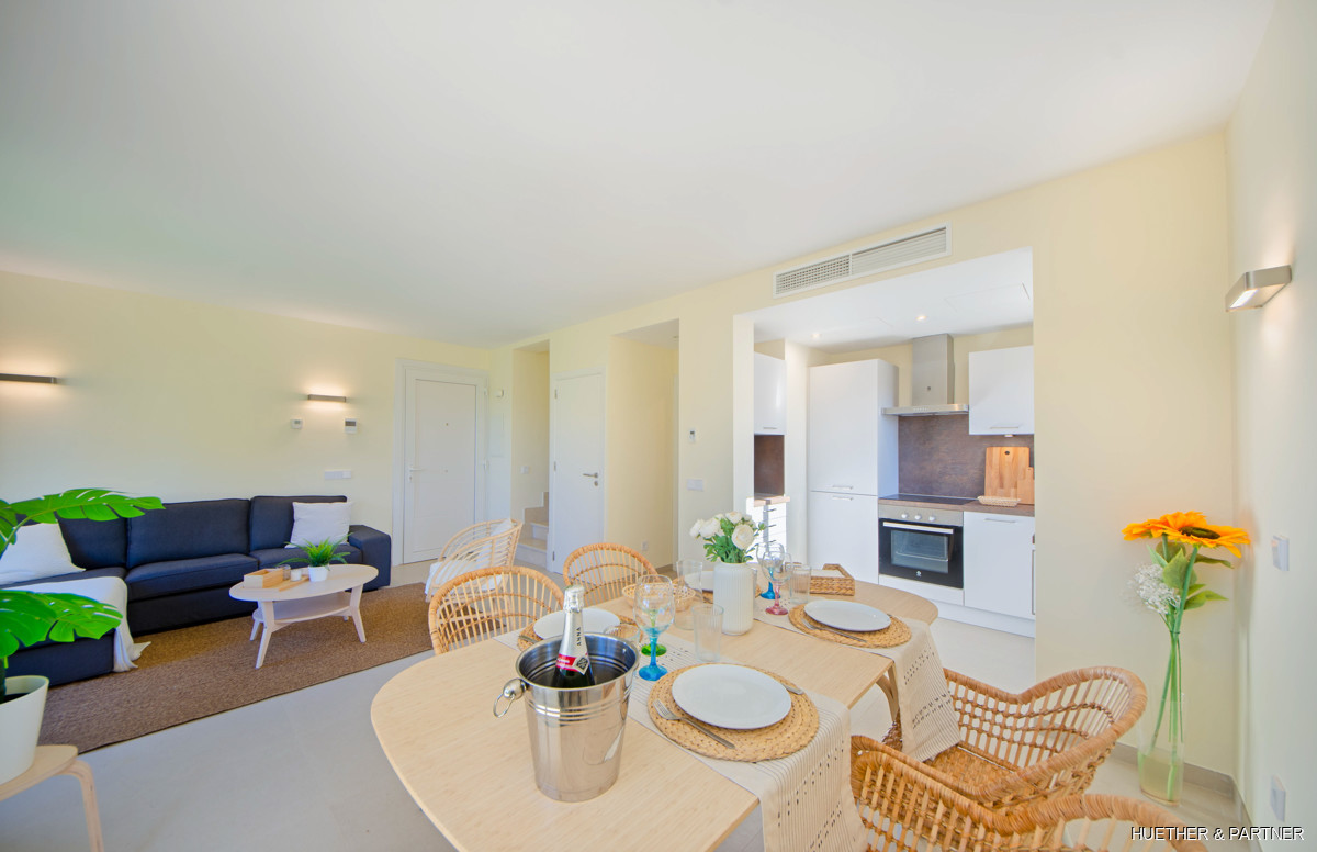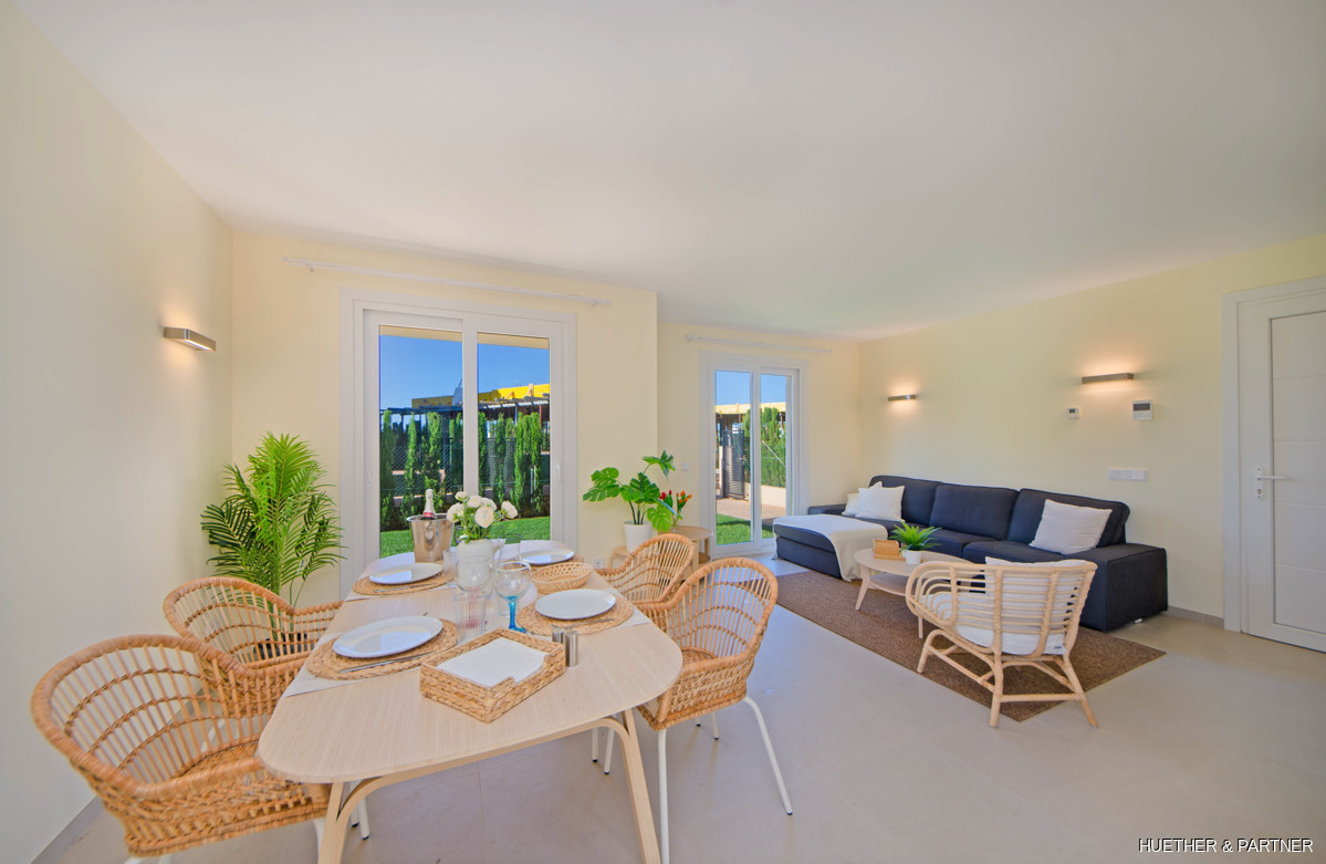 Enjoy a private, fenced garden, terrace, balcony, and rooftop terrace with stunning views of the sea and Cabrera Island. The property is part of a community with a shared pool, tennis courts, mini-golf, green areas, and a restaurant. South-facing and currently under construction, it is expected to be completed by the end of 2024. Two pilot houses are available for viewing.