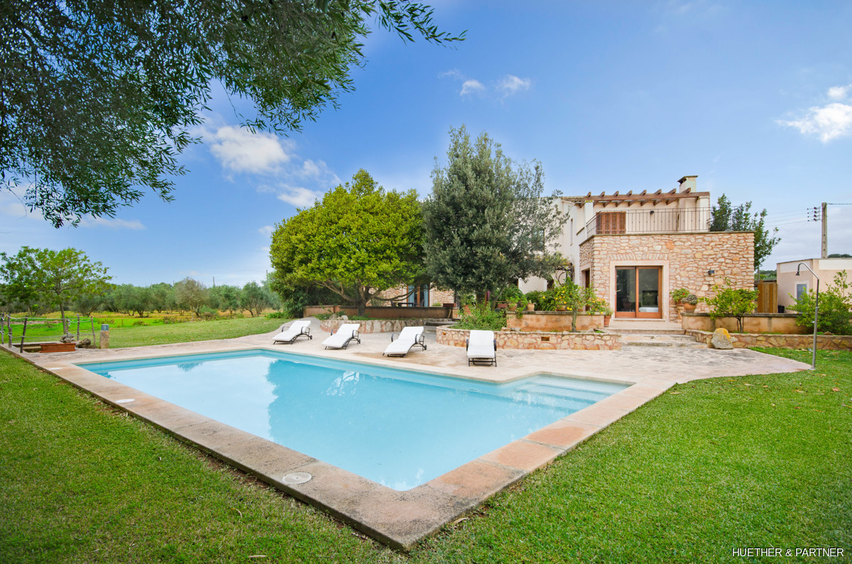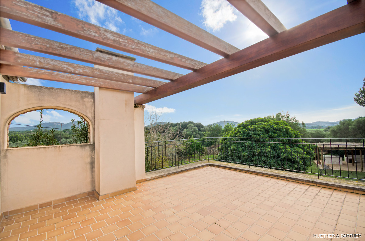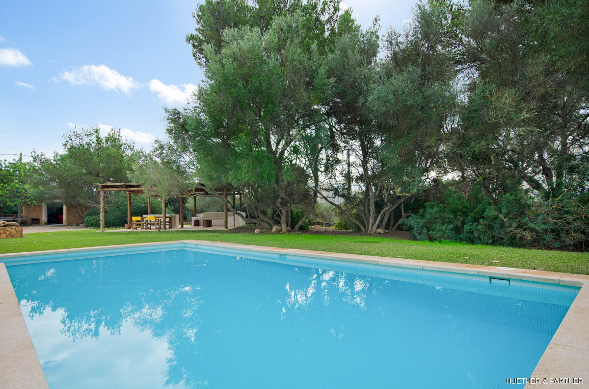 This stunning finca, built in 2005 on a 15,109 m² plot, offers a luxurious lifestyle in the heart of nature near Cas Concos. The property features a 539 m² built area with a main house, separate guest apartment, and a magnificent pool area with a BBQ corner and two garages.