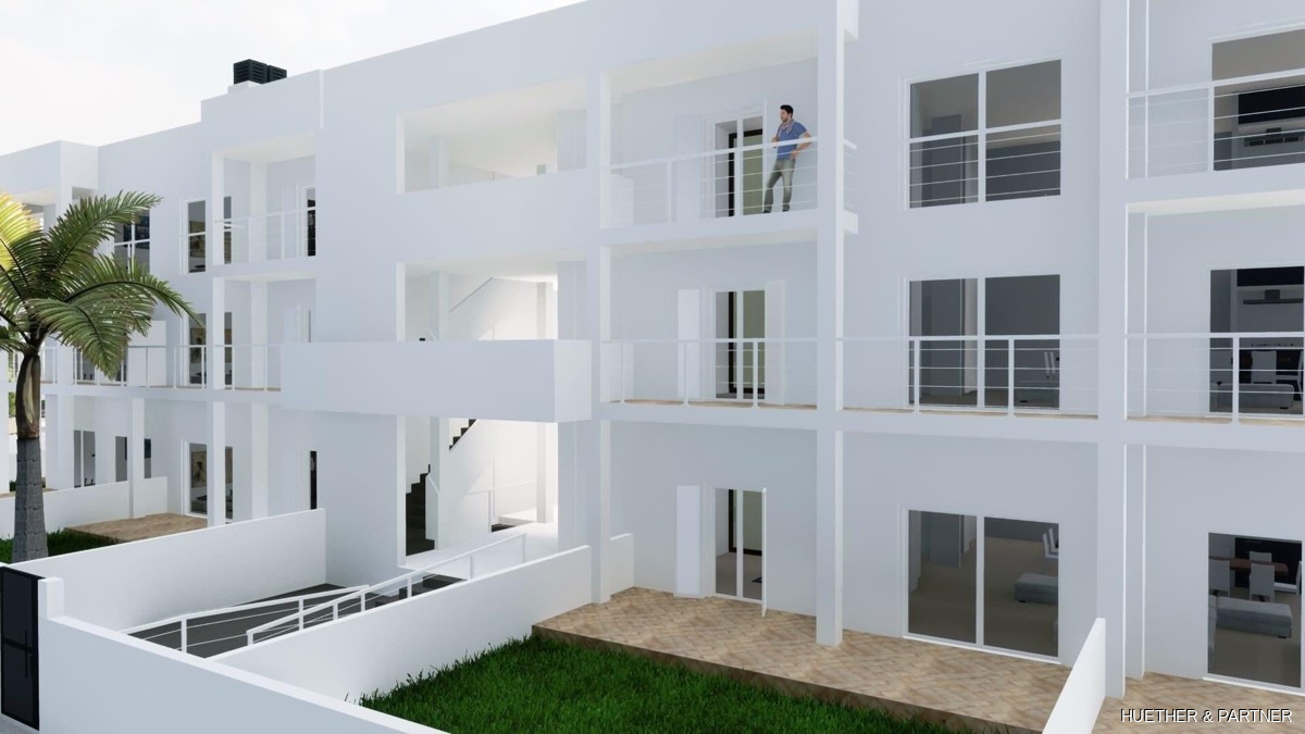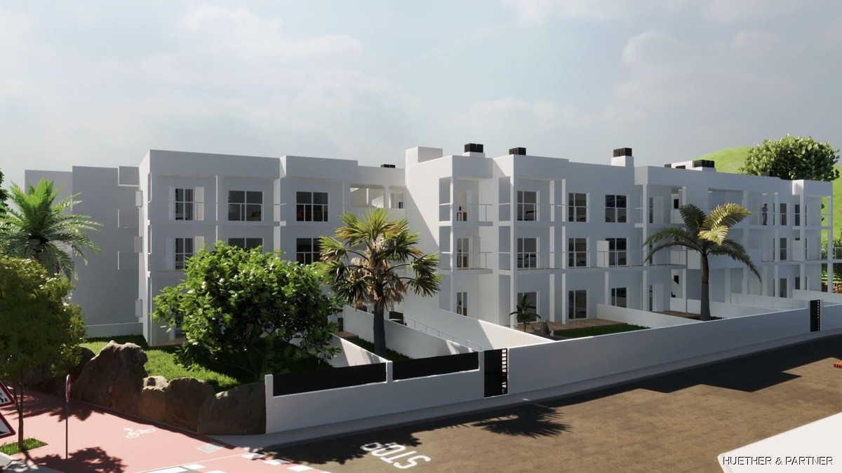 This fantastic VPO new build project offers 38 state-subsidized apartments in Cala Bona, a peaceful area close to various beaches. The complex is designed with sustainability in mind, boasting an A energy rating and solar panels for communal areas. It features top-quality materials, excellent thermal insulation, double-glazed windows with solar protection, and aluminum shutters. Each unit includes spacious and bright bedrooms, stylish and functional bathrooms, and an open-plan kitchen and living room. Enjoy the outdoors from your private terrace or balcony. Each apartment comes with a private parking space and additional storage of approximately 9 m².