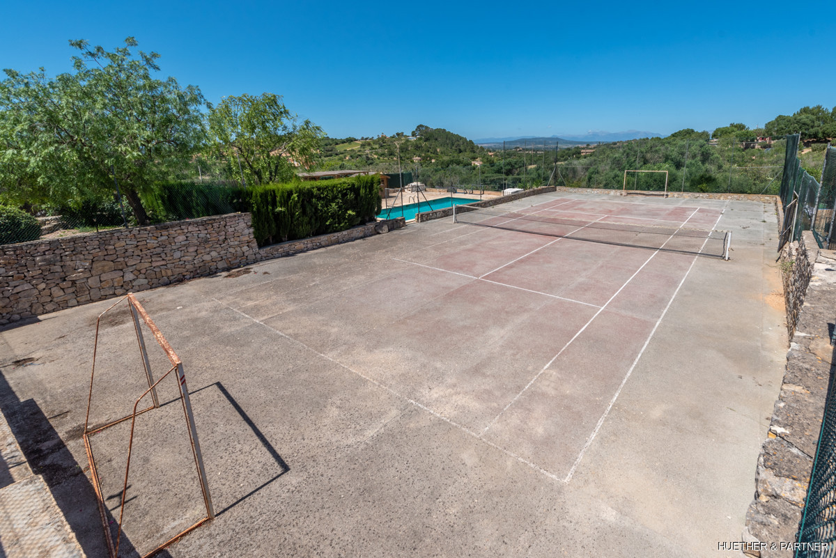 This charming Mallorcan finca in Son Macia offers a unique blend of traditional charm and modern amenities. The property features a rental license, making it ideal for both personal use and tourist rentals. With 3 bedrooms, a cozy living room with a fireplace, a dining area, and two updated bathrooms, it provides ample space for comfort. A standout feature is the fenced swimming pool area accompanied by a relaxing zone, a tennis court, and a boules area. The finca includes a separate apartment, workshop, animal keeping areas, and a BBQ.