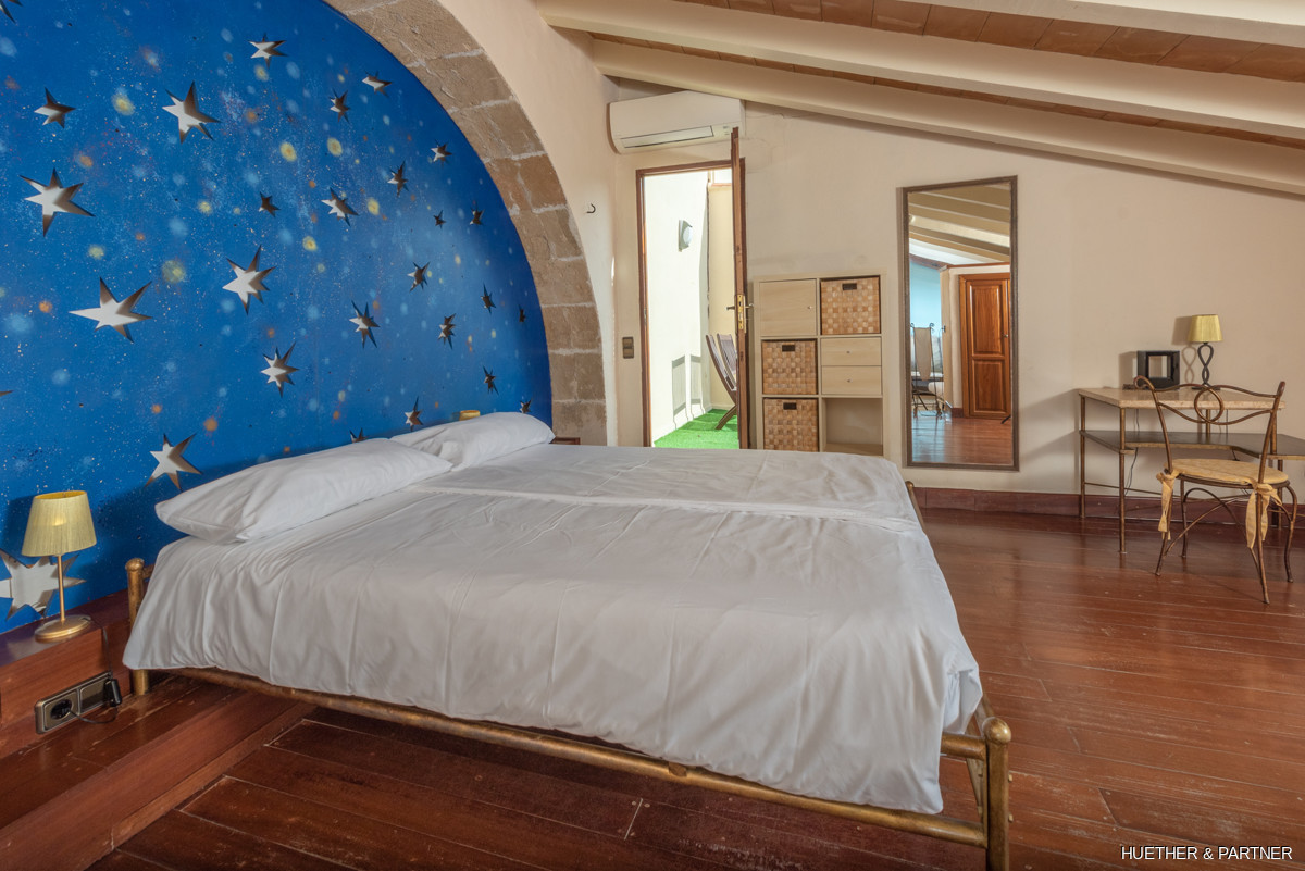 This historic city hotel in Arta, Mallorca, offers a perfect blend of old-world charm and modern comfort. The property features air conditioning and central heating in all rooms, with original or historically inspired doors and windows. Quality installations and furnishings enhance the luxurious feel. The ground floor includes a reception area, professional industrial kitchen, storage rooms, and a small laundry facility. Guests can enjoy the restaurant, bar, and a multipurpose room, as well as outdoor terraces and a garden with a 57 sqm pool. The hotel has 8 uniquely designed suites, each with spacious bathrooms featuring bathtubs and showers, and private balconies or terraces offering scenic views. Emphasizing functionality and comfort, this hotel has maintained its reputation for over two decades, even thriving during challenging times.