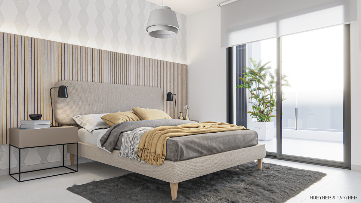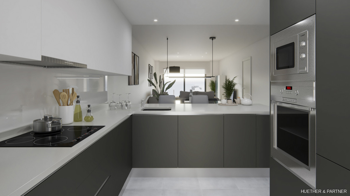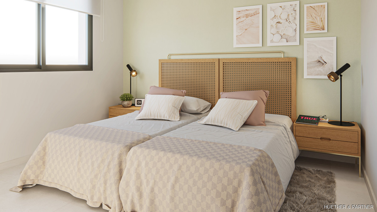 The last new-build garden ground-floor apartment includes a 186 m² garden, just 470 meters from the beach. The interior, with large windows and a balcony, feels bright and spacious, offering stunning southern views of the mountains. The extensive communal area includes a swimming pool, whirlpool, playground, green space, and outdoor parking. Each apartment comes with a garage parking space and storage room included in the price. The complex comprises 31 apartments distributed across two residential blocks, along with semi-detached houses and villas.