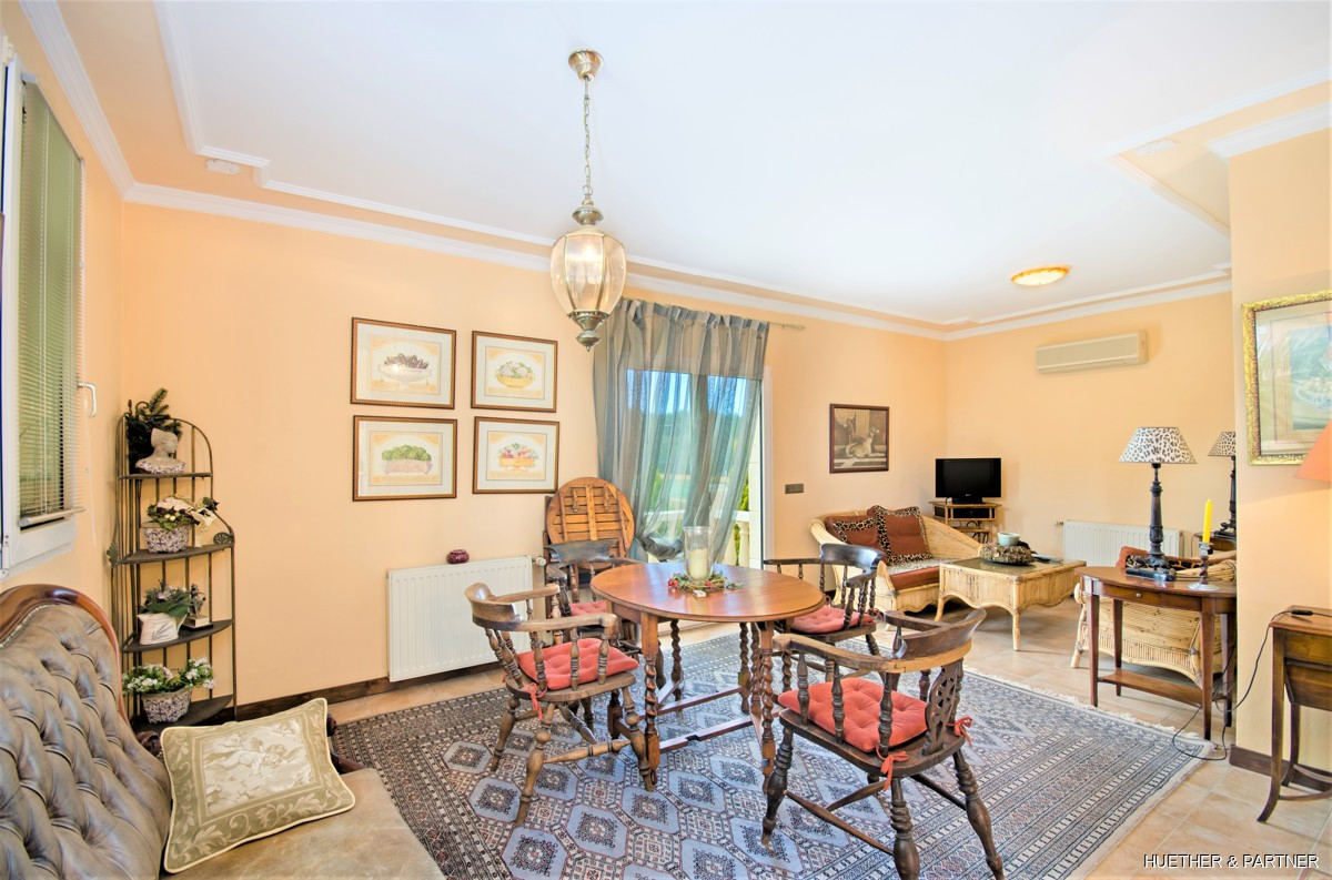The villa is fully air-conditioned and features an oil central heating system along with underfloor heating in the ground floor. Electricity and telephone connections are provided by direct suppliers. The property is equipped with high-quality materials and craftsmanship, including custom-made solid wood windows and doors, ensuring a luxurious living environment.