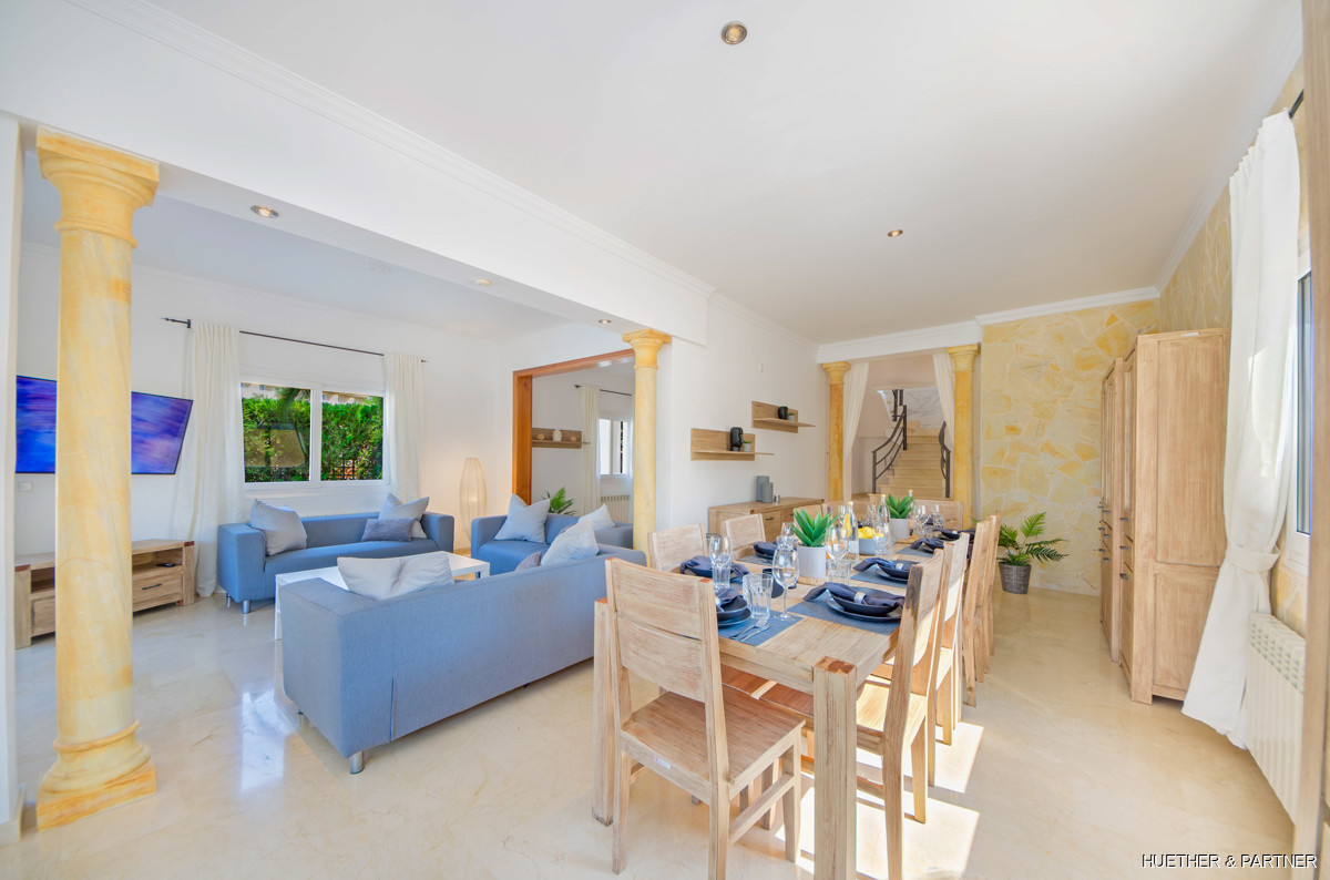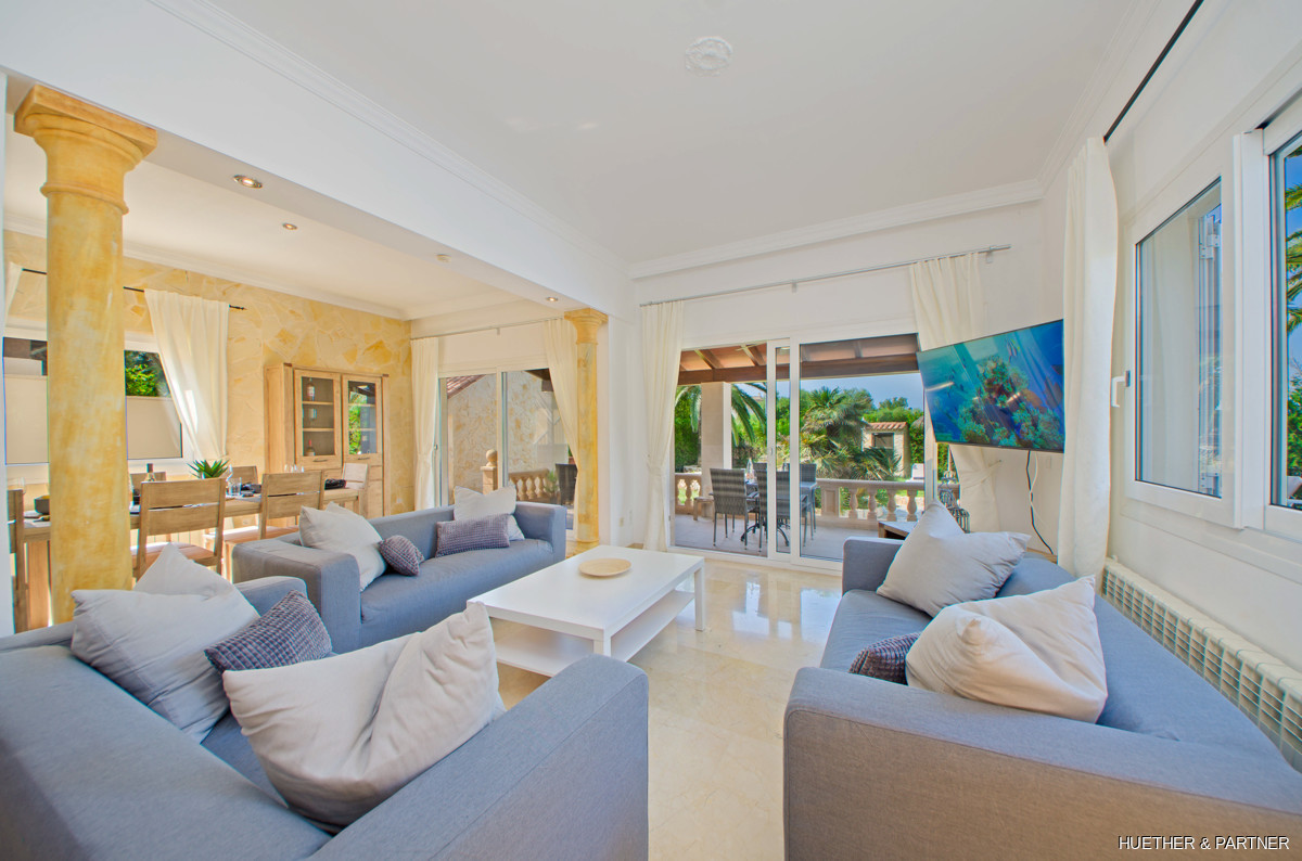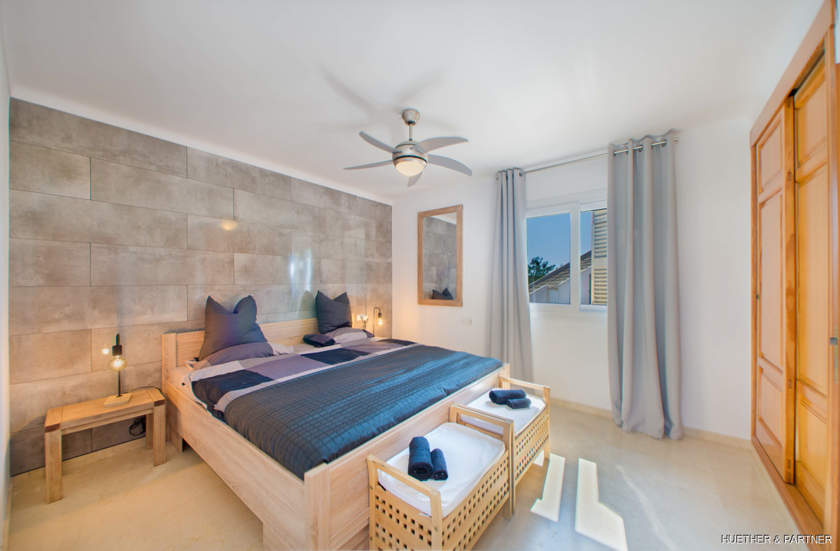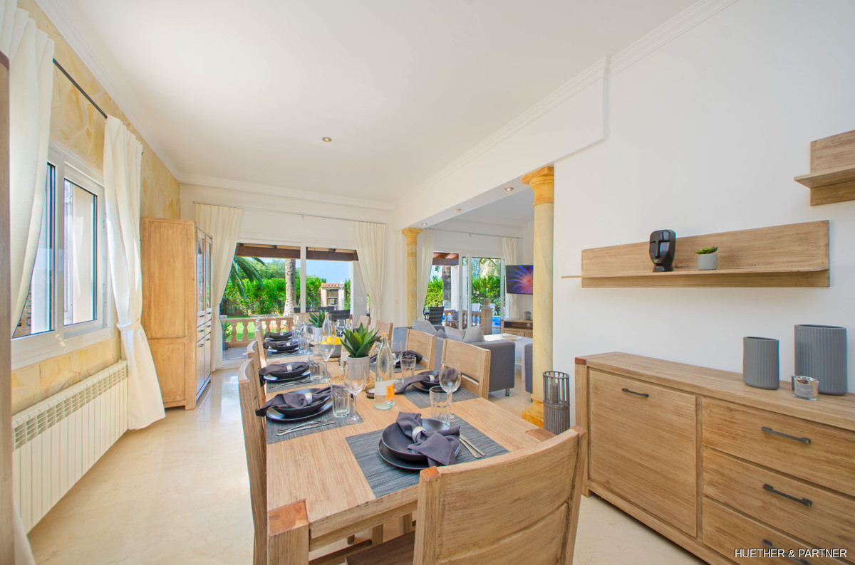 Situated in the southeast of the island, the upscale luxury villa in Cales de Majorca offers panoramic views. Cales de Majorca has a small shopping center and various bars and restaurants. Nearby towns such as Portocolom, Felanitx, Manacor, and Porto Cristo provide additional amenities and are accessible by car within 10 to 20 minutes.