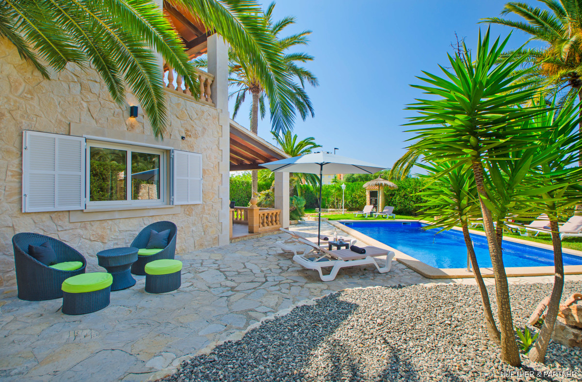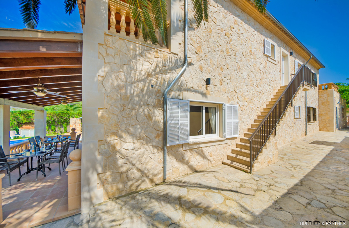 The area is surrounded by extensive pine forests and orchards, offering attractive excursion destinations like the fishing village of Portocolom, the caves of Porto Cristo, and the Felanitx market. The bays of Cala Antena and Es Domingos are within walking distance, providing beautiful beach experiences.