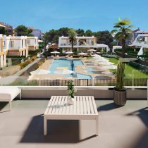 The property is part of a development that includes ground floor apartments, penthouses, and semi-detached houses, set within a stunning garden area with a communal pool and whirlpool. The completion is scheduled for August 2024, with a reservation fee of €10,000 and subsequent payment installments.