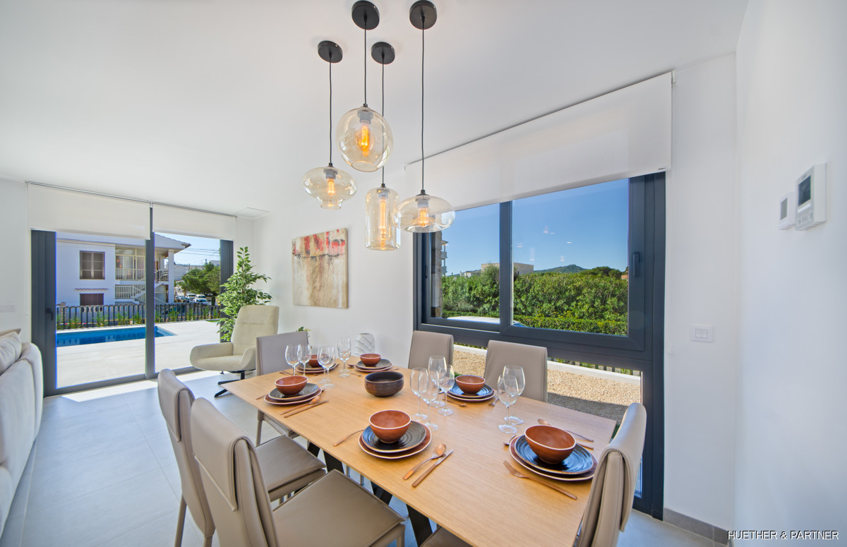This newly constructed semi-detached house in Cala Ratjada offers a luxurious living experience with a warm/cold air conditioning system for year-round comfort. Featuring three bedrooms and three to four bathrooms, including an en-suite, the property is thoughtfully designed with a bedroom and bathroom on the ground floor. The open-plan living area includes a high-quality fitted kitchen and provides direct access to a large terrace and a private garden, ranging from 180 to 360 square meters. A private parking space and a utility room enhance the convenience of this home. Optional furniture packages are available for a fully furnished purchase.