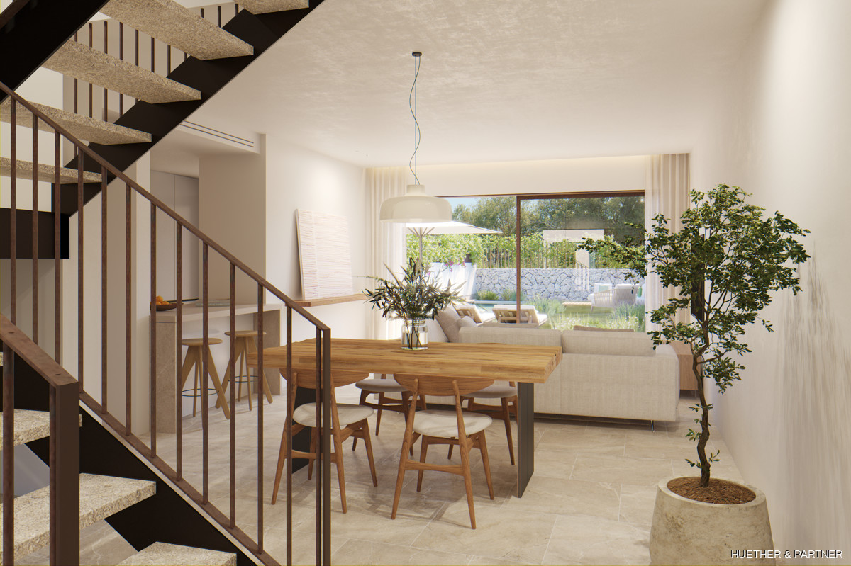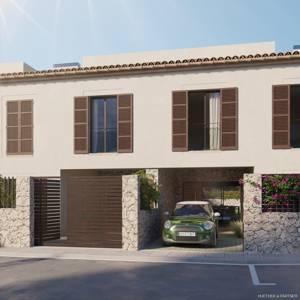 This newly constructed semi-detached house at the outskirts of Son Carrió offers bright rooms and a private garden. The home features double-glazed windows, a fitted kitchen, and a utility room. Spread over two floors, it includes an open-plan living and dining area, four bedrooms, and three bathrooms. Enjoy leisure time by the private pool or on the rooftop terrace with distant sea views. Each house also has a carport for one vehicle on its own plot.