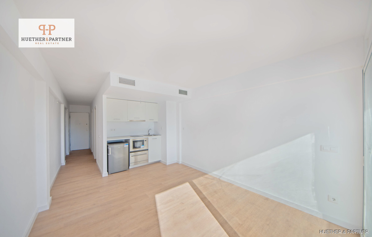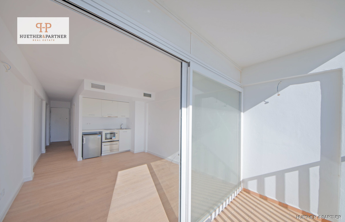 This newly renovated apartment in a tranquil area of Cala Millor offers a well-designed living space with high-quality features. It includes a bedroom with a built-in wardrobe, a modern shower bathroom, and a fully equipped kitchenette featuring a small dishwasher, microwave with grill function, extractor hood, and refrigerator. The balcony provides an inviting space with distant views, perfect for relaxation.