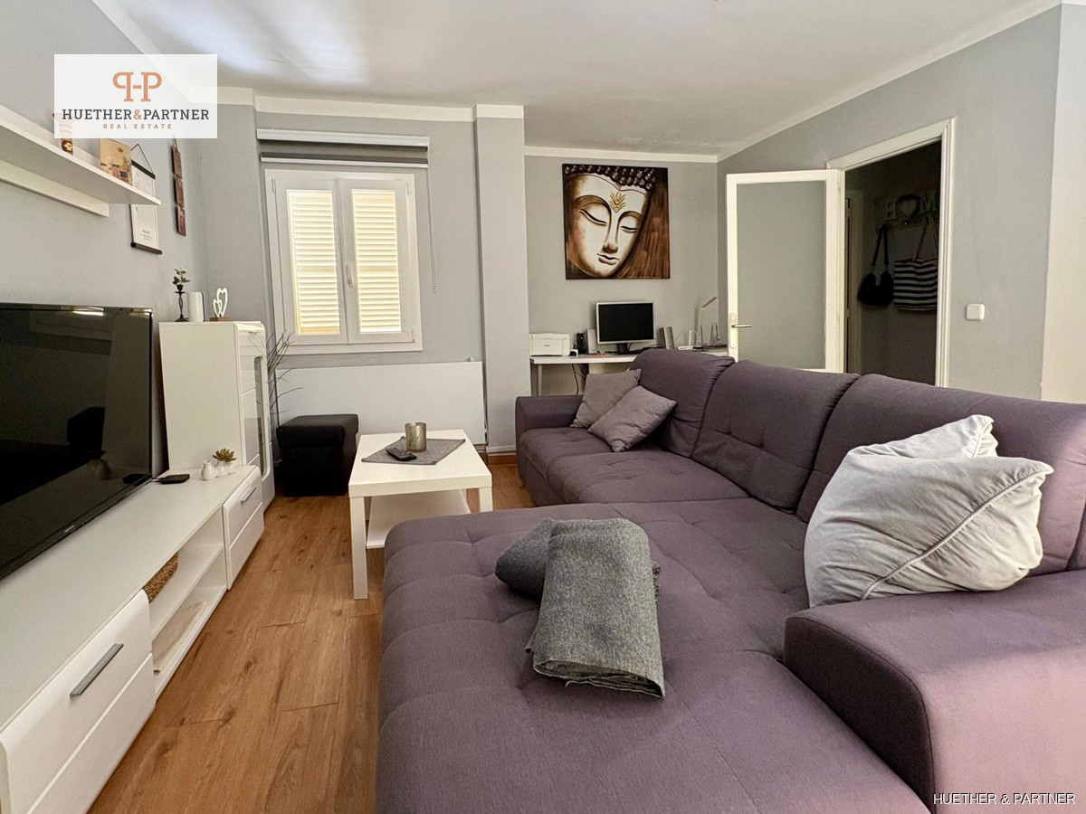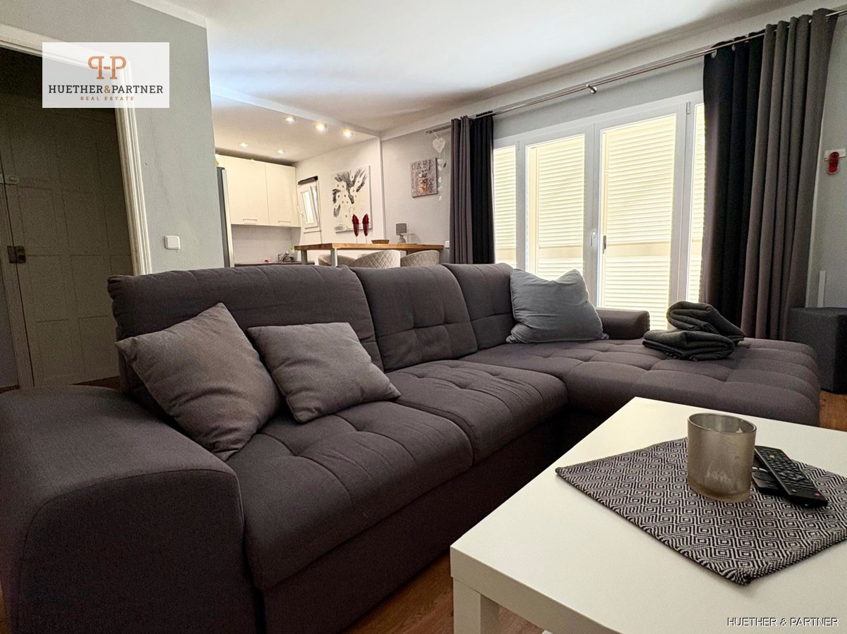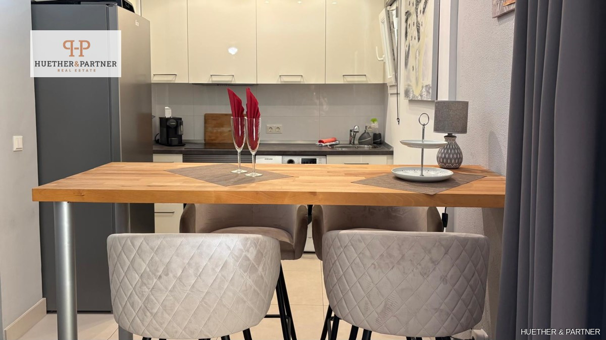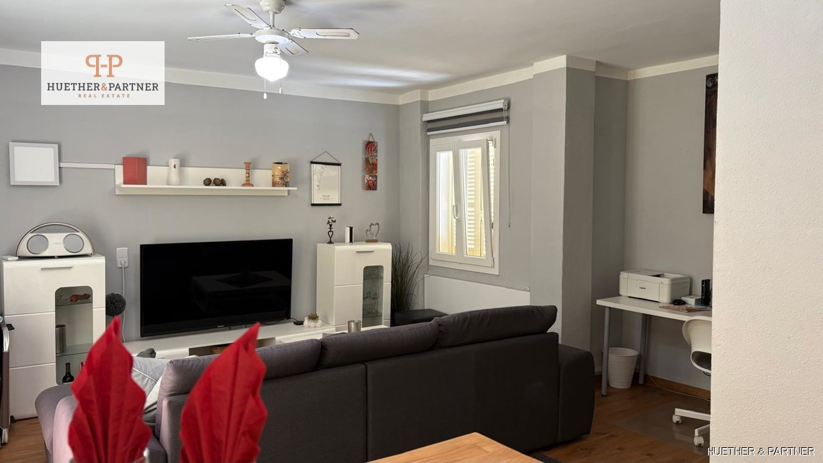 This charming penthouse, fully renovated and furnished, offers a spacious rooftop terrace, perfect for enjoying the Spanish sun. Located on the fourth and top floor, the apartment is easily accessible via stairs. It features a modern living-dining area leading to the large, southeast-facing terrace equipped with high-quality garden furniture, a pergola, and an outdoor shower.
