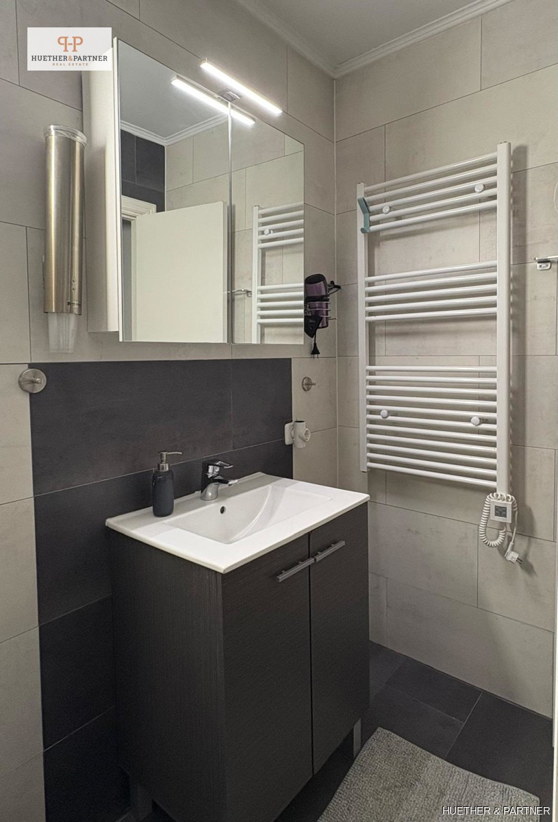 The penthouse includes two spacious bedrooms with exterior windows and a bathroom with a shower. The kitchen, separated by an American bar, is modern and equipped with top-brand appliances. Enjoy smart climate control in the living room and energy-efficient electric heaters throughout.