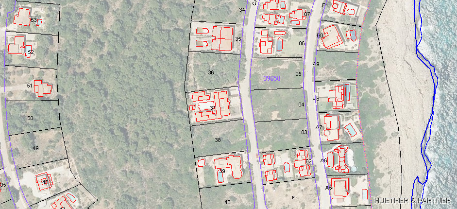 Utilities such as electricity, water, and phone/internet connections are available on the street; however, a septic tank is required as there is no sewer access. The plot is categorized as urbano, permitting construction under current city regulations. Behind the property lies a Zona verde, ensuring privacy with its non-buildable green strip. The proximity to the sea and Cala Murada’s charming sandy beach enhances its appeal.