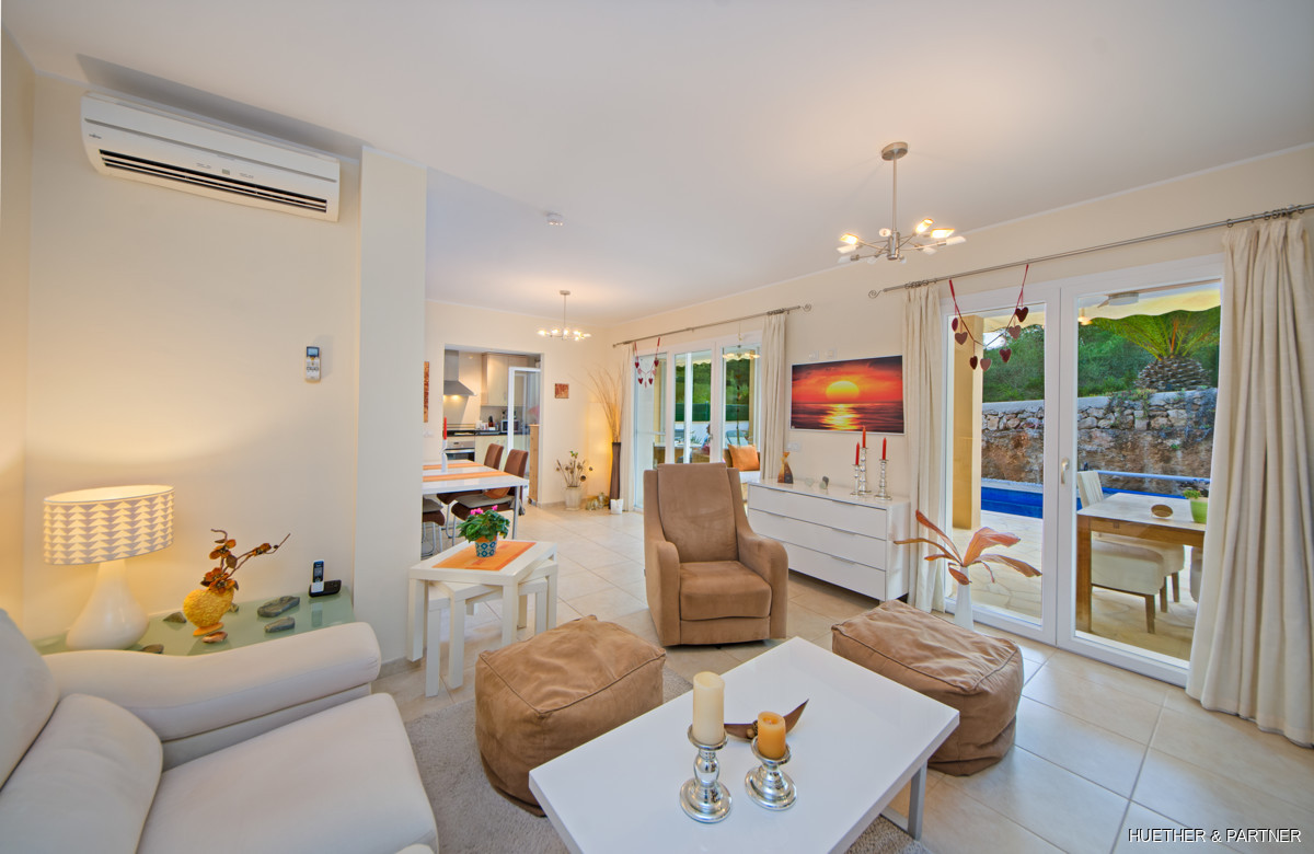 This exquisite villa, nestled in a peaceful southwest location in Cala Murada, offers an unparalleled living experience. Boasting a private heated pool, five climate-controlled air conditioners, and an advanced photovoltaic system, it ensures year-round comfort. The villa features four spacious bedrooms, two en-suite bathrooms, and a guest WC, providing ample space for family and guests. An open-plan living and dining area leads to a well-equipped kitchen and a sunlit winter garden with underfloor heating.