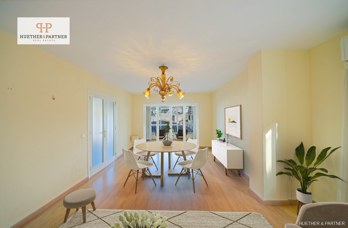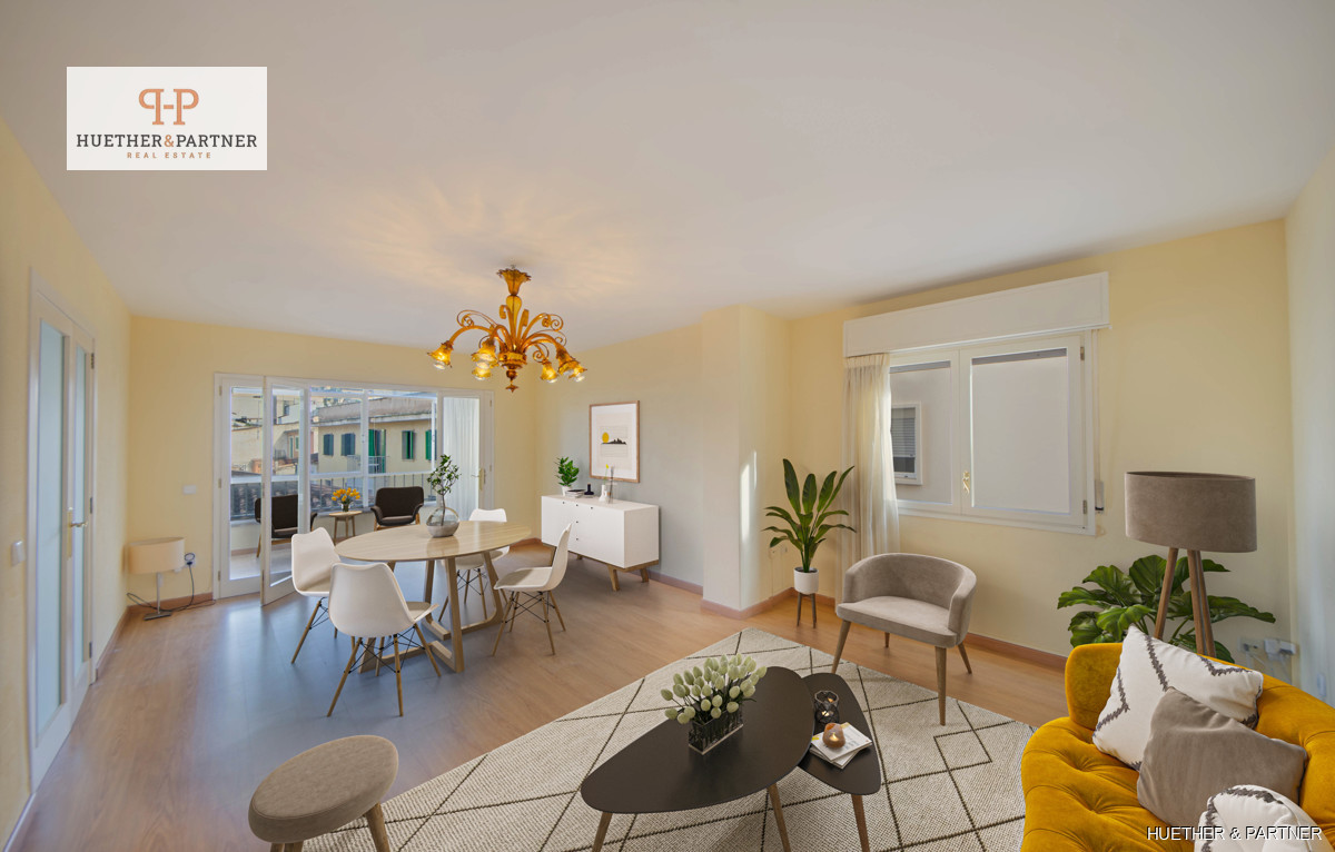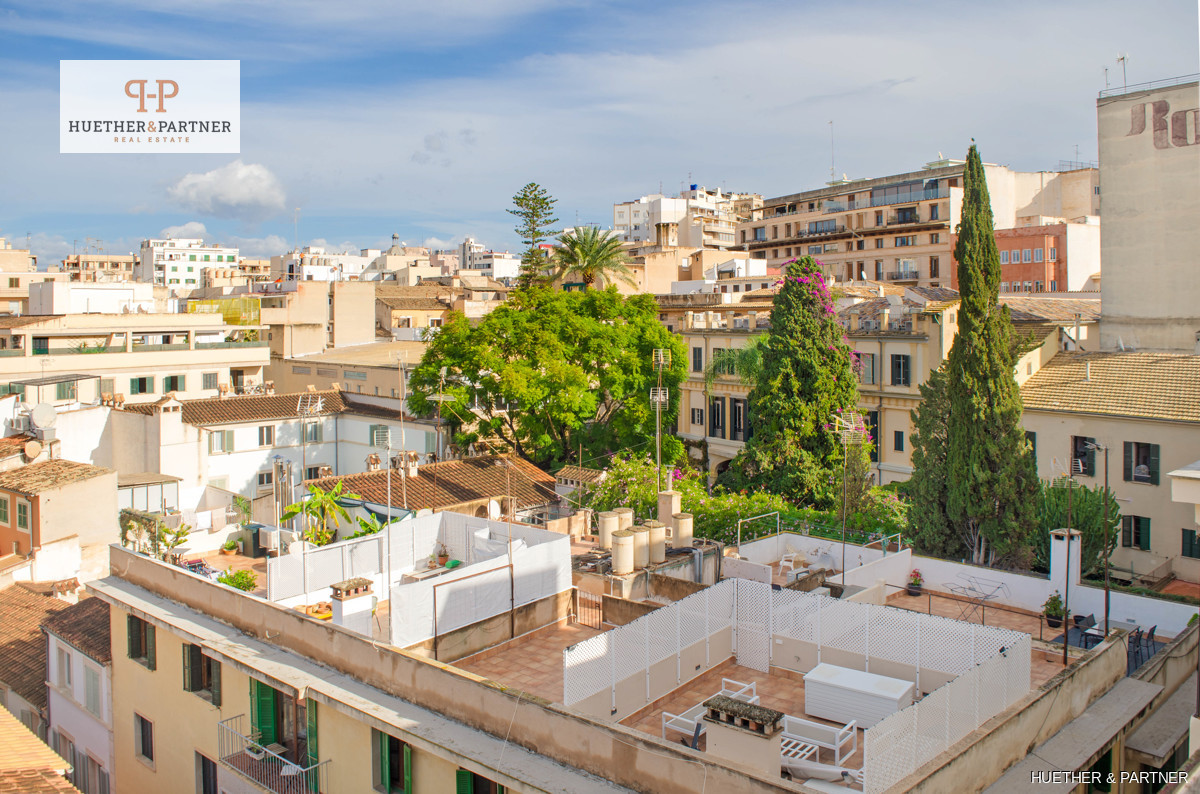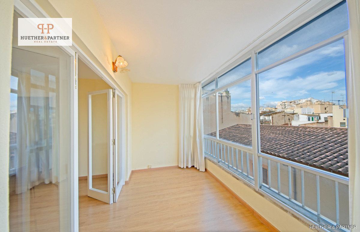 Discover this spacious city apartment in the heart of Palma de Mallorca, nestled in a traffic-calmed zone. The bright living space offers fantastic views over the citys rooftops, featuring five bedrooms and a large living-dining area filled with natural light. Its perfect for comfortable living or as an investment opportunity.