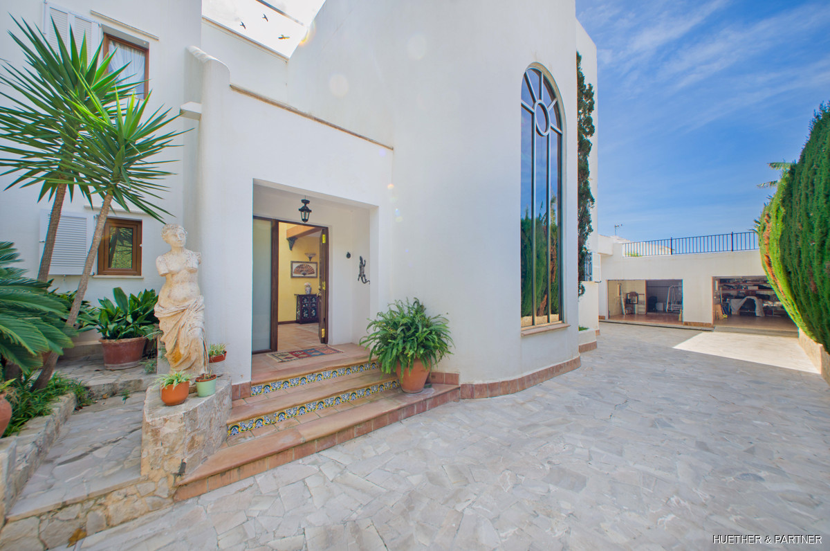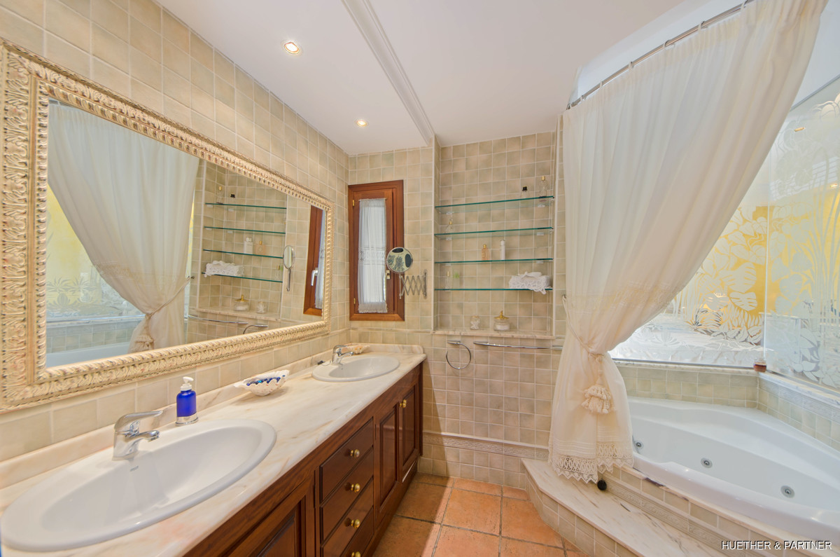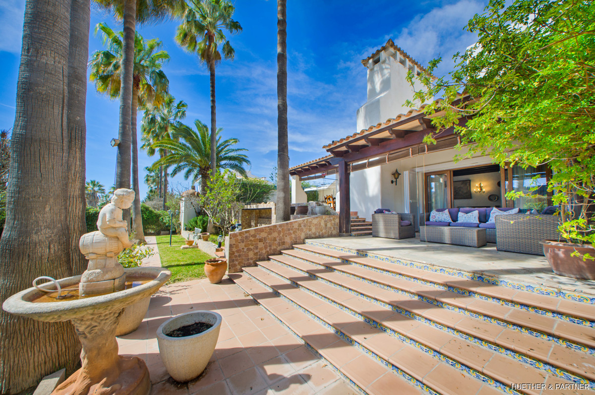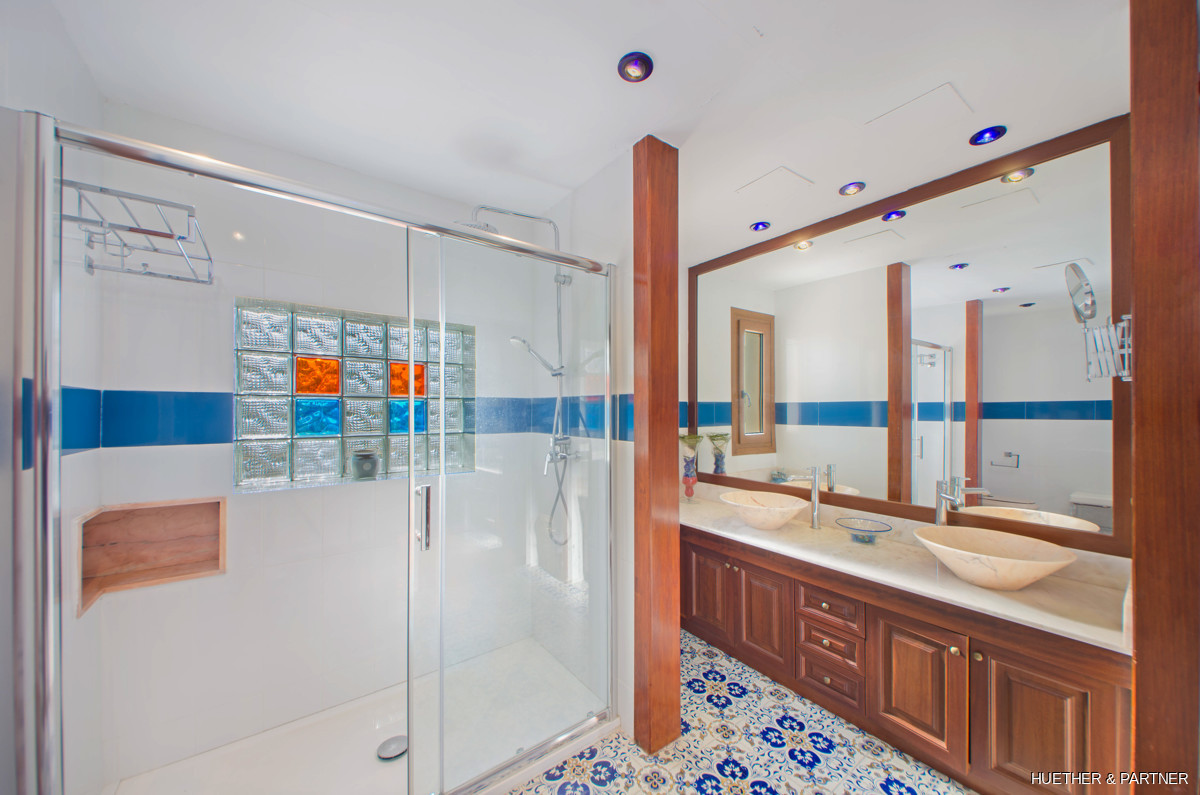 This exceptional villa in Sa Coma offers a wealth of features, including a saltwater pool with ceramic gargoyle and a large enclosed area for safety. Spread across multiple levels, the villa boasts three main bedrooms, each with unique details such as a private balcony or a whirlpool bath. The property includes a double garage and a convenient large laundry room. The kitchen is equipped with a cooking island featuring a gas flame, induction field, plancha, and built-in fryer. A beautifully designed lead crystal glass window adorns the entrance, adding to the villas charm.
