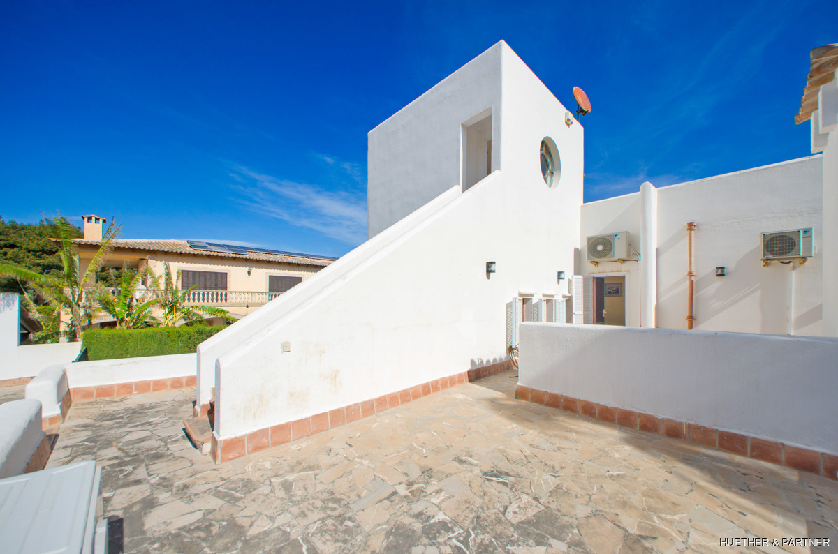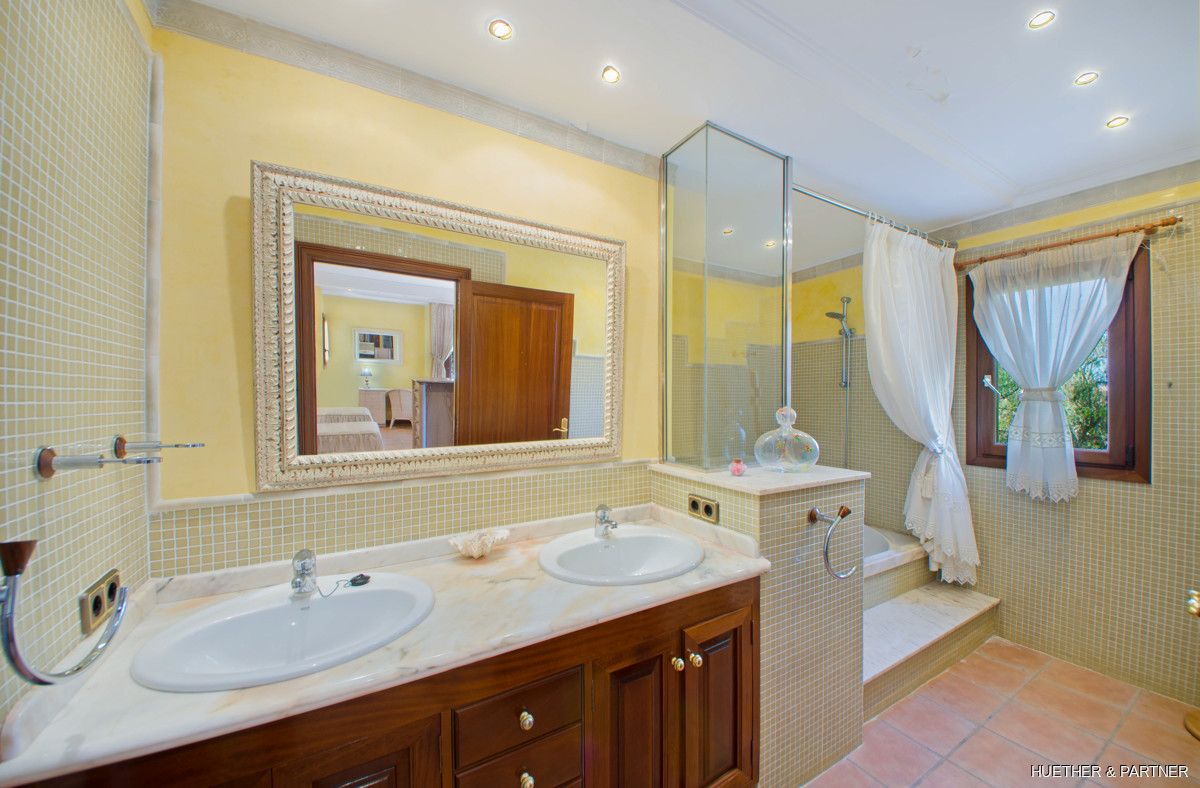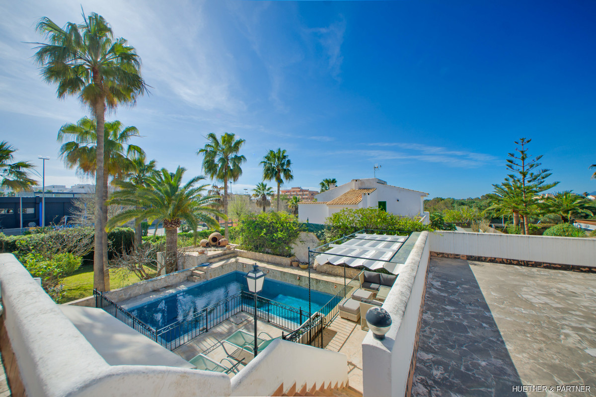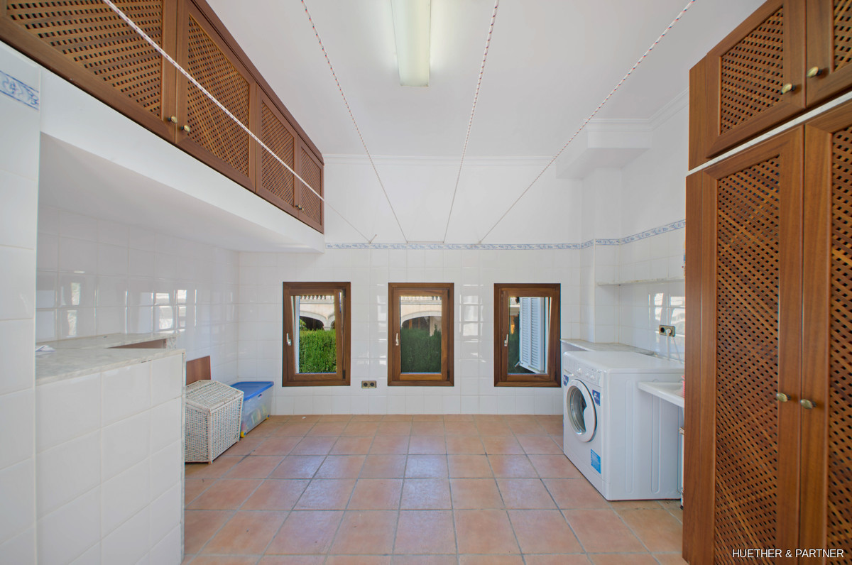 This exceptional villa in Sa Coma offers a wealth of features, including a saltwater pool with ceramic gargoyle and a large enclosed area for safety. Spread across multiple levels, the villa boasts three main bedrooms, each with unique details such as a private balcony or a whirlpool bath. The property includes a double garage and a convenient large laundry room. The kitchen is equipped with a cooking island featuring a gas flame, induction field, plancha, and built-in fryer. A beautifully designed lead crystal glass window adorns the entrance, adding to the villas charm.
