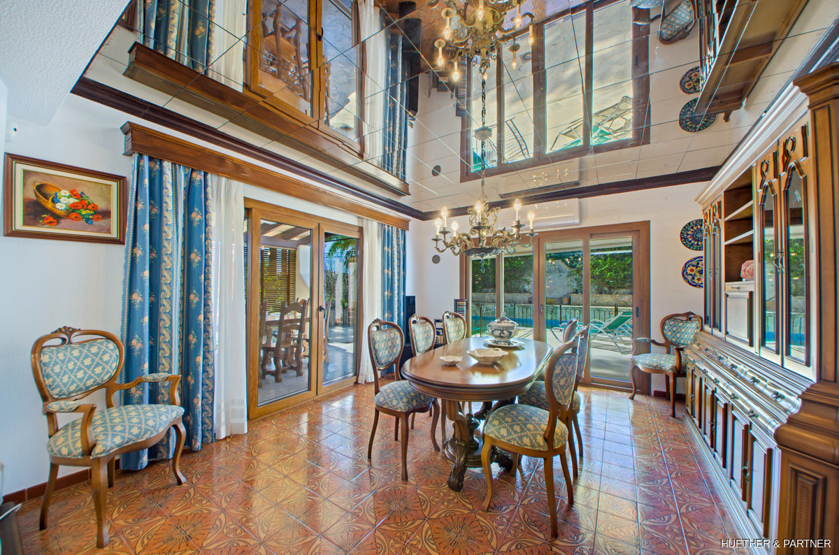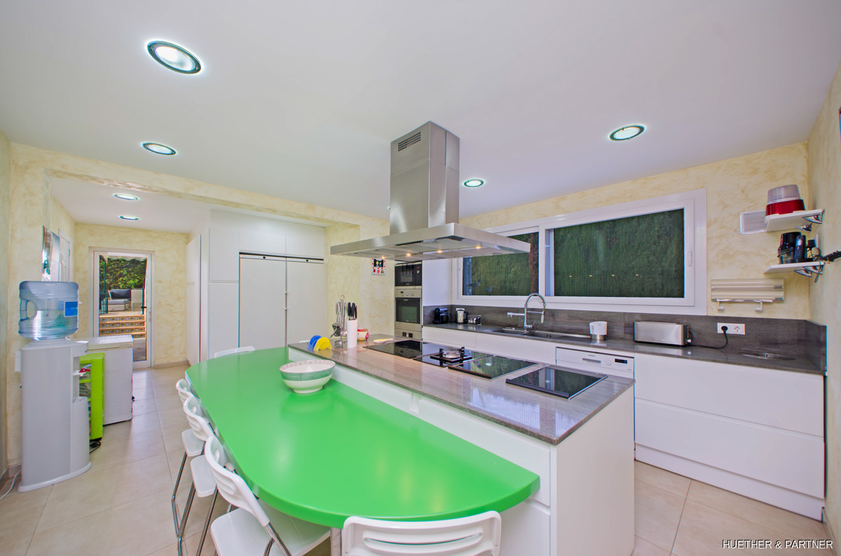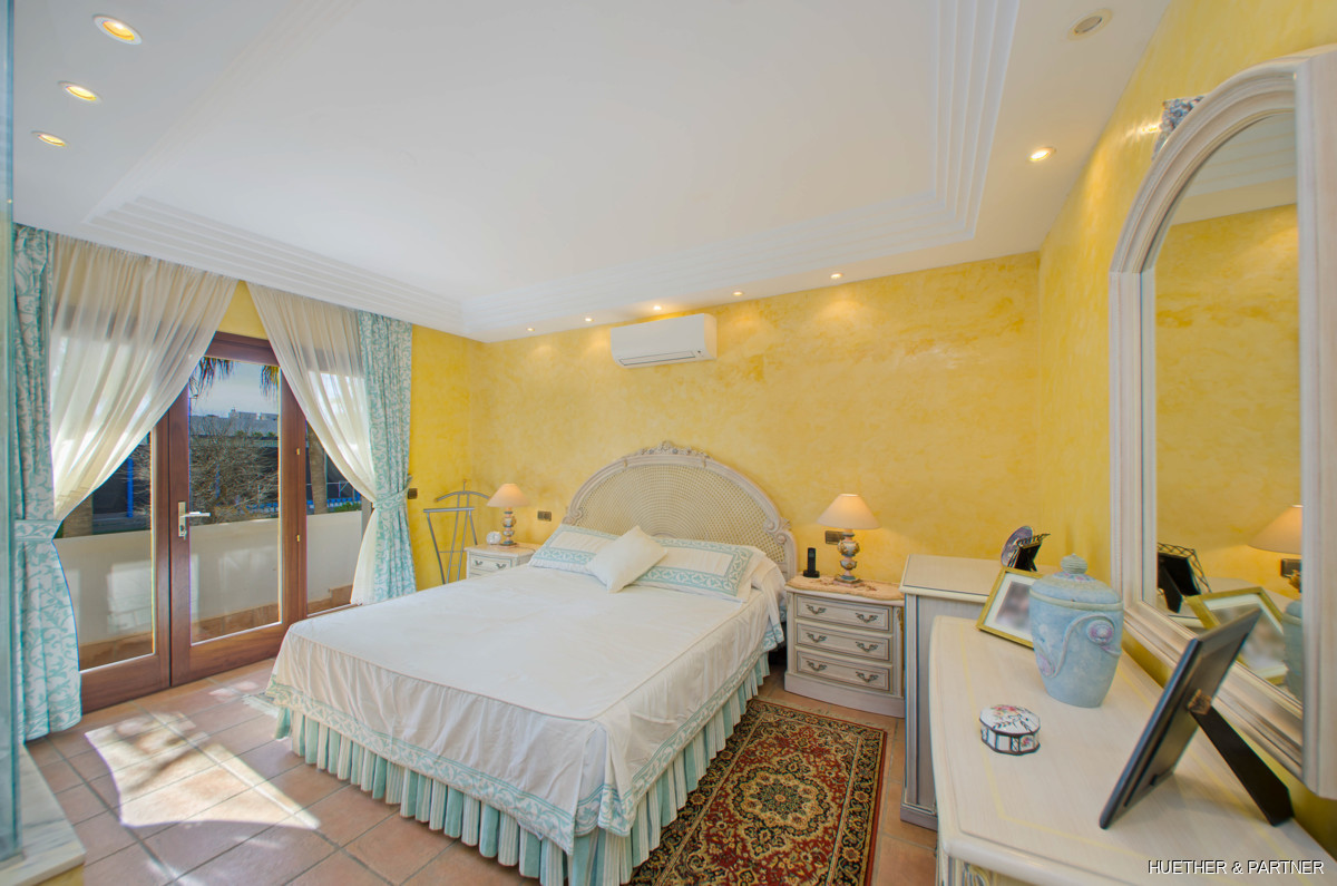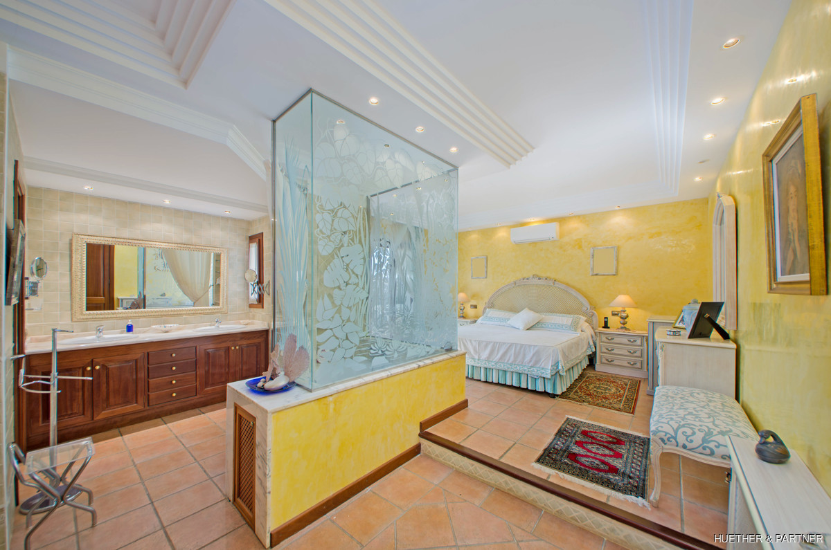 With central heating and air conditioning, this villa provides comfort year-round. Outdoor spaces are abundant, with various terraces and seating areas perfect for enjoying the Mediterranean climate. The garden is enriched with bamboo hedges, citrus trees, and mature palms. An automatic gate and intercom system ensure security and privacy. Ideal for a large family, this villa is a blend of luxury and practicality.
