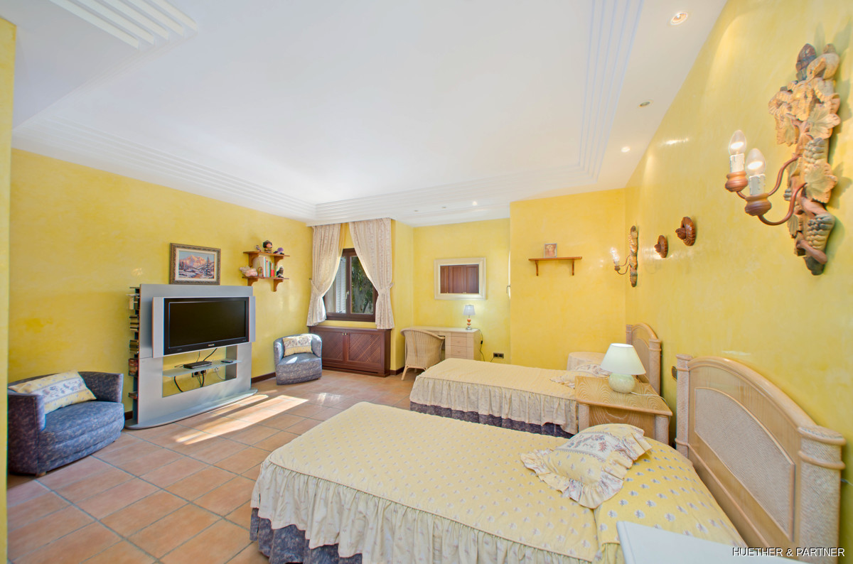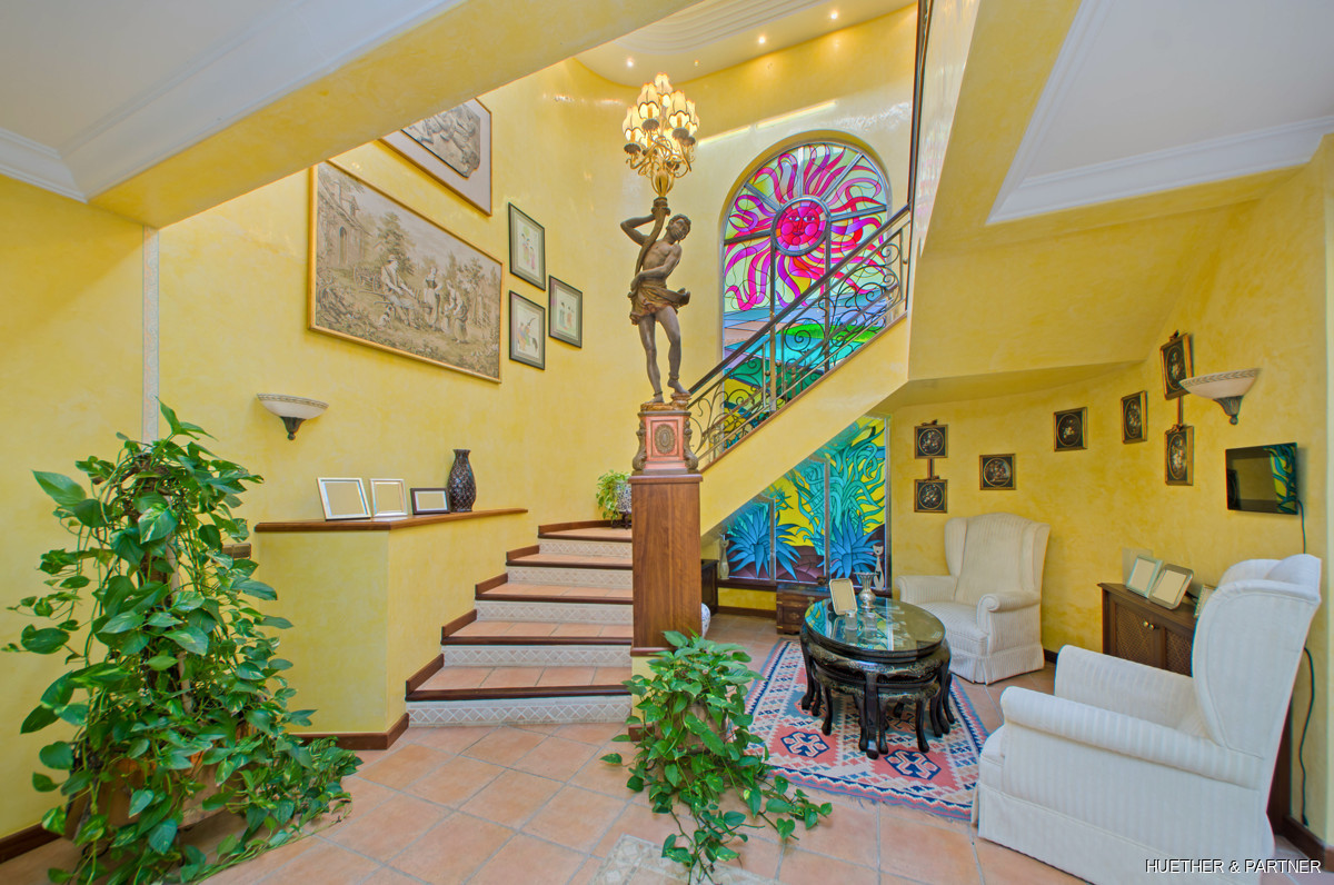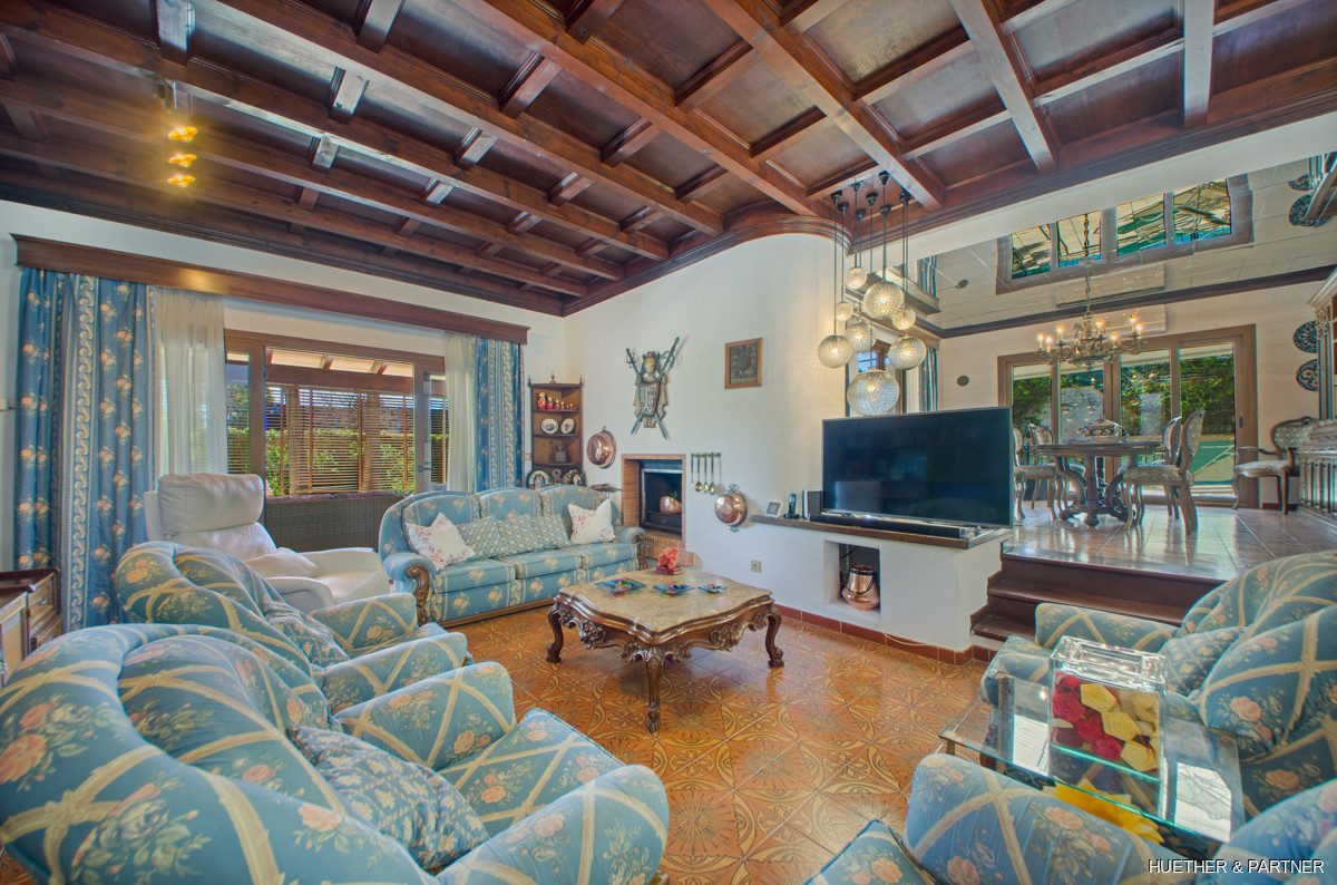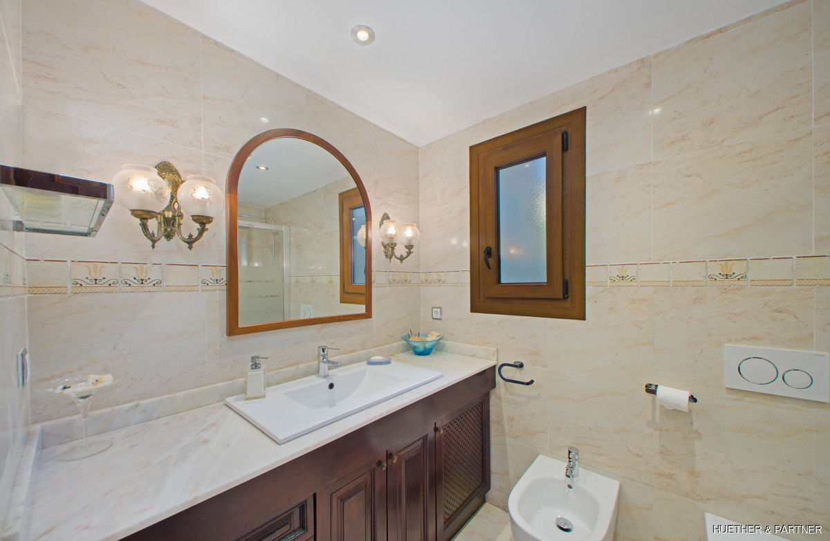 With central heating and air conditioning, this villa provides comfort year-round. Outdoor spaces are abundant, with various terraces and seating areas perfect for enjoying the Mediterranean climate. The garden is enriched with bamboo hedges, citrus trees, and mature palms. An automatic gate and intercom system ensure security and privacy. Ideal for a large family, this villa is a blend of luxury and practicality.
