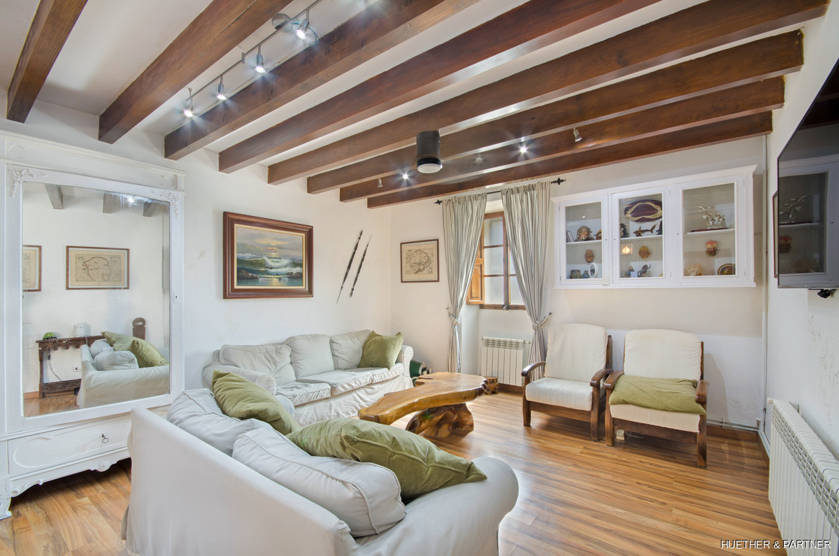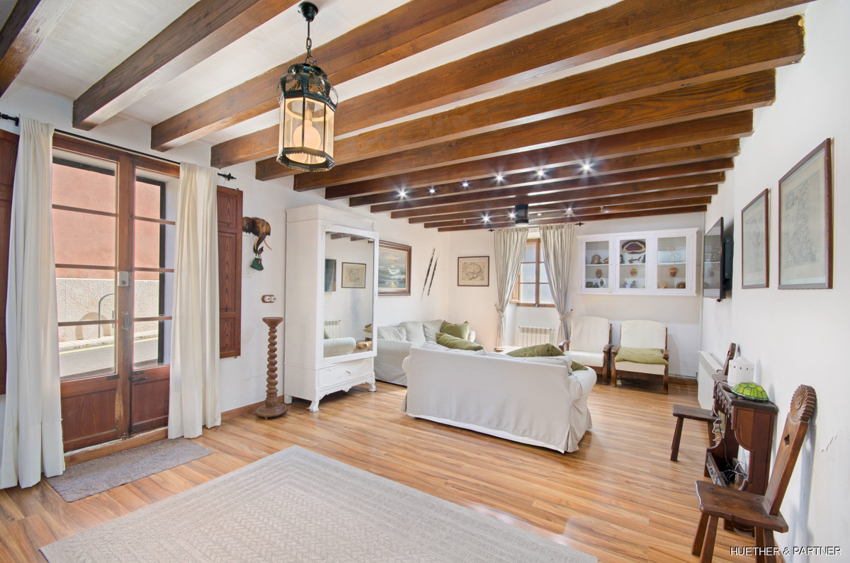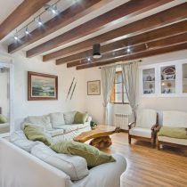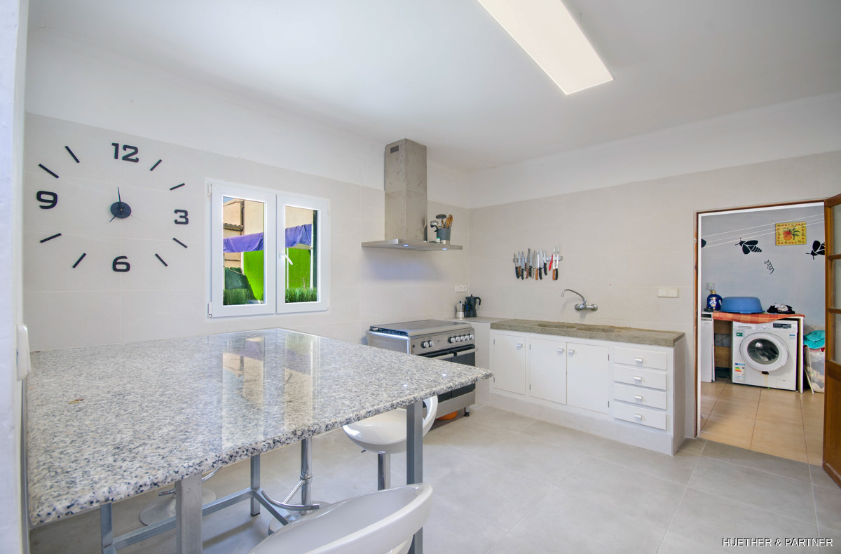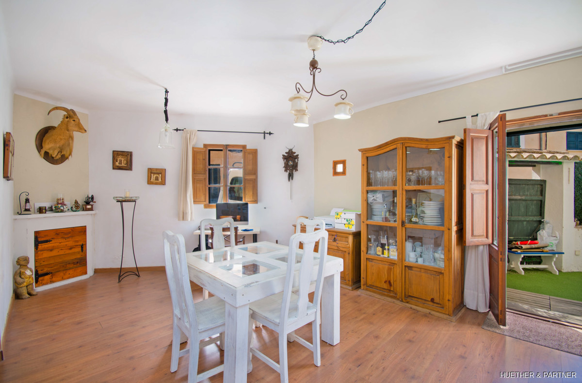 This expansive townhouse, located on the outskirts of Costitx, offers a unique blend of traditional charm and modern amenities. The property features a cozy patio behind the house, a fireplace, central heating, and stunning rooftop panoramic views. The interior has been thoughtfully designed with a large living area, dining room, and a roomy kitchen that leads to a laundry room and a separate guest WC. A small garage provides space for a compact car and a motorcycle or serves as a workshop area. Upstairs, there are four spacious bedrooms and a fifth room currently used for storage, along with two renovated bathrooms. The rooftop terrace is an ideal spot for relaxation or laundry, offering breathtaking views. Recent updates include new wiring and a well-maintained exterior facade. The property promises a comfortable village lifestyle with easy access to local amenities.