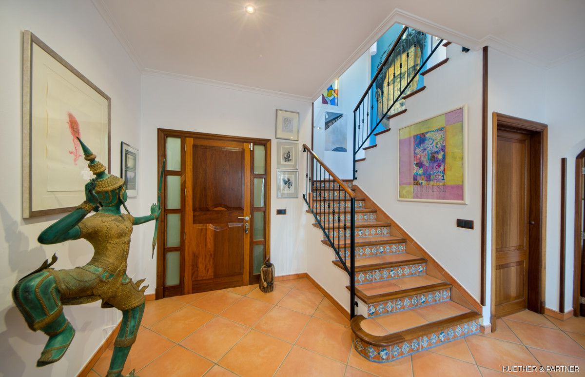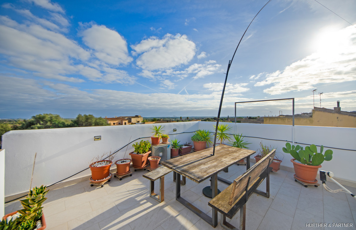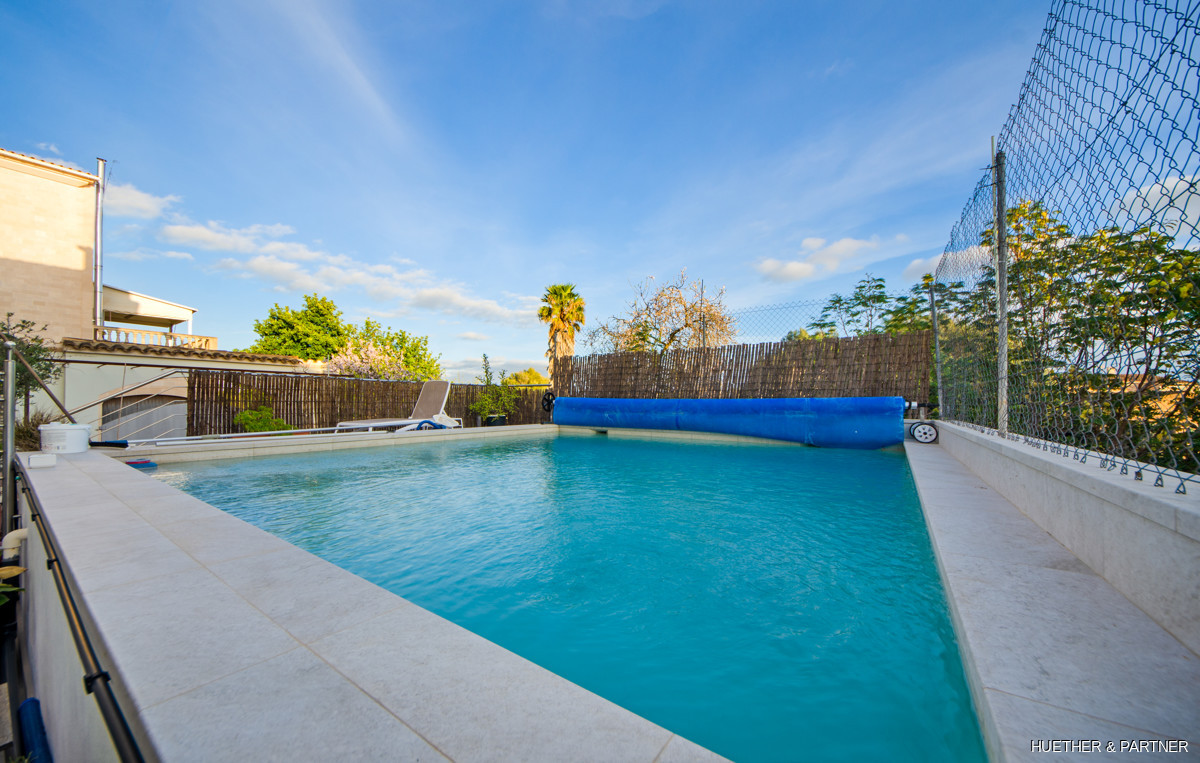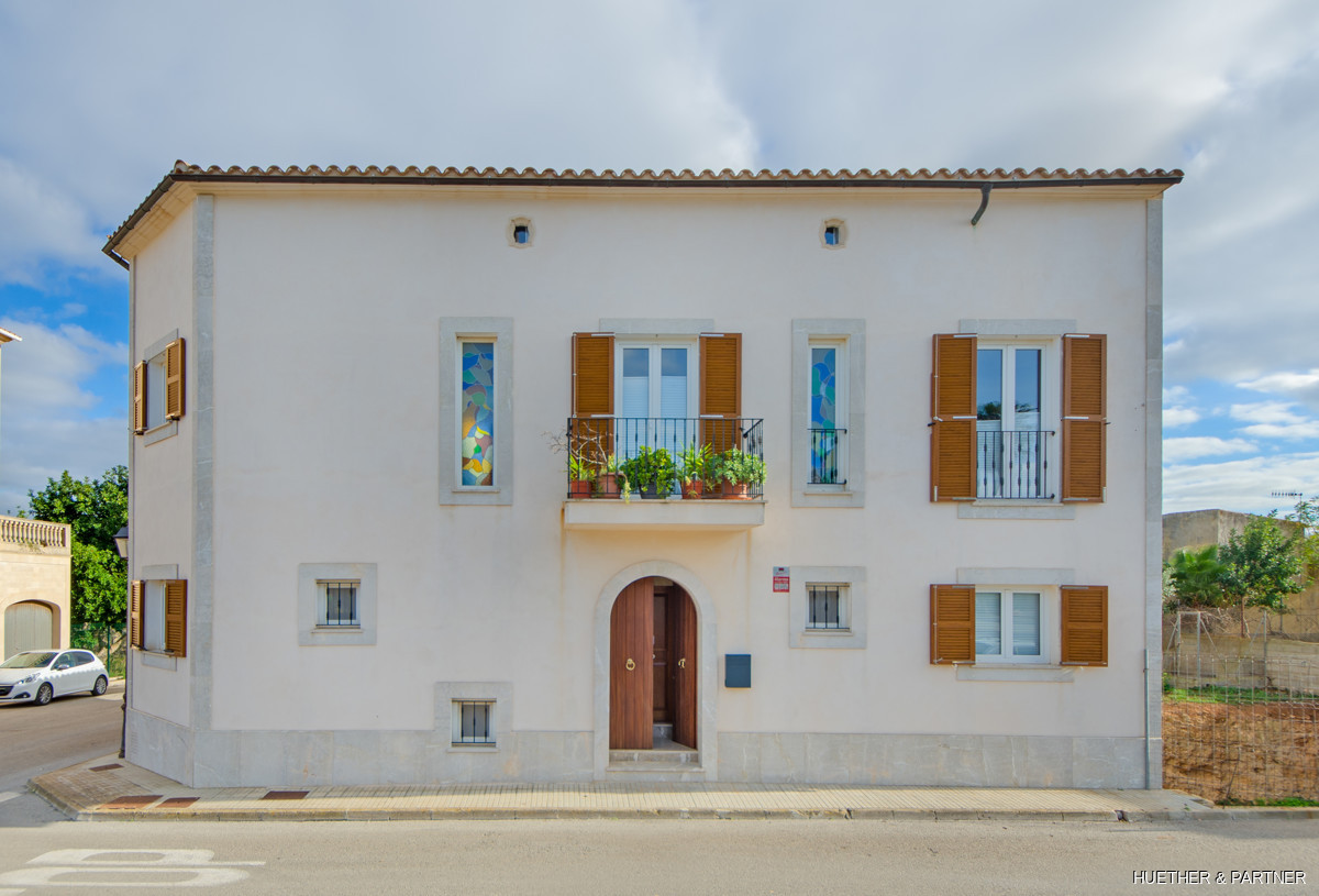 The property is equipped with amenities such as a private swimming pool, a garage, PVC double-glazed windows, and solar panels for hot water. It is sold unfurnished, and the facade requires a color match at the back. This home combines the tranquility of a typical Mallorcan village with proximity to Santanyi and the luxury of a beautifully designed home.