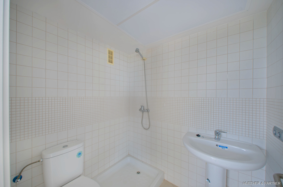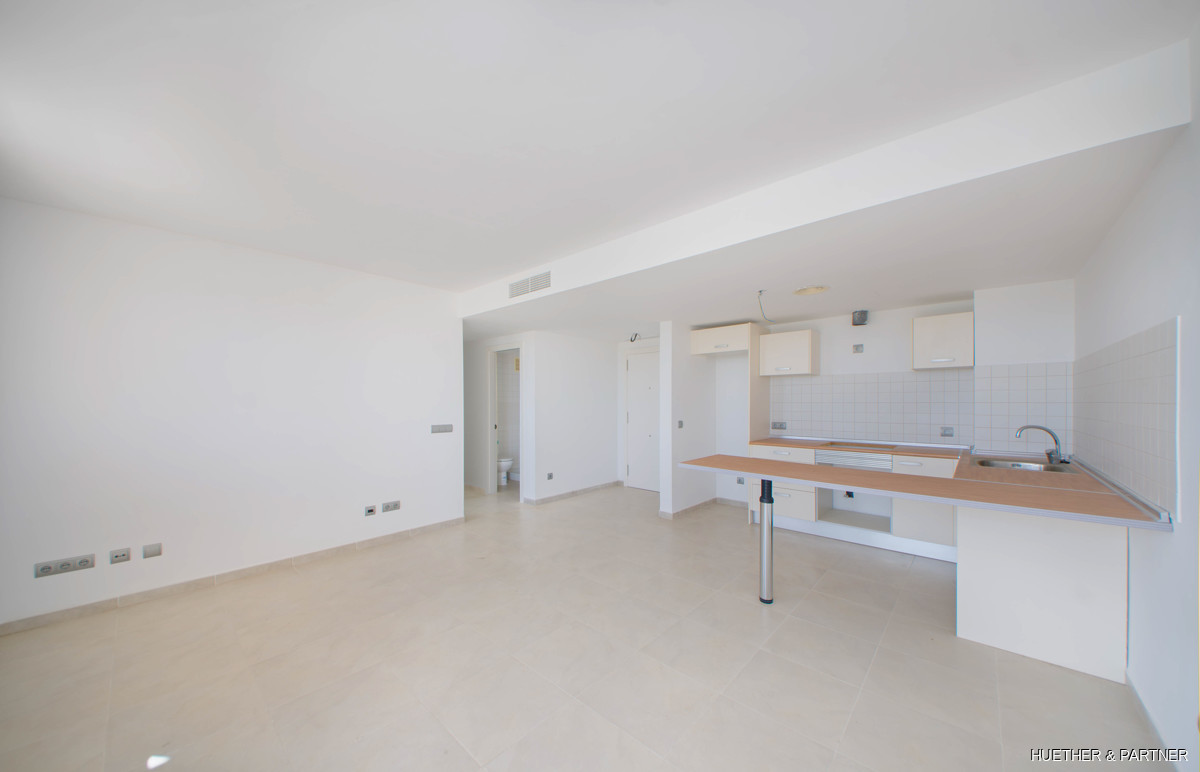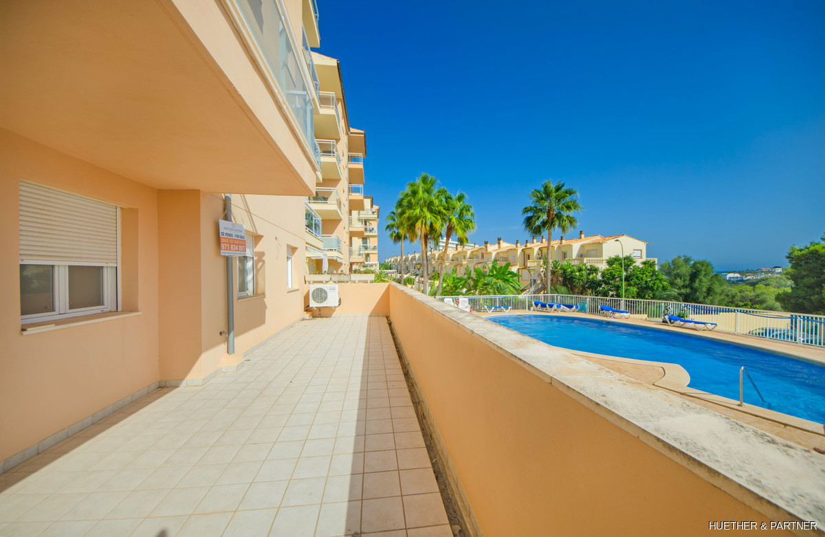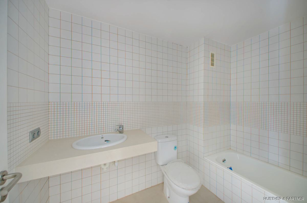 This ground floor terrace apartment has never been occupied and awaits its first buyer in pristine condition. The living space is thoughtfully designed, featuring an open plan living and dining area with a modern open kitchen. Step out onto the expansive terrace that overlooks the community pool, perfect for relaxation and entertainment. The apartment includes two bedrooms with built-in wardrobes, two bathrooms—one with a shower and the other with a bathtub—and a separate utility room equipped for a washing machine and a hot water boiler. An underground parking space is also included with the property.