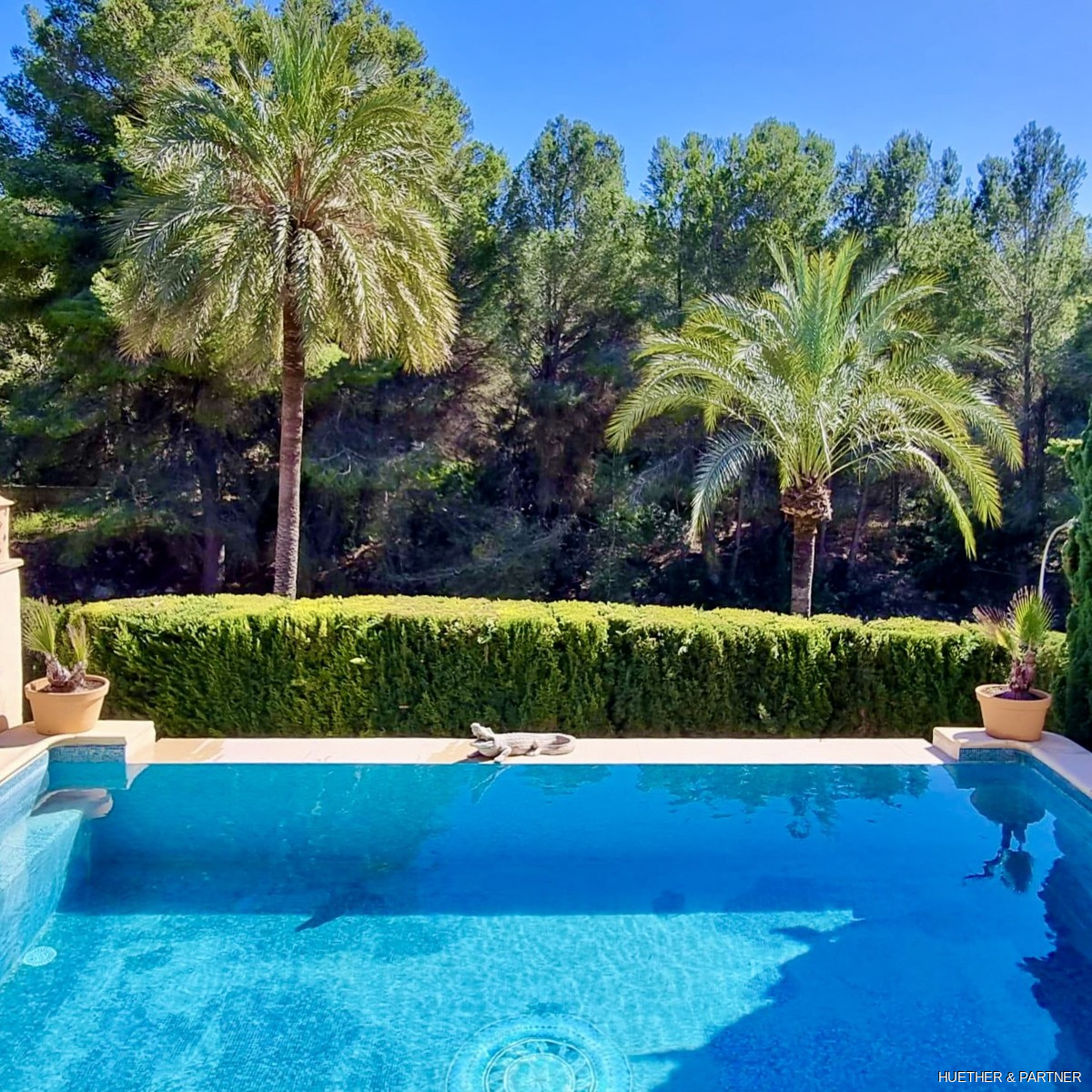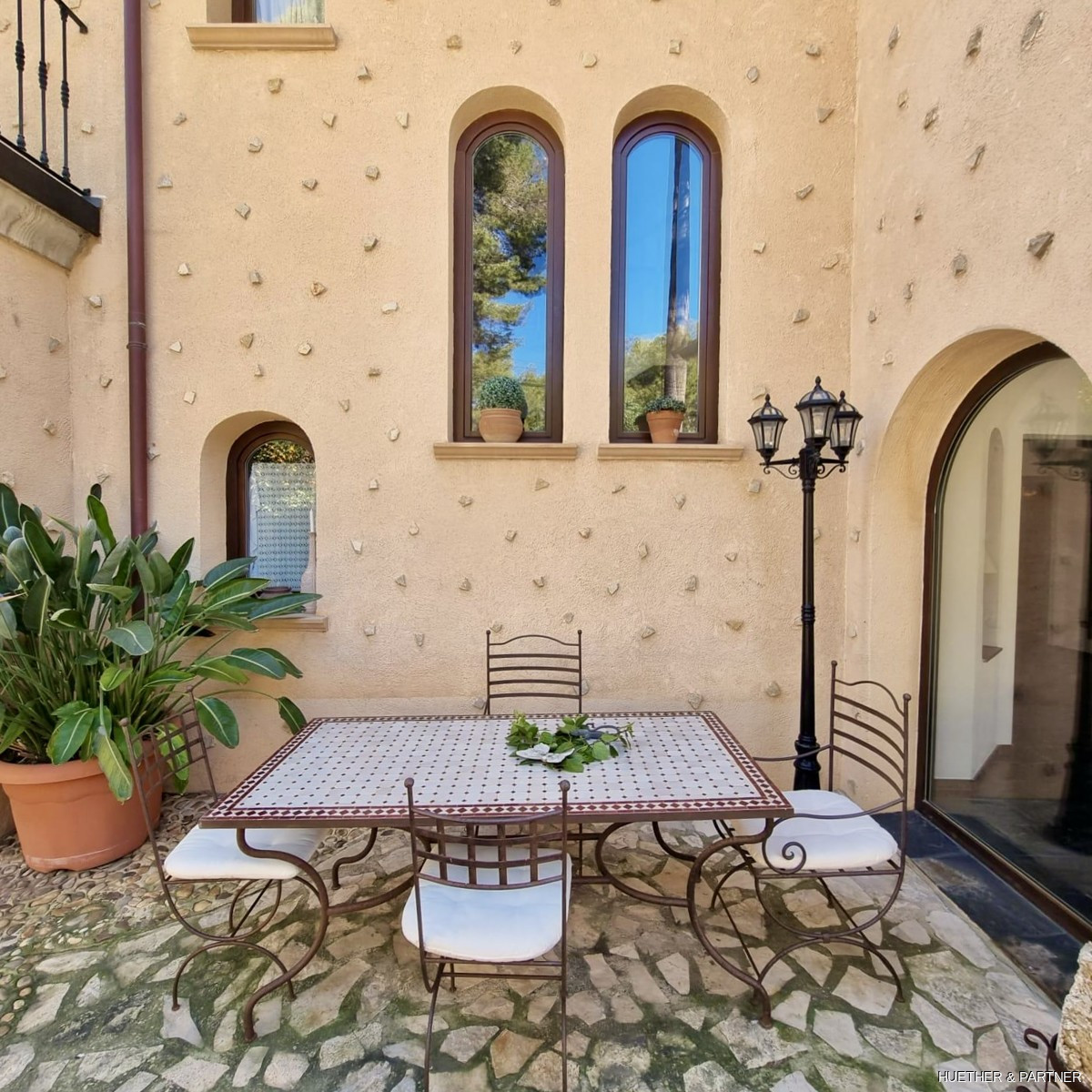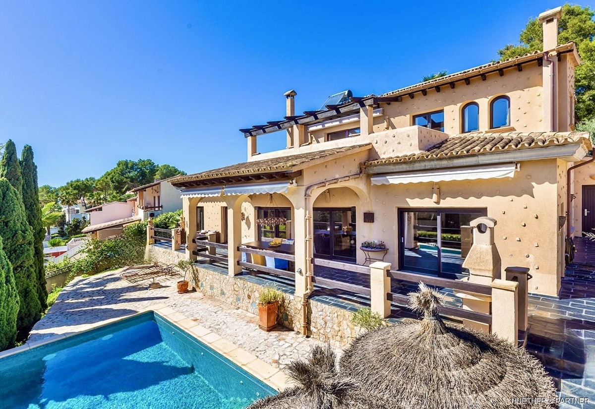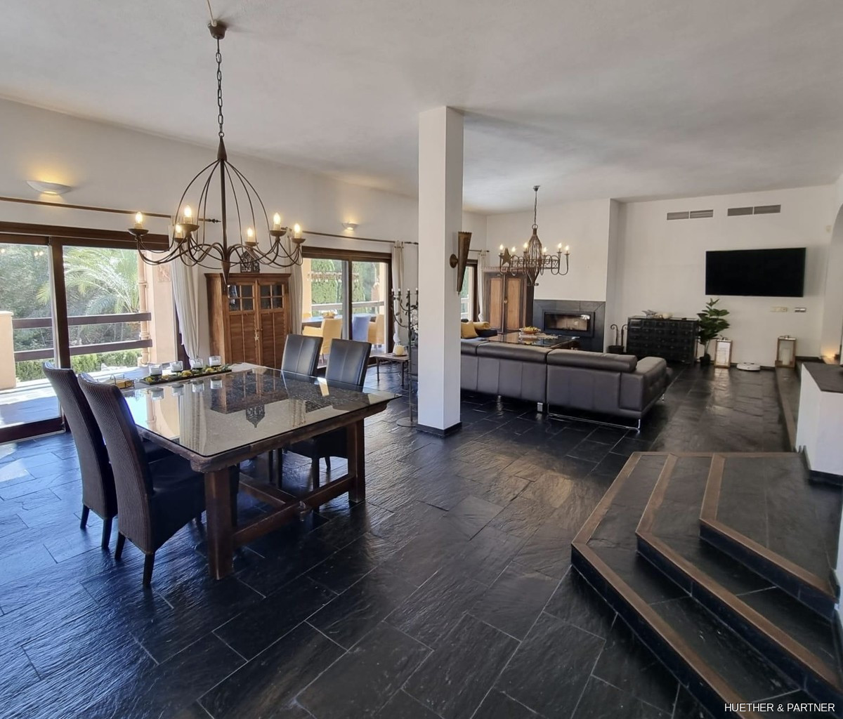 Experience luxury living in this south-facing villa located in a serene and exclusive neighborhood. The property boasts a double garage, state-of-the-art alarm system with cameras, and both indoor and outdoor pools. The interior features a high ceiling ranging from 3.25 to 4.50 meters, elegant slate flooring, and large built-in wardrobes offering ample storage. Comfort is ensured with underfloor heating, air conditioning, and a modern kitchen designed in the Mallorcan style. The villa also includes a guest apartment and direct access to the beach path, located just 100 meters from a secluded bay.
