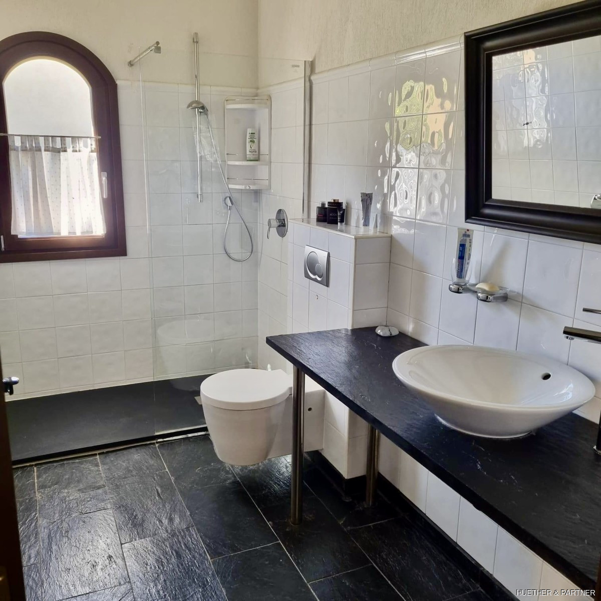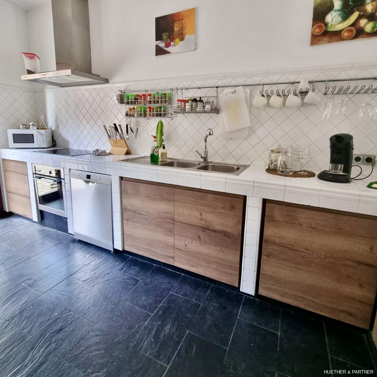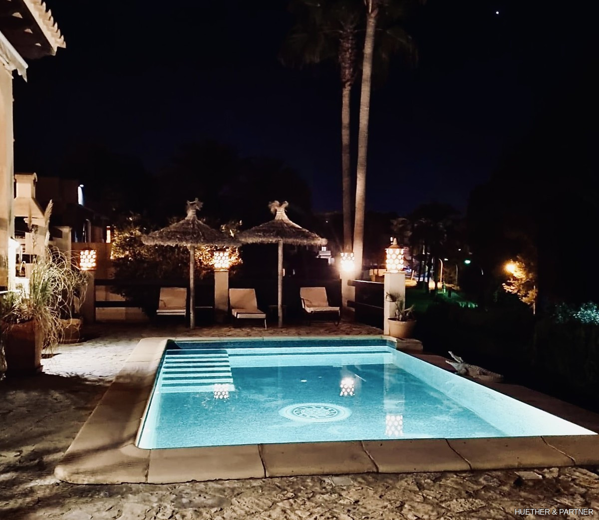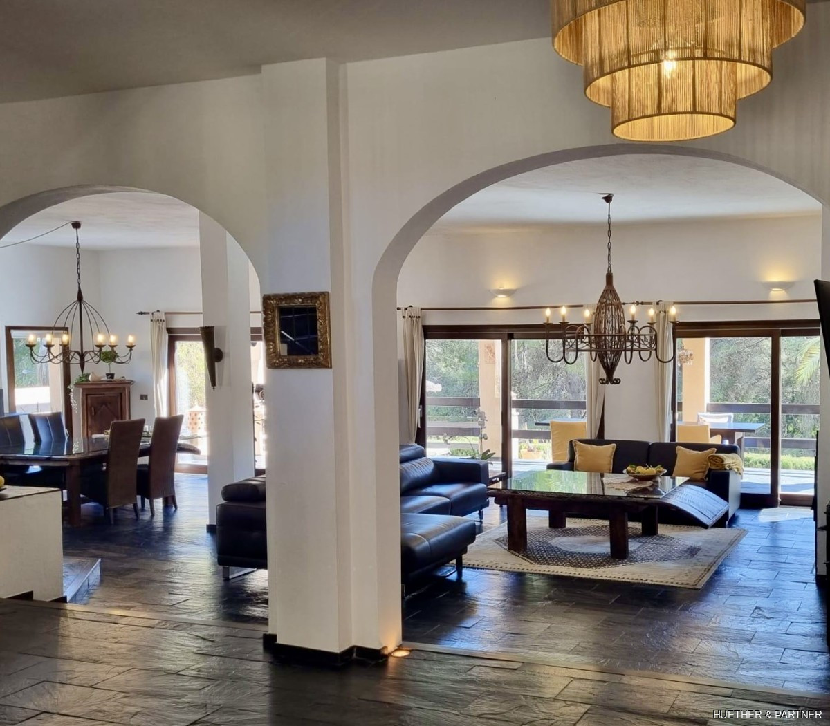 Experience luxury living in this south-facing villa located in a serene and exclusive neighborhood. The property boasts a double garage, state-of-the-art alarm system with cameras, and both indoor and outdoor pools. The interior features a high ceiling ranging from 3.25 to 4.50 meters, elegant slate flooring, and large built-in wardrobes offering ample storage. Comfort is ensured with underfloor heating, air conditioning, and a modern kitchen designed in the Mallorcan style. The villa also includes a guest apartment and direct access to the beach path, located just 100 meters from a secluded bay.