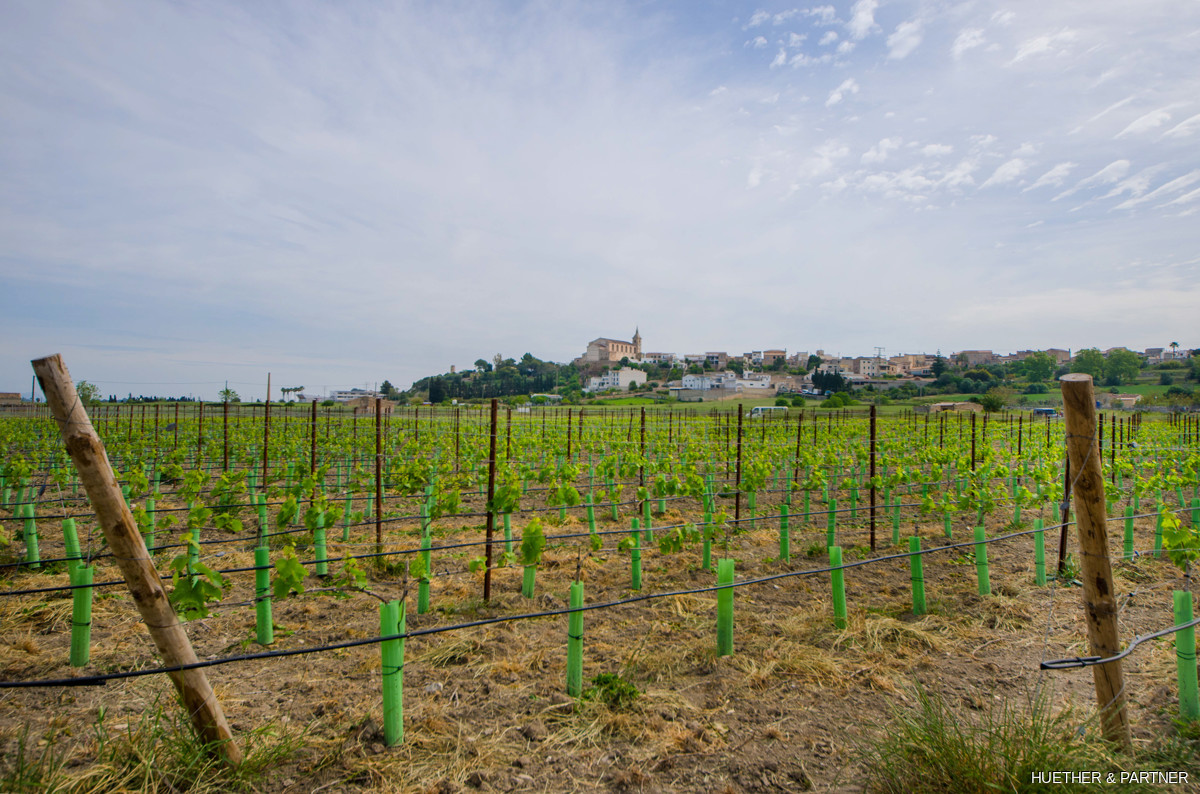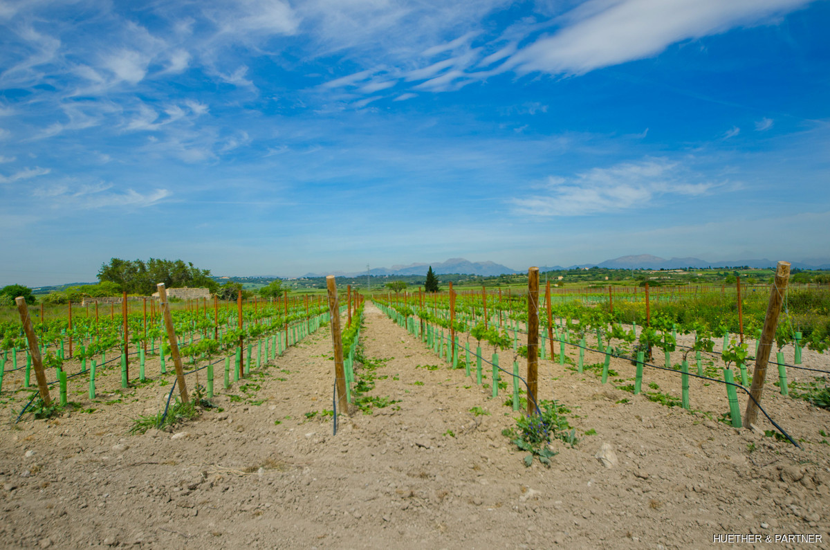 This unique vineyard in Santa Margalida, Majorca, offers the opportunity to build a bodega or a residence of approximately 220 m² with an additional 40 m² covered terrace and a pool, as per architects consultation. The vineyard encompasses 21,496 m² and is currently managed by a service provider, with the first harvest ready this year. It boasts three grape varieties: Monastrell, Viognier, and Chardonnay, totaling 5000 vines. The land benefits from a sustainable water supply via its own well and potential solar power for electricity. Management of the vineyard is prepaid until November, allowing for future self-management or continued service use.